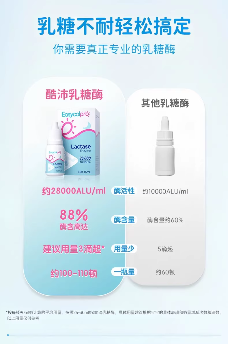【源码/刮码随机发货】酷沛乳糖酶无甘油88%配方(含量28000ALU/ml)婴幼儿宝宝乳糖不耐受腹泻消化酶15ml瓶
