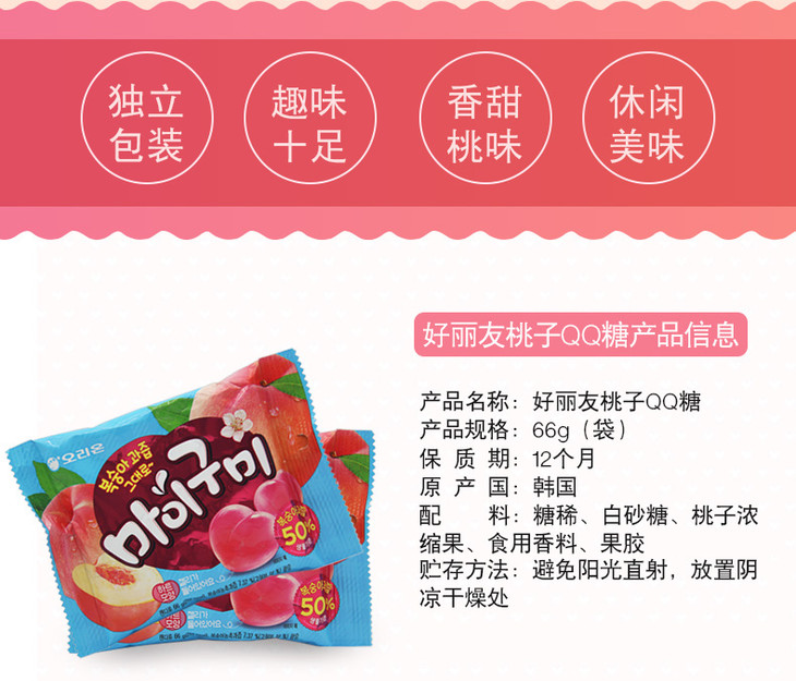 好丽友QQ糖桃子味66g