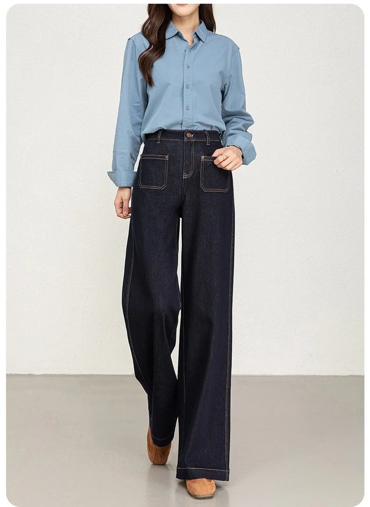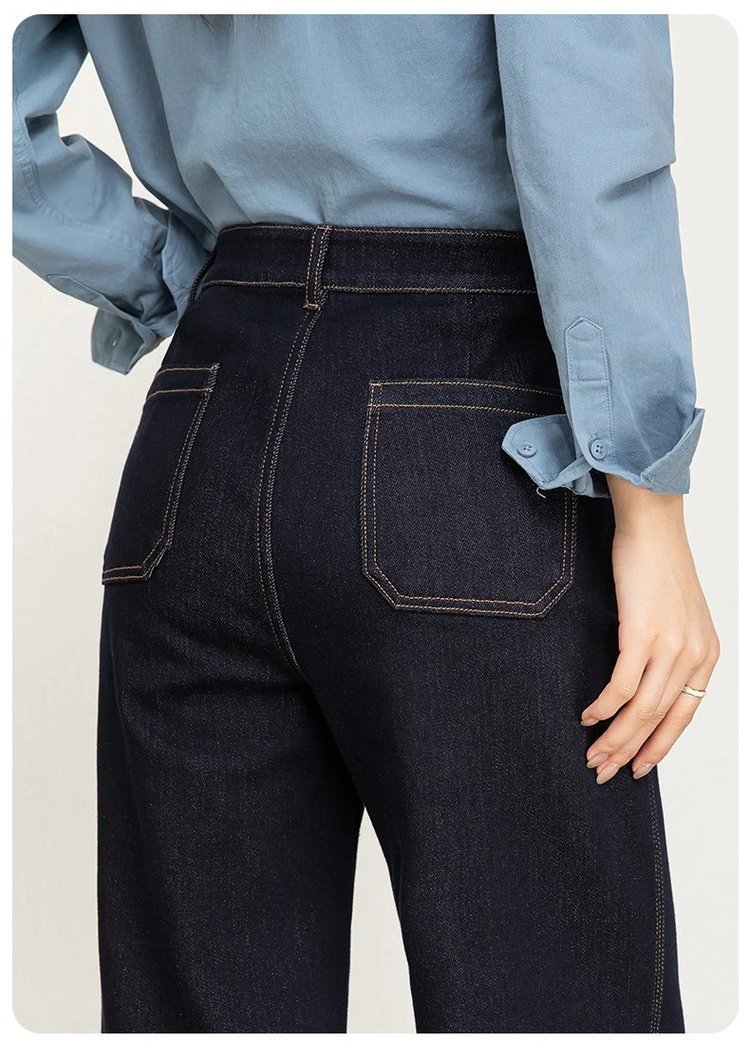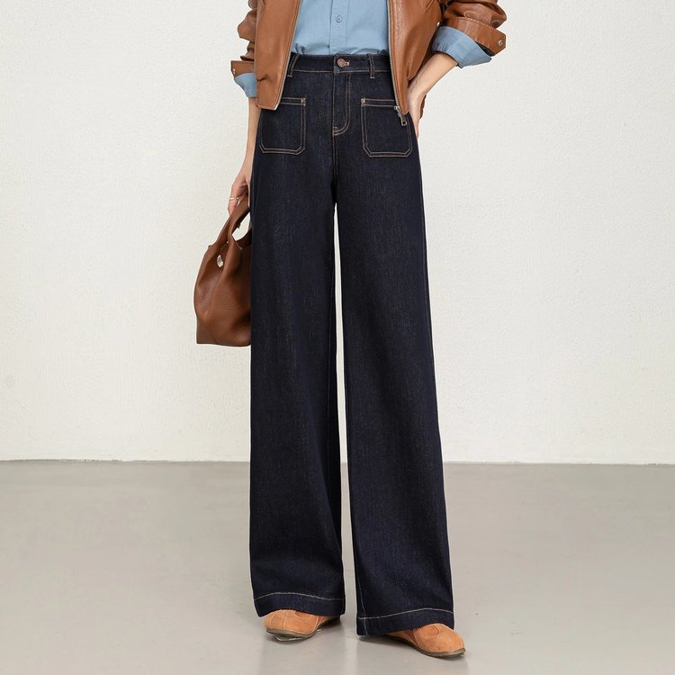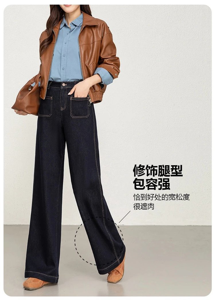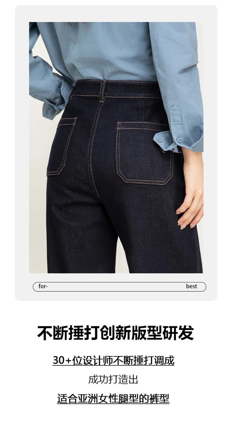 采用富有质感的中深水洗蓝,色泽沉稳高级它比黑色生动,比浅蓝显瘦,是能搭配你衣柜里绝大多数上衣的万能底色。