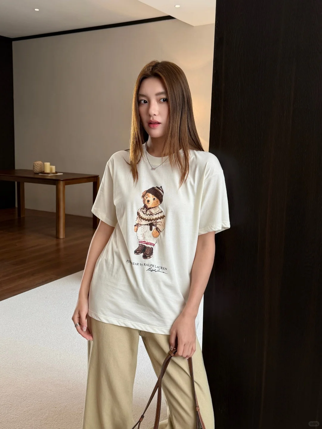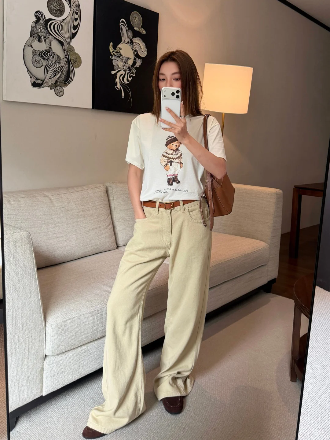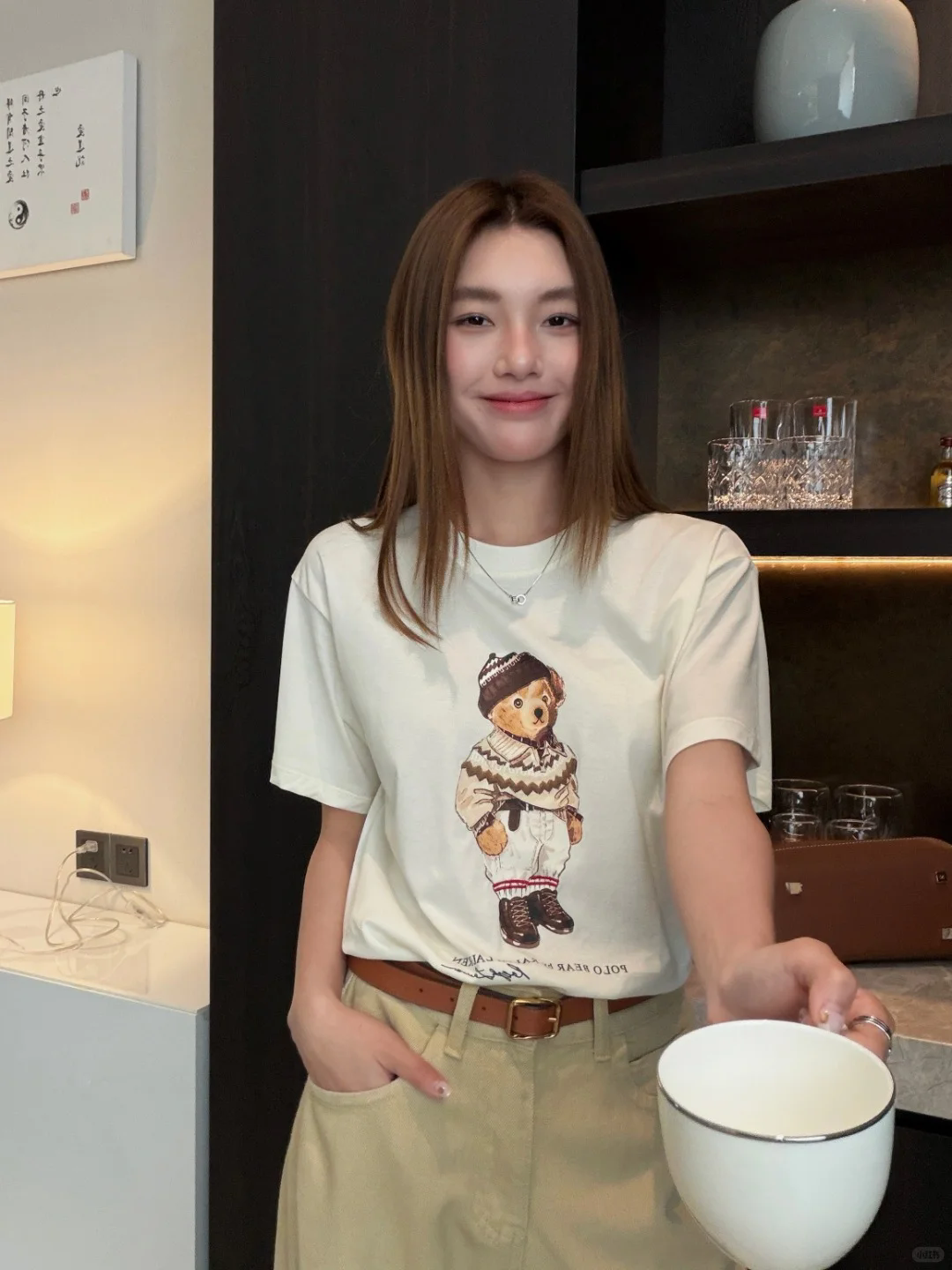 美式卡通tee,松弛感印花半袖儿。本白色复古圆领纯棉t恤E031760