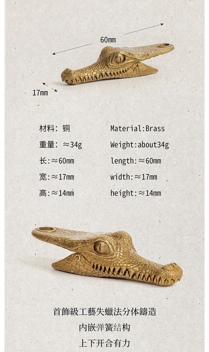 吾蟲-黄铜鳄鱼头夹子动物钥匙挂件包配饰吊坠个性创意礼品励志【官方授权】【48小时发货】