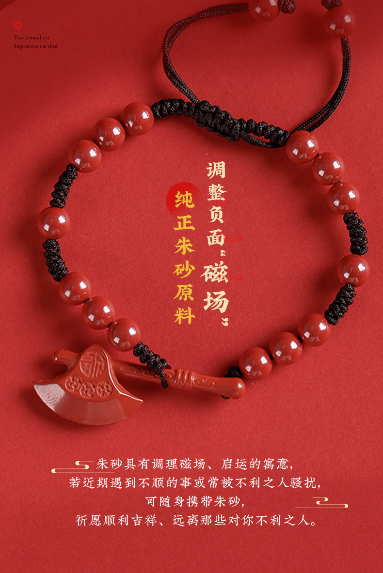 【祈愿吉品】灵机生活馆 龙头斧福朱砂红绳手链 口舌是非 职场婚姻破坏者