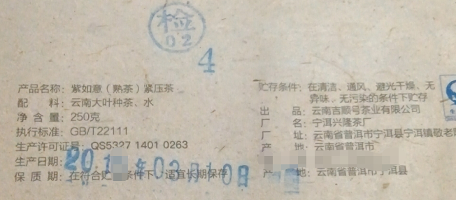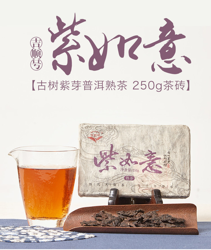 吉顺号丨紫如意 古树紫芽熟普 紫芽普洱茶砖 2013年 250g