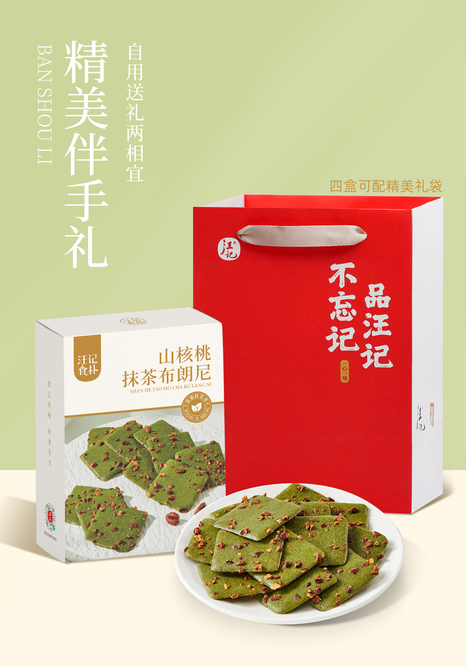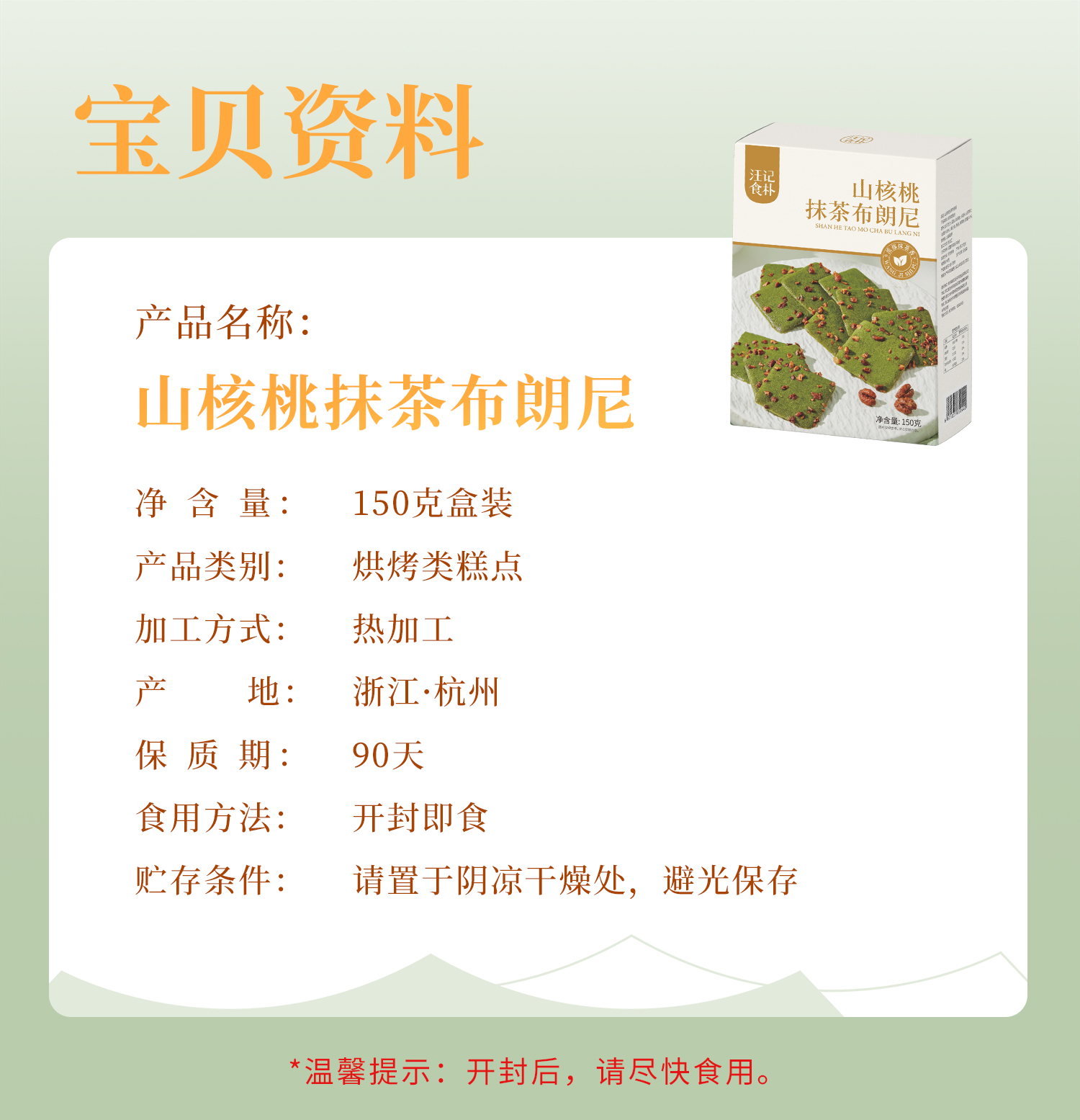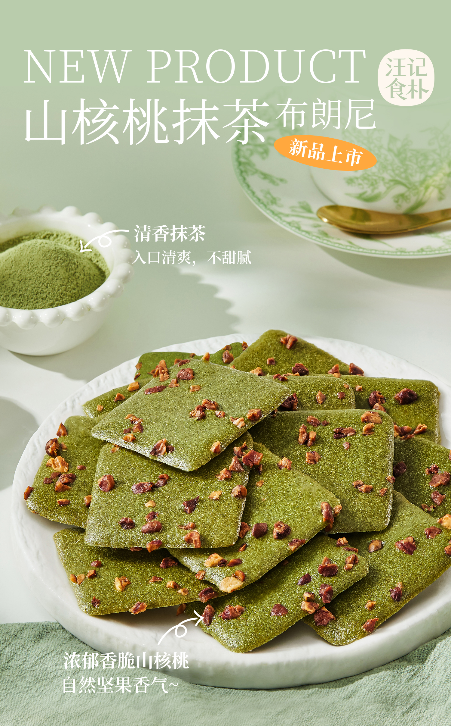 【山核桃抹茶布朗尼脆】汪记食朴山核桃抹糕点 清香抹茶不甜腻150g