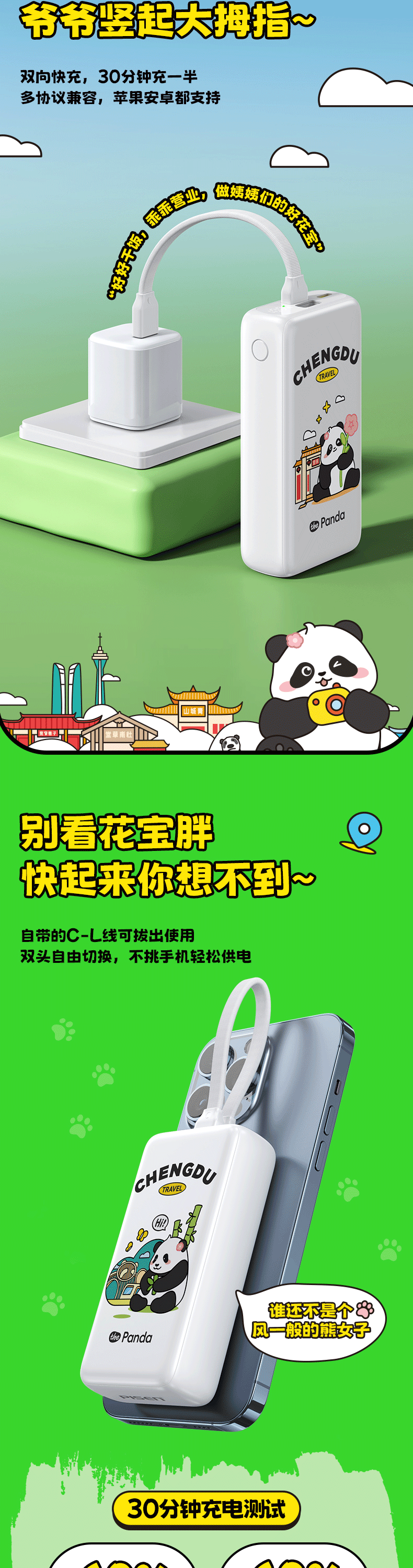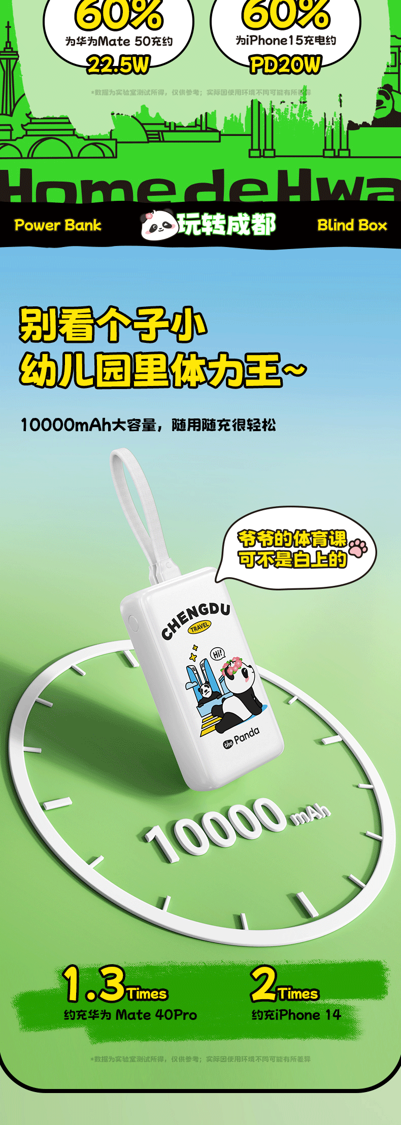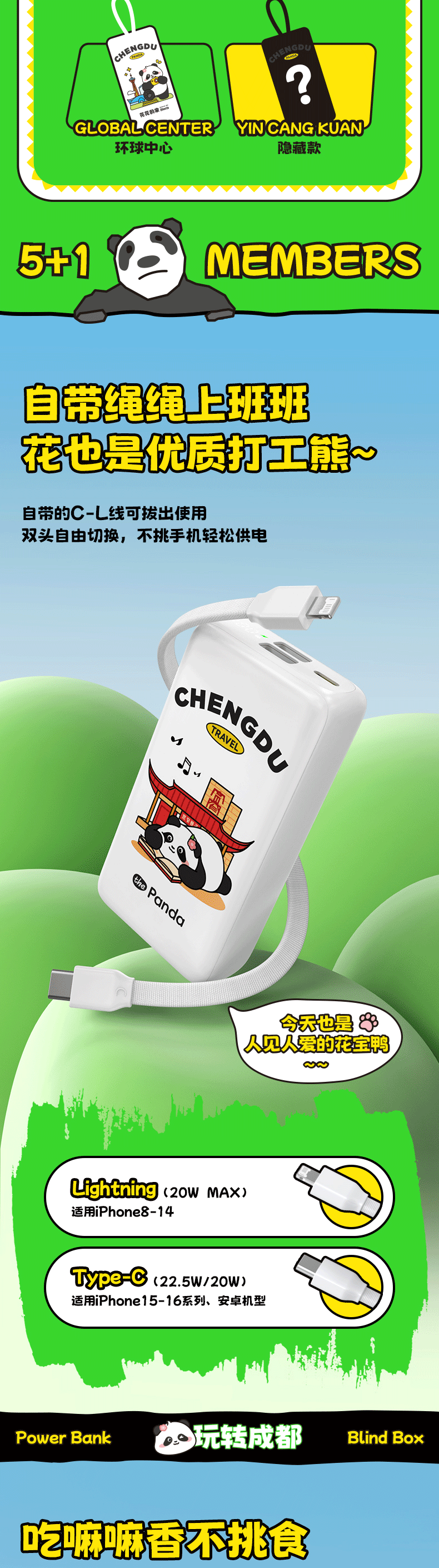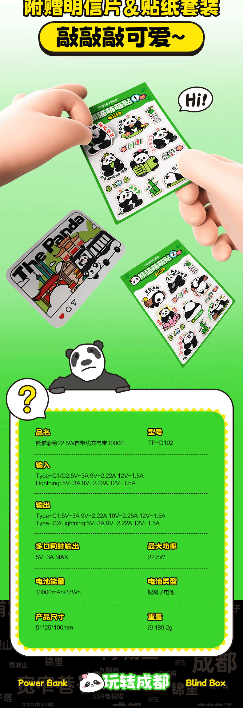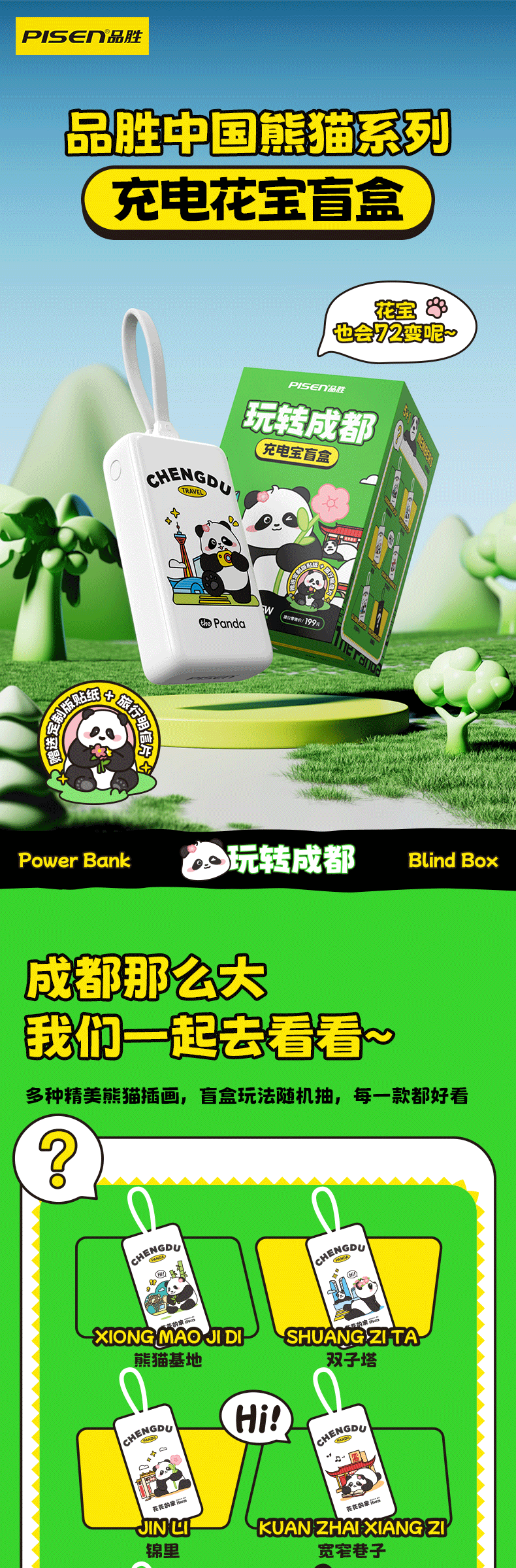 品胜 玩转成都充电宝盲盒套装移动电源 自带Type-C/Lightning输出 10000毫安充电宝支持苹果/华为/小米/荣耀等设备