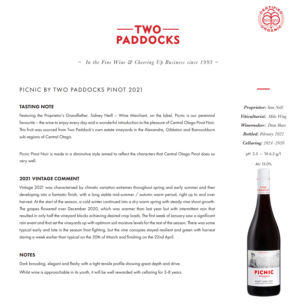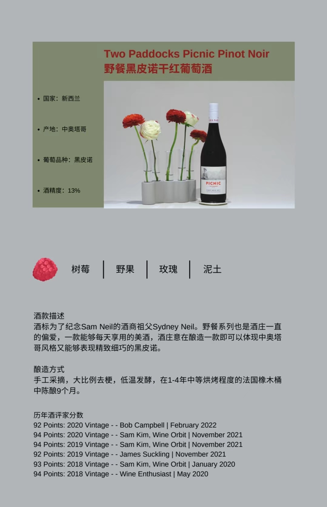 【买一送一】围场•野餐黑皮诺干红葡萄酒 TWO PADDOCKS PICNIC PINOT NOIR