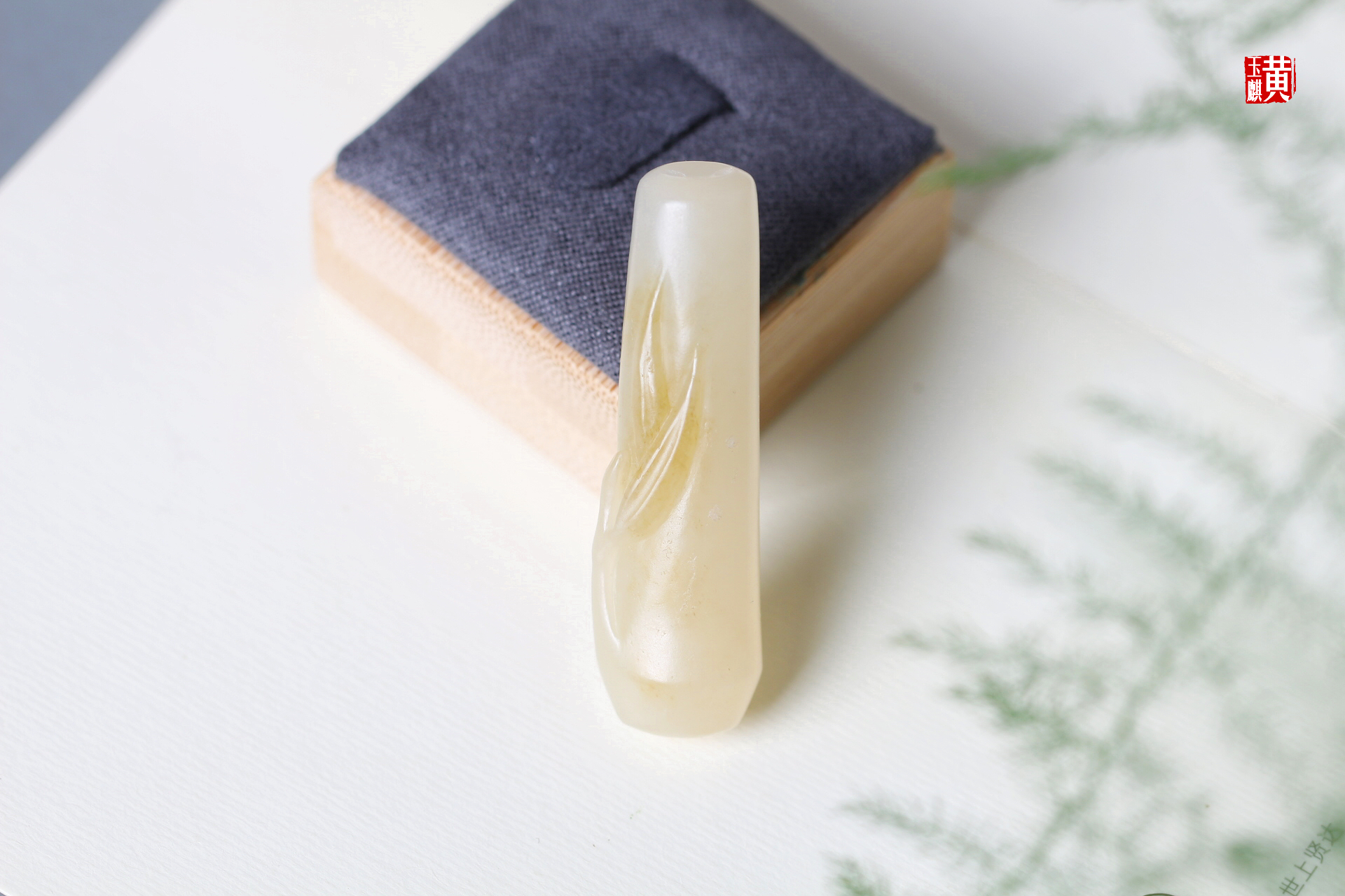 和田糖白玉竹节吊坠 配精美挂绳