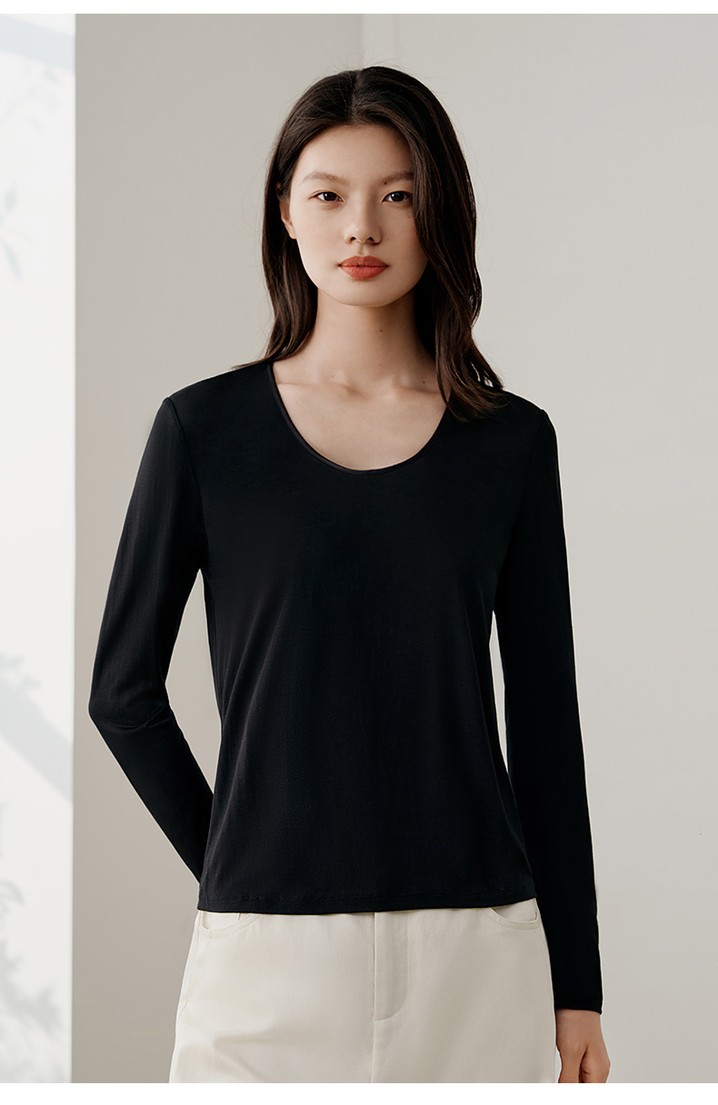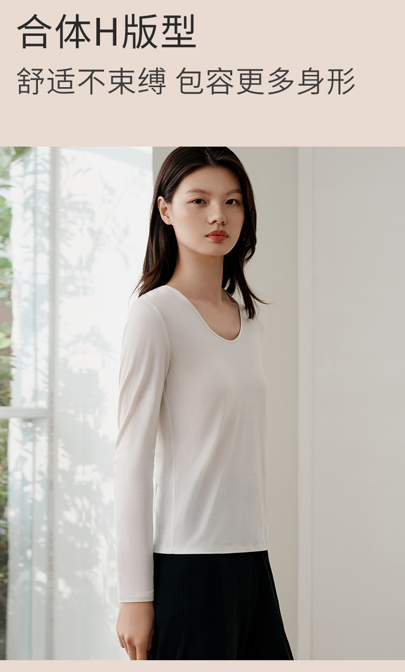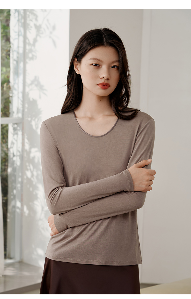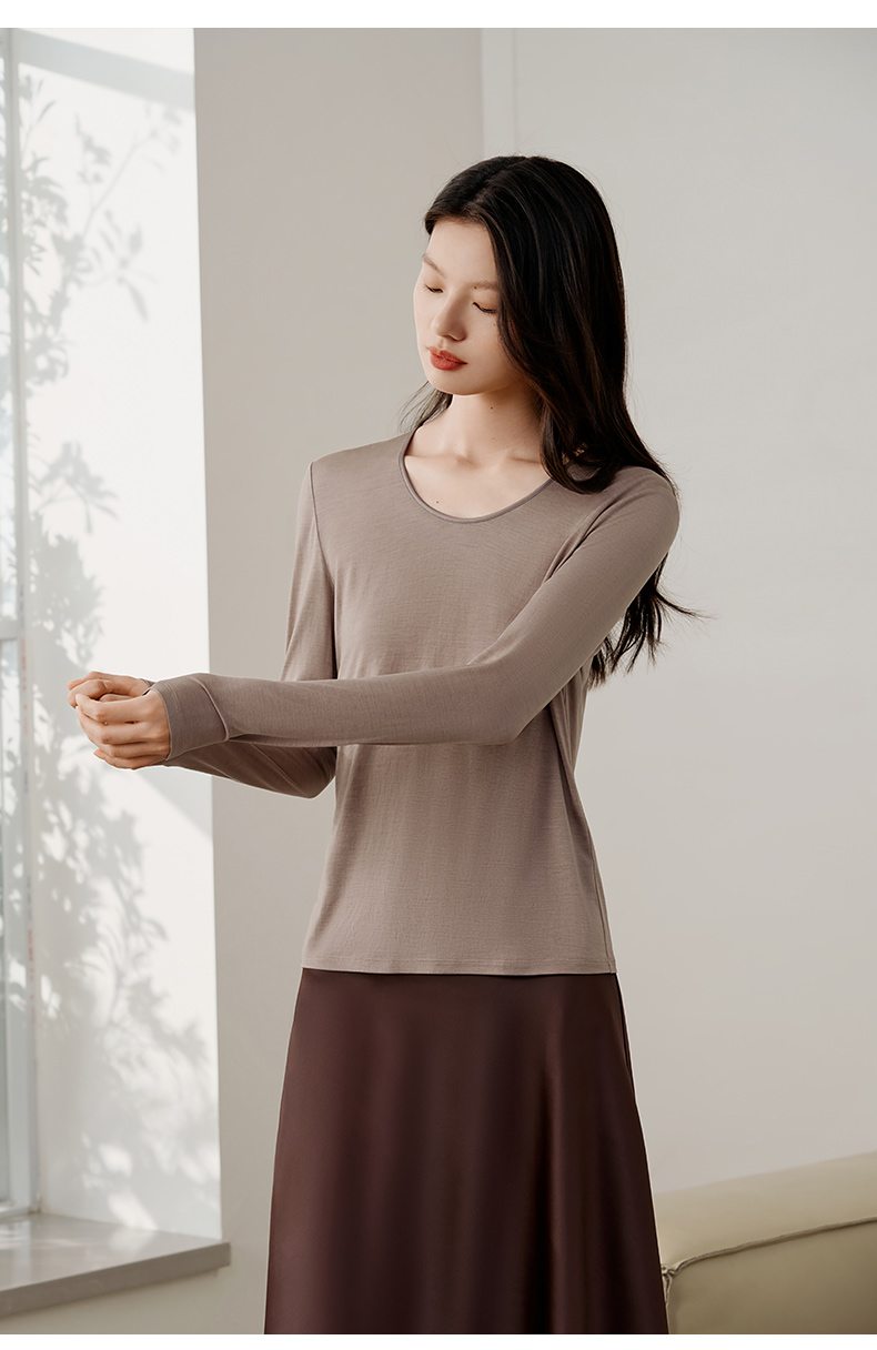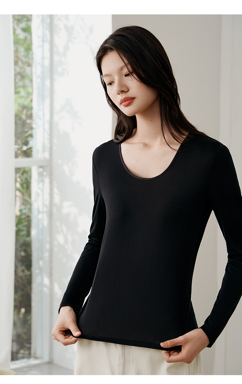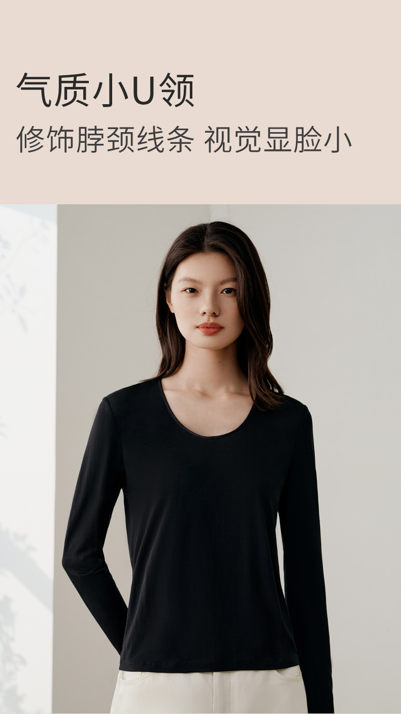 金三塔真丝针织打底衫女100%桑蚕丝纯色U领打底上衣亲肤保暖内衣(限价款) NZFFC720
