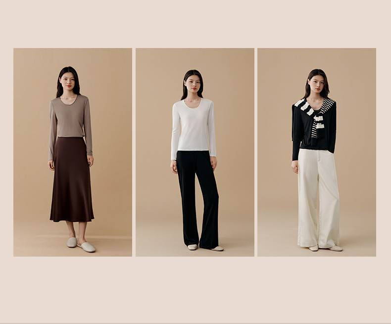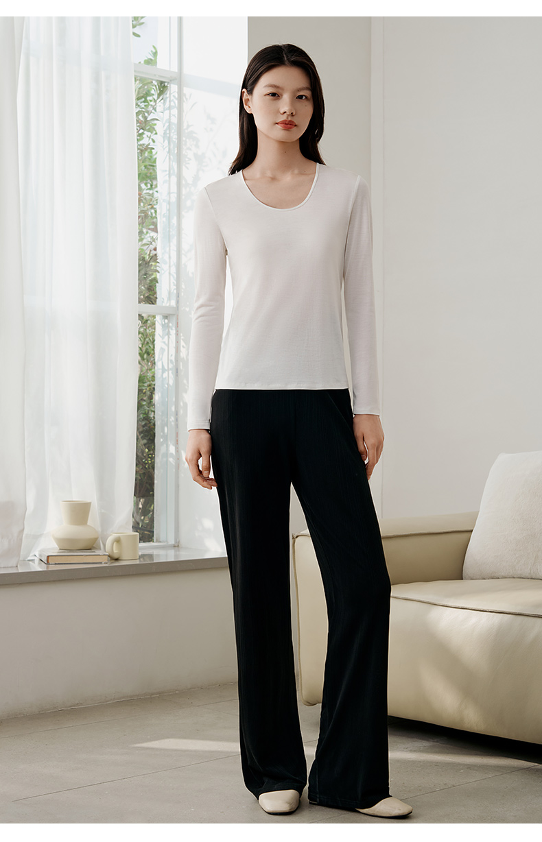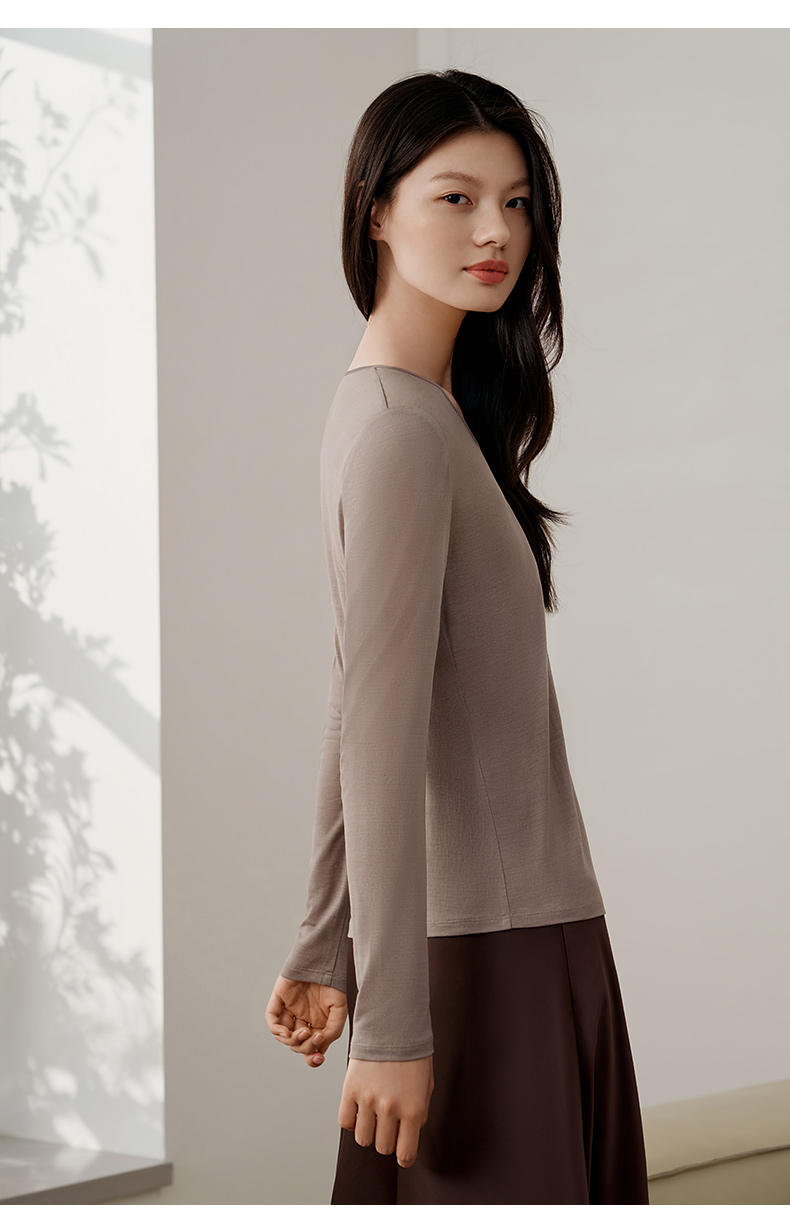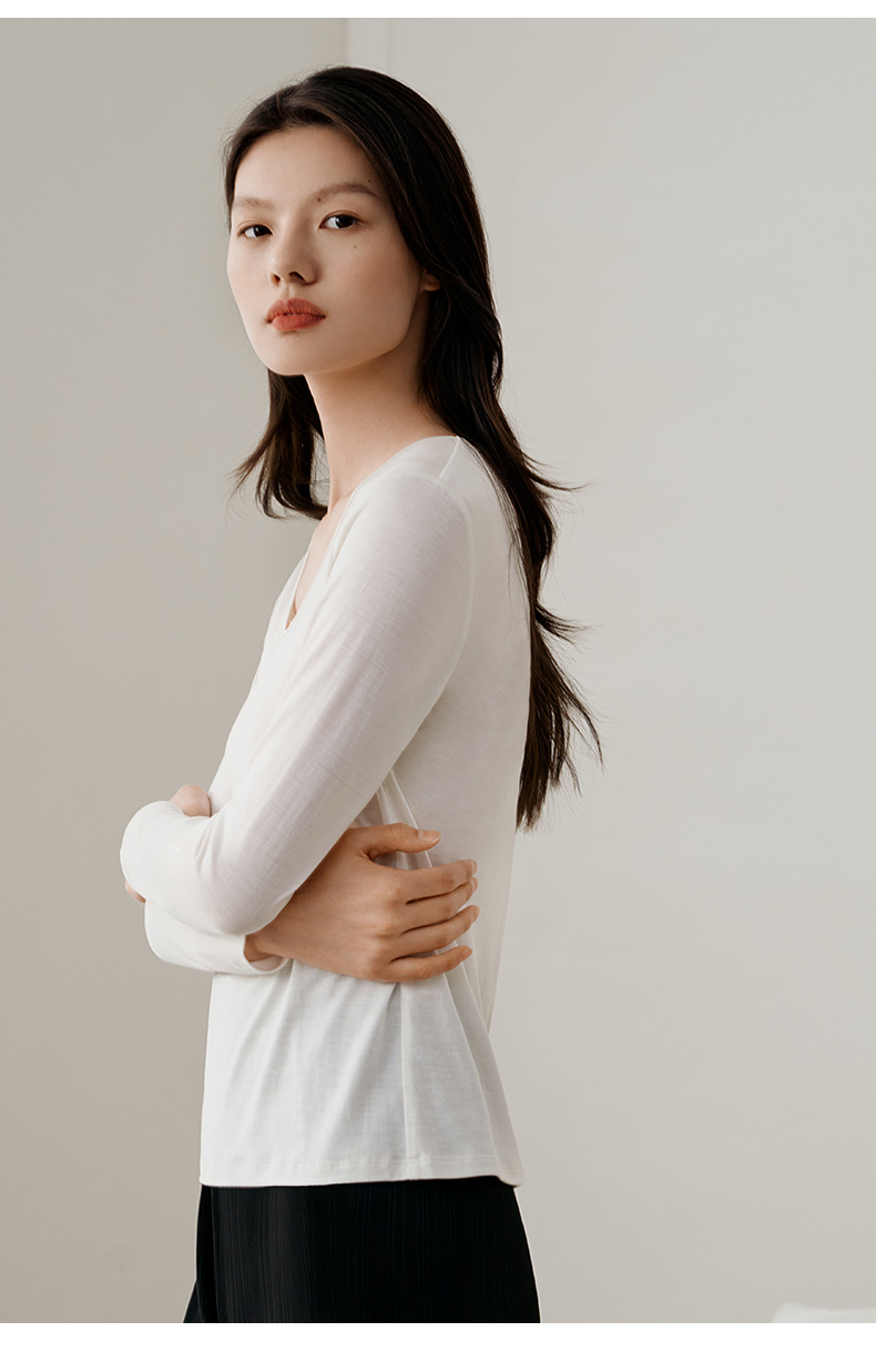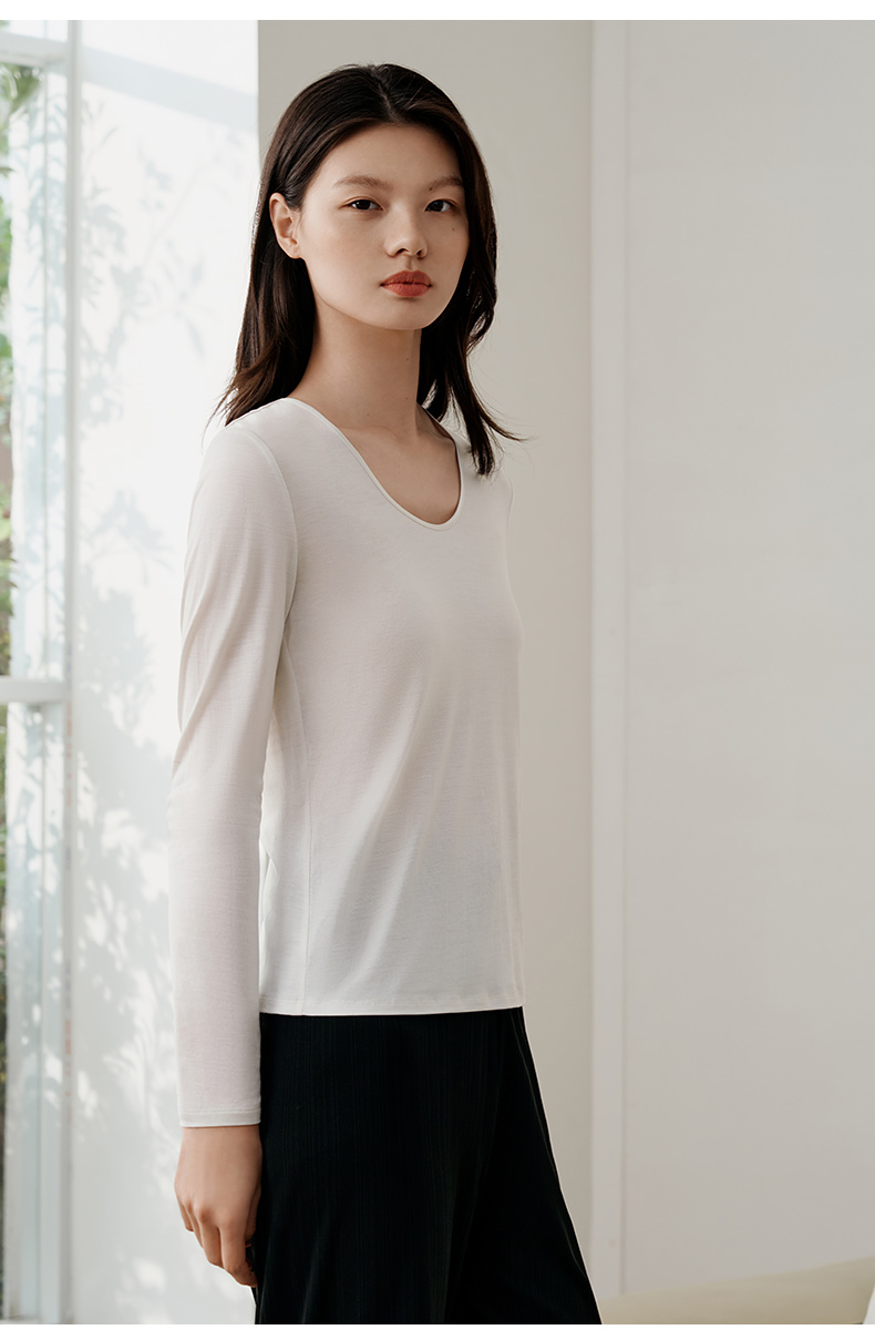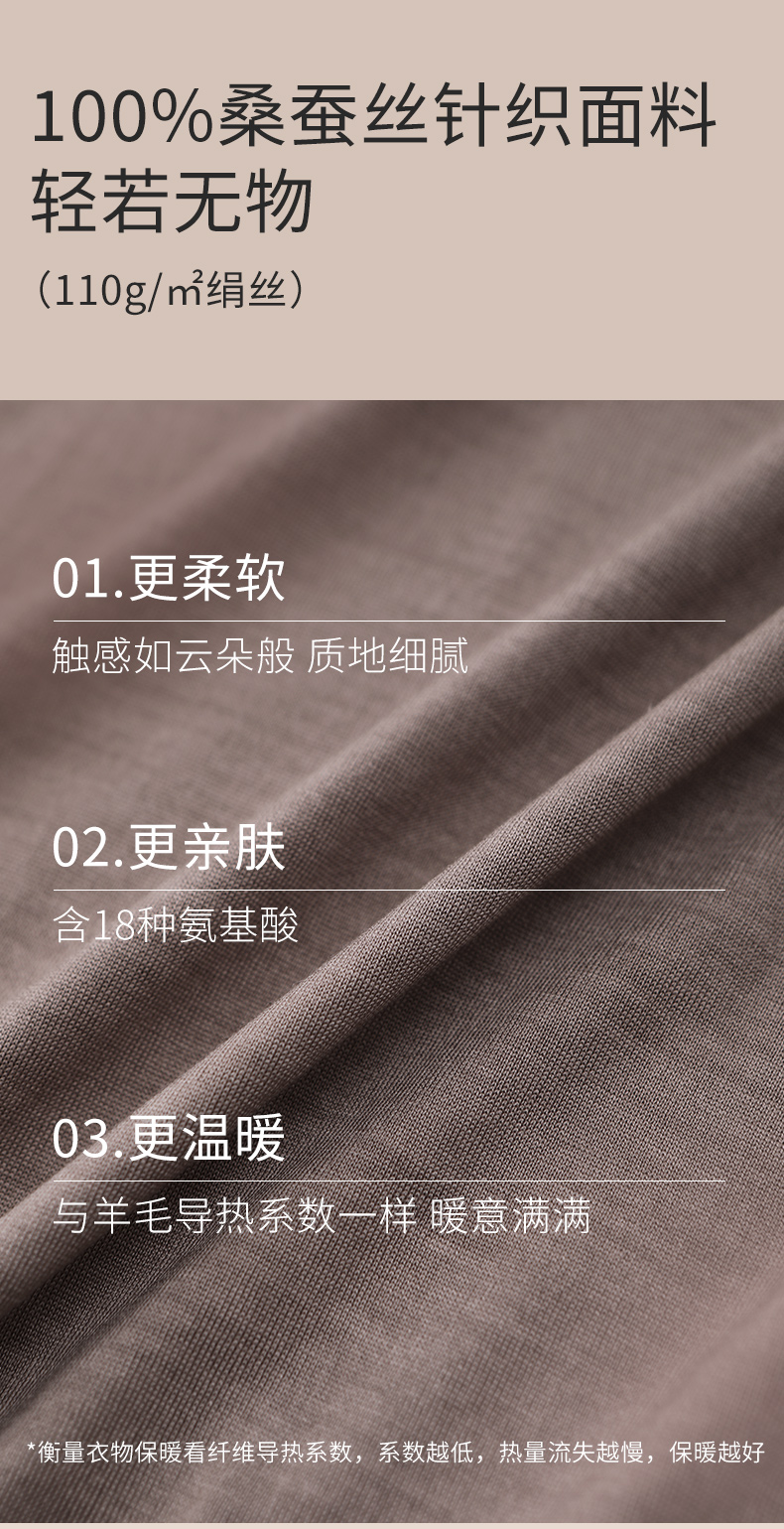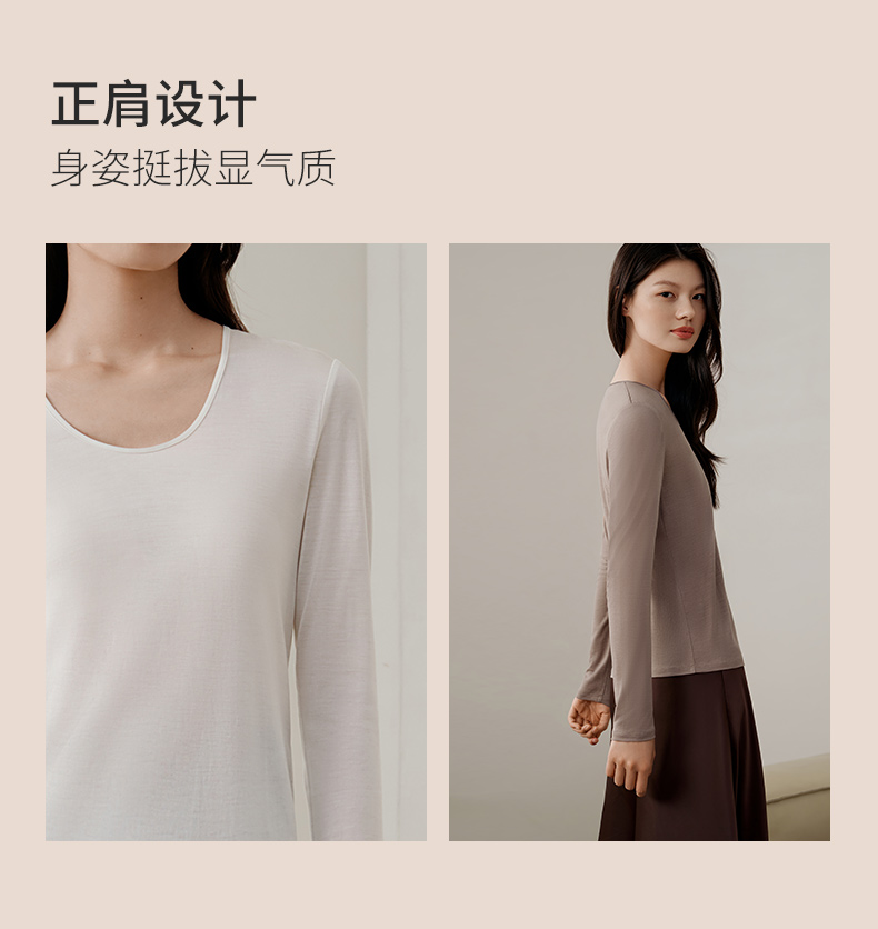 金三塔真丝针织打底衫女100%桑蚕丝纯色U领打底上衣亲肤保暖内衣(限价款) NZFFC720