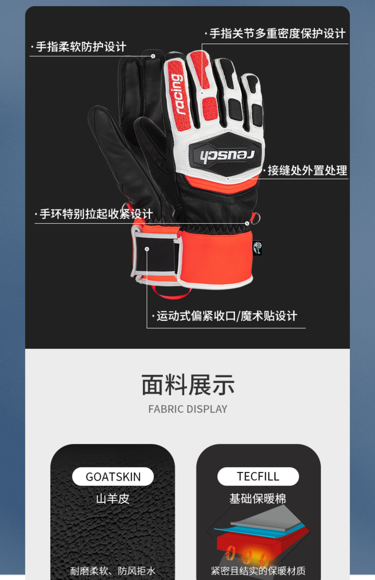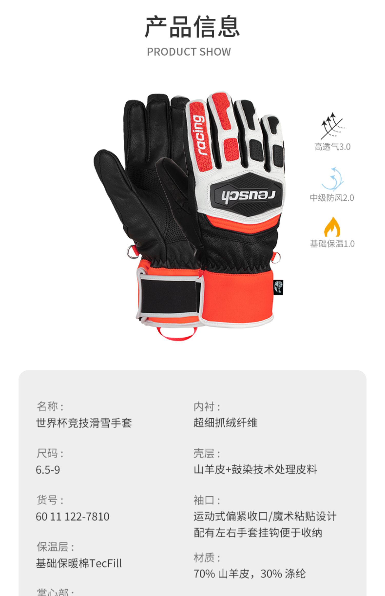 Reusch炫驰男女款分指防护专业竞技世界杯勇士滑雪手套6011122