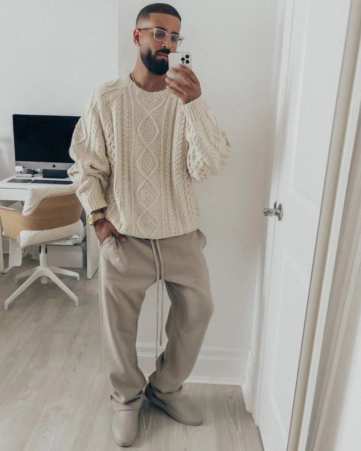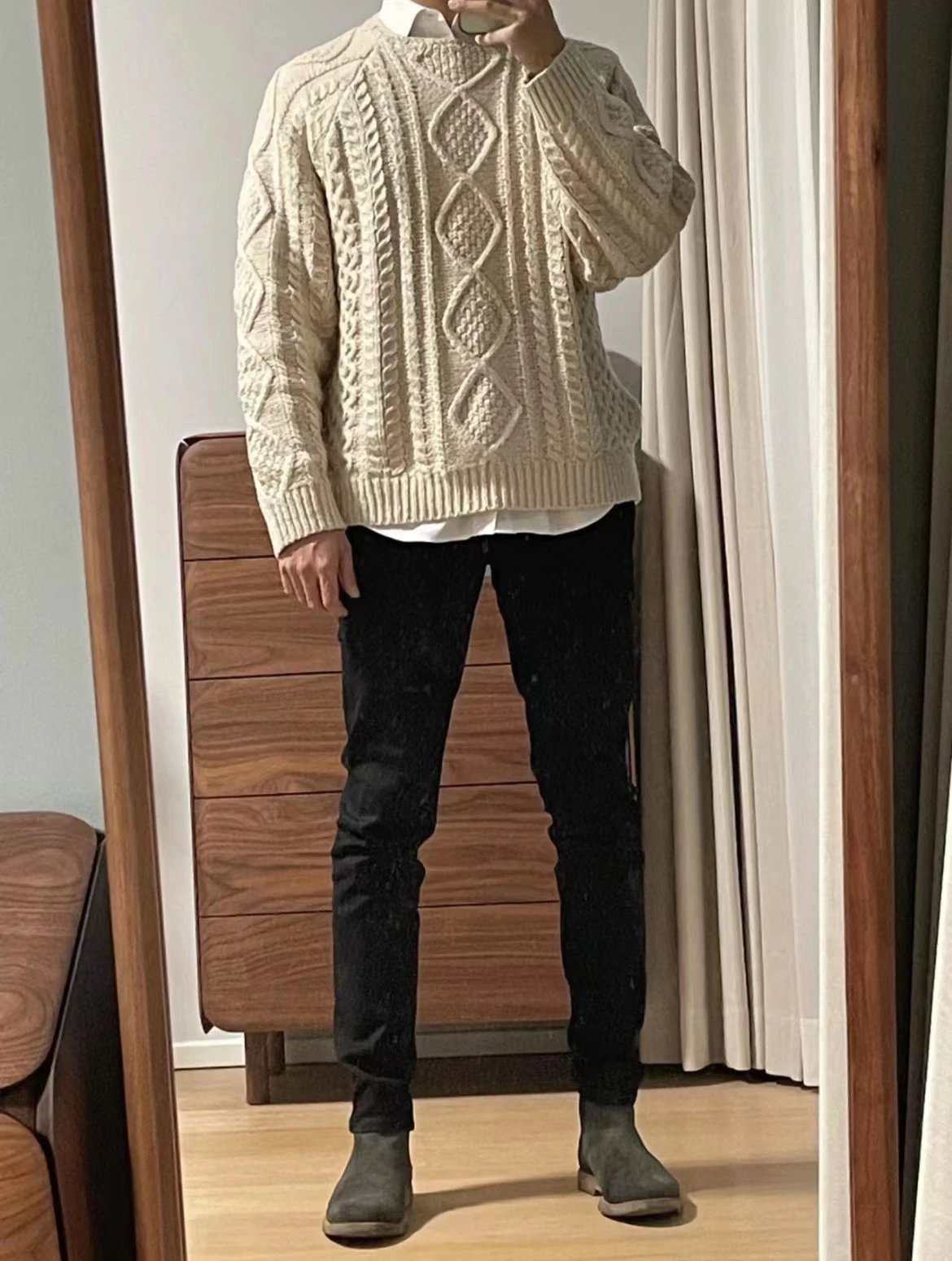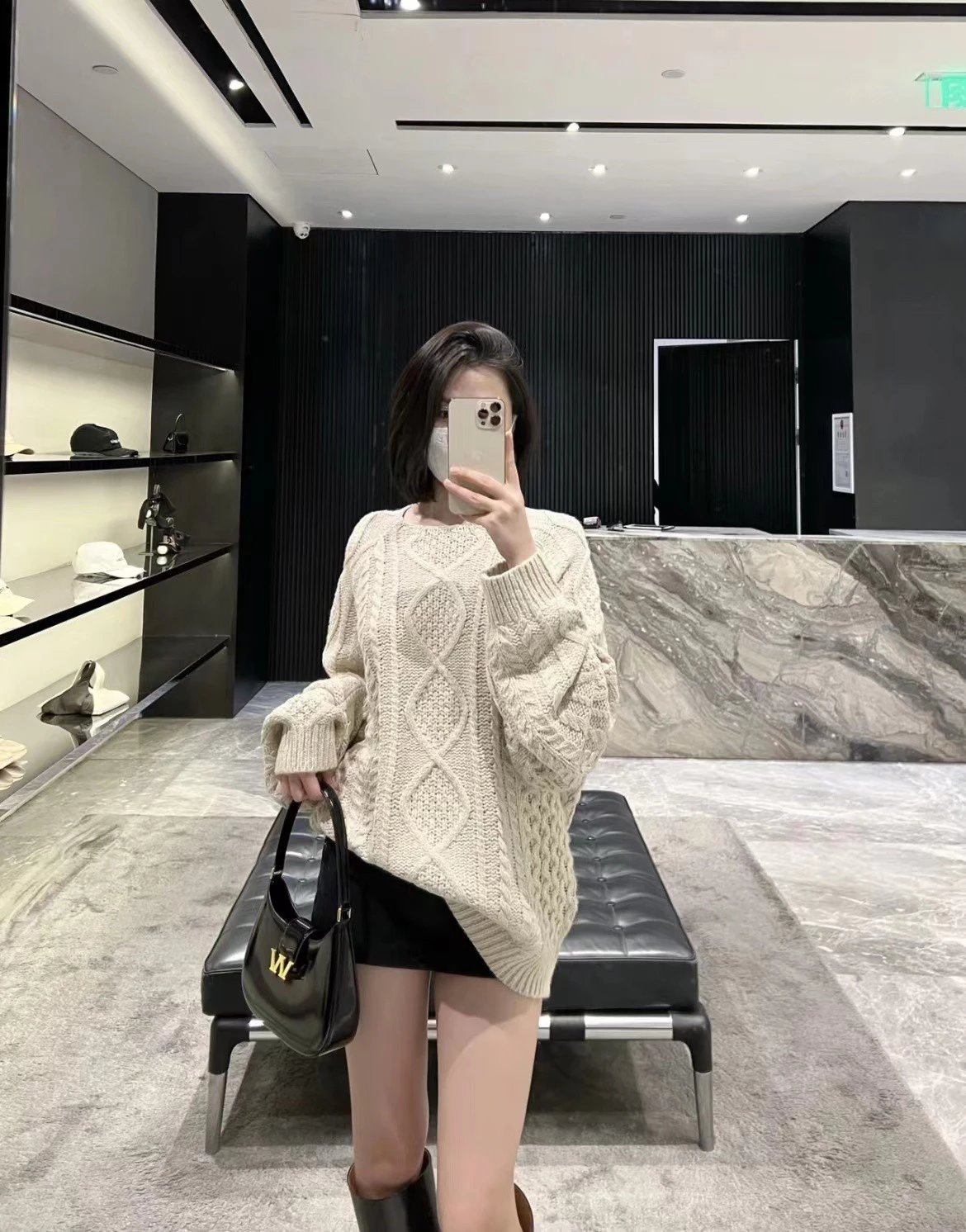 这一季以crewneck圆领款回归,粗麻花纹很有奶奶织的毛衣的感觉