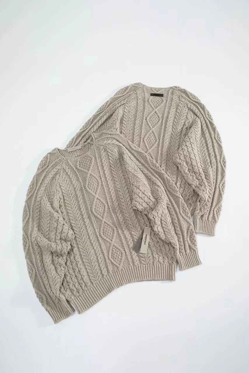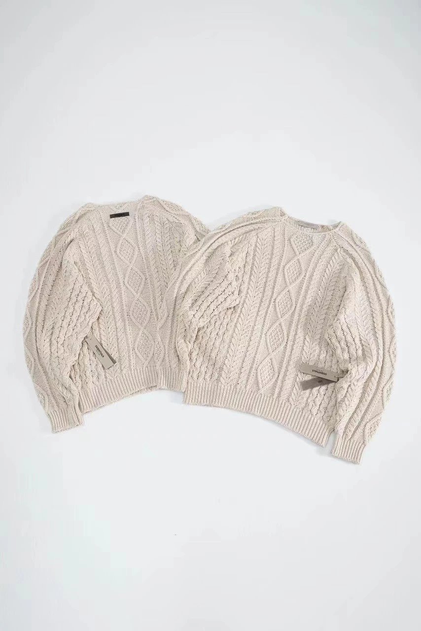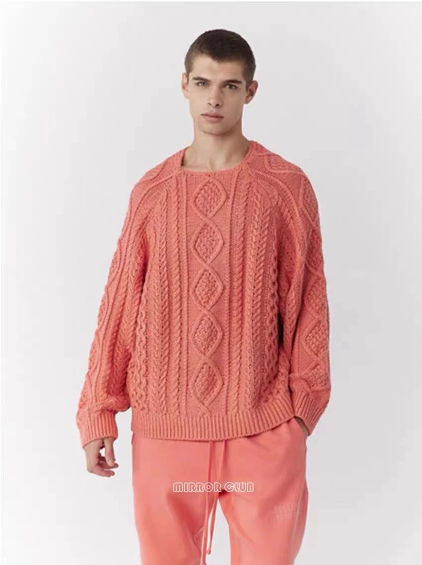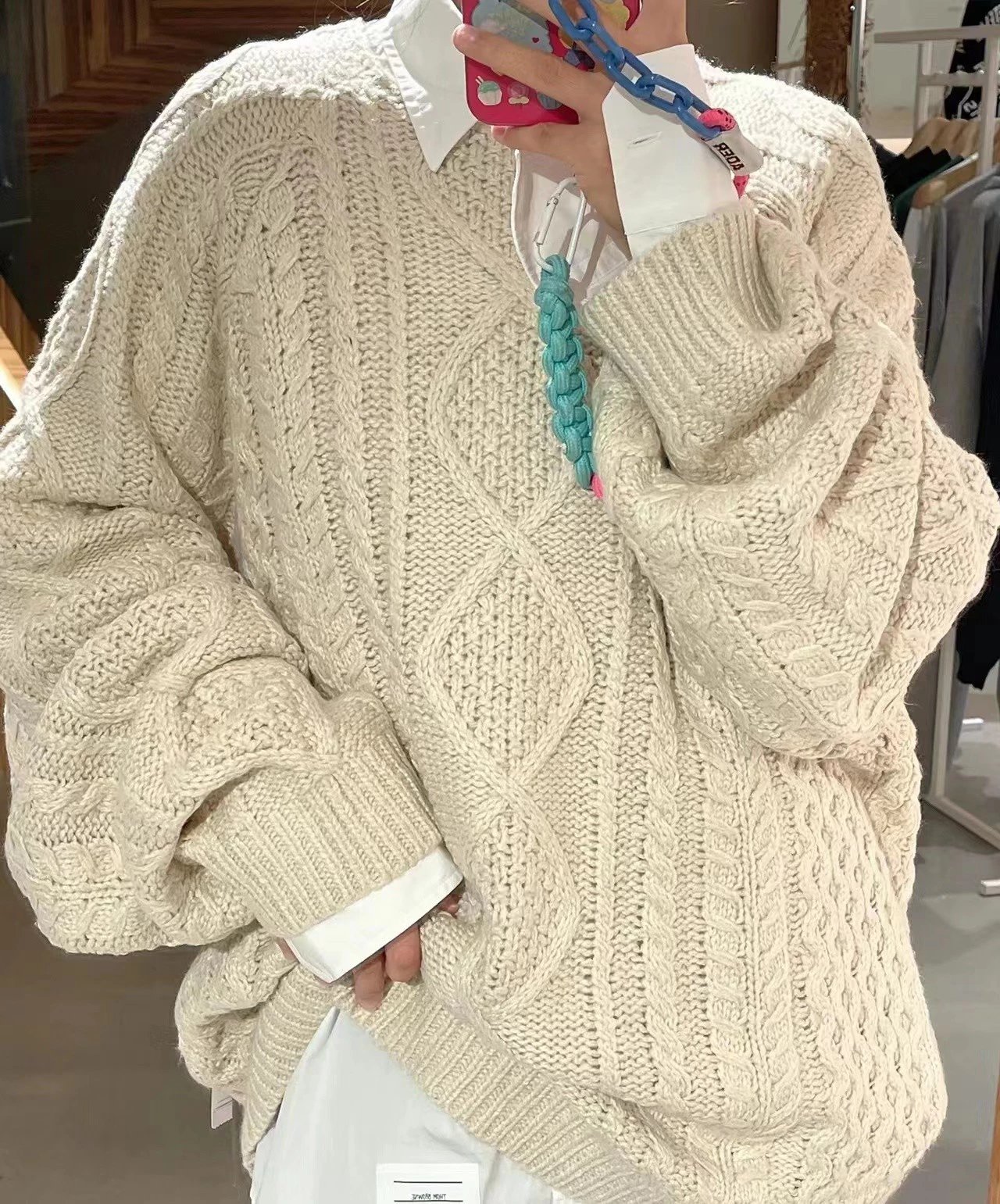 ESS 宽松廓形 厚重质感 奶奶风麻花圆领毛衣
