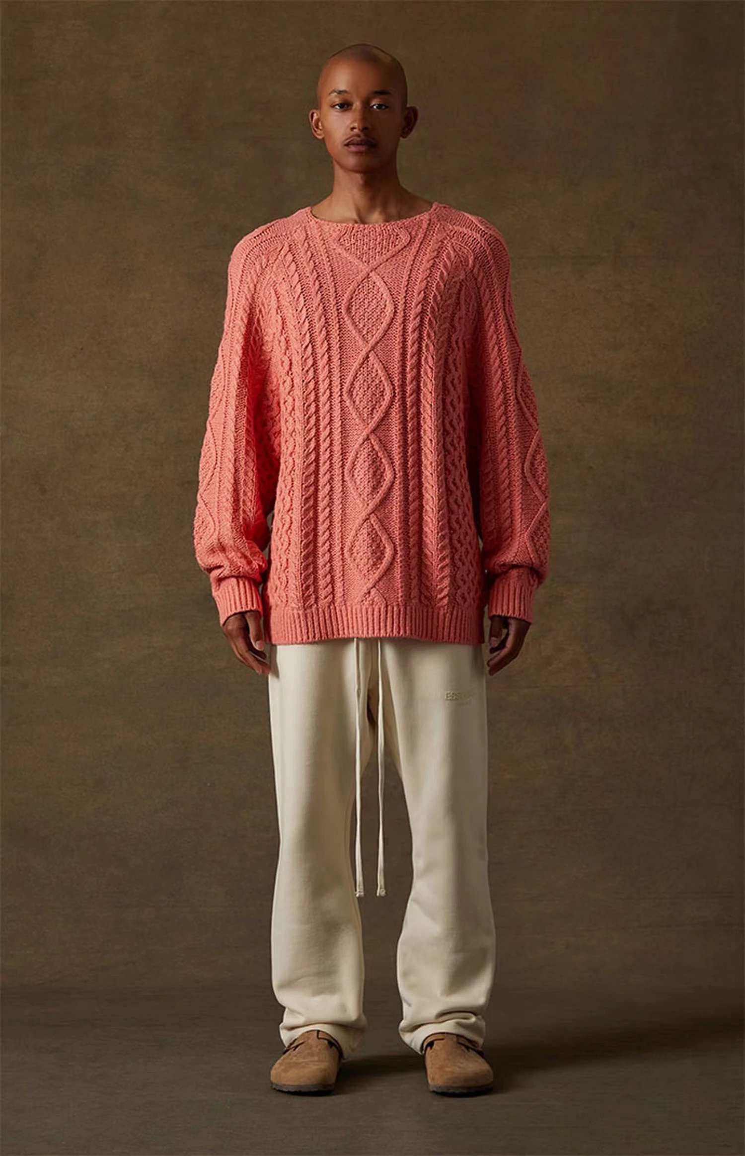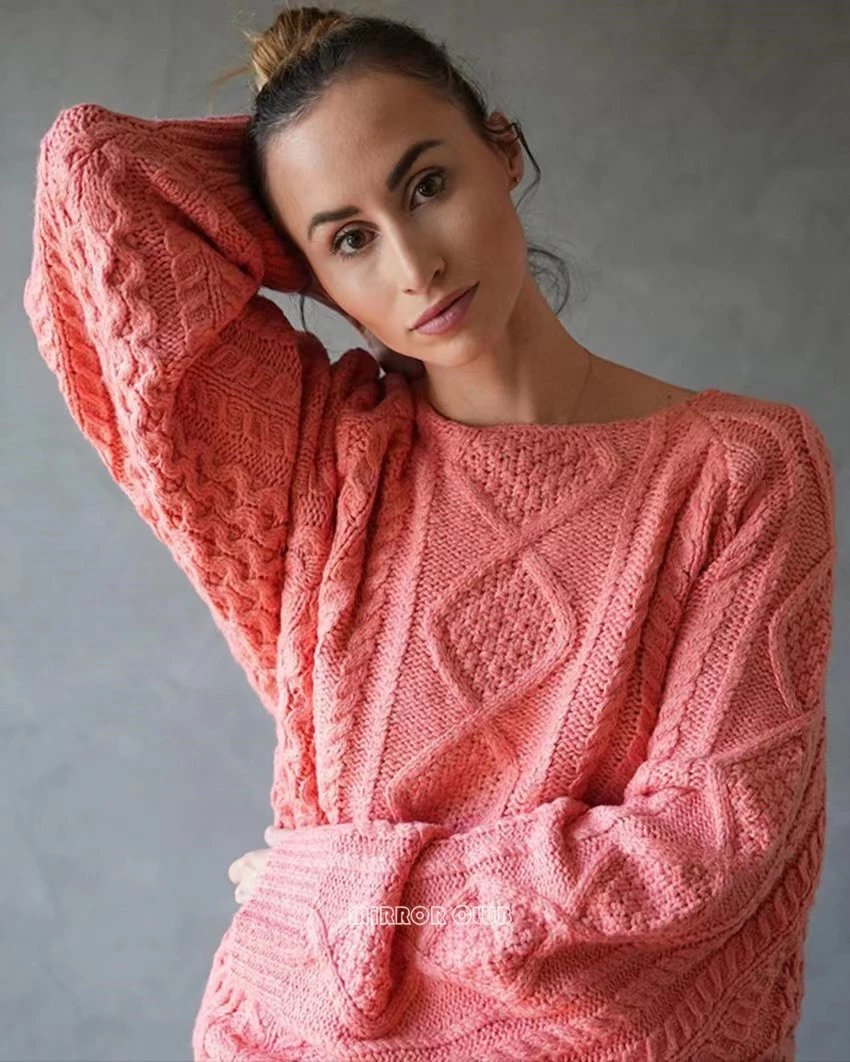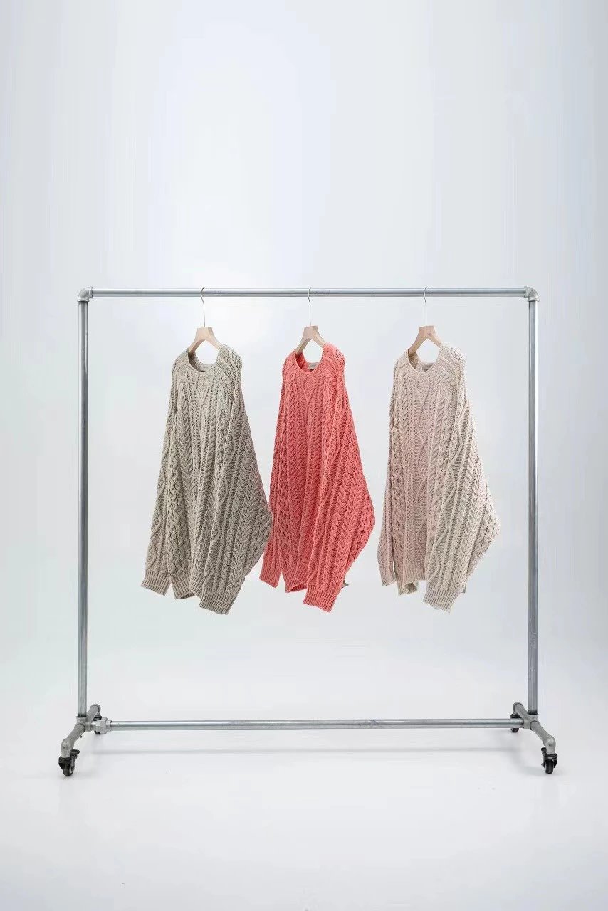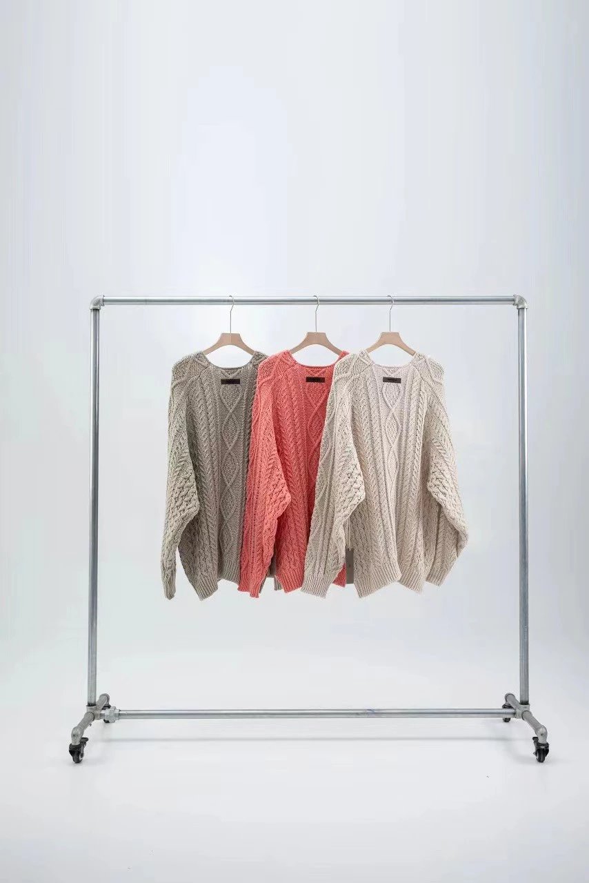 ESS 宽松廓形 厚重质感 奶奶风麻花圆领毛衣