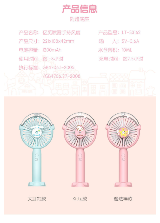 【风扇】亿觅卡通加湿便携迷你USB手持风扇