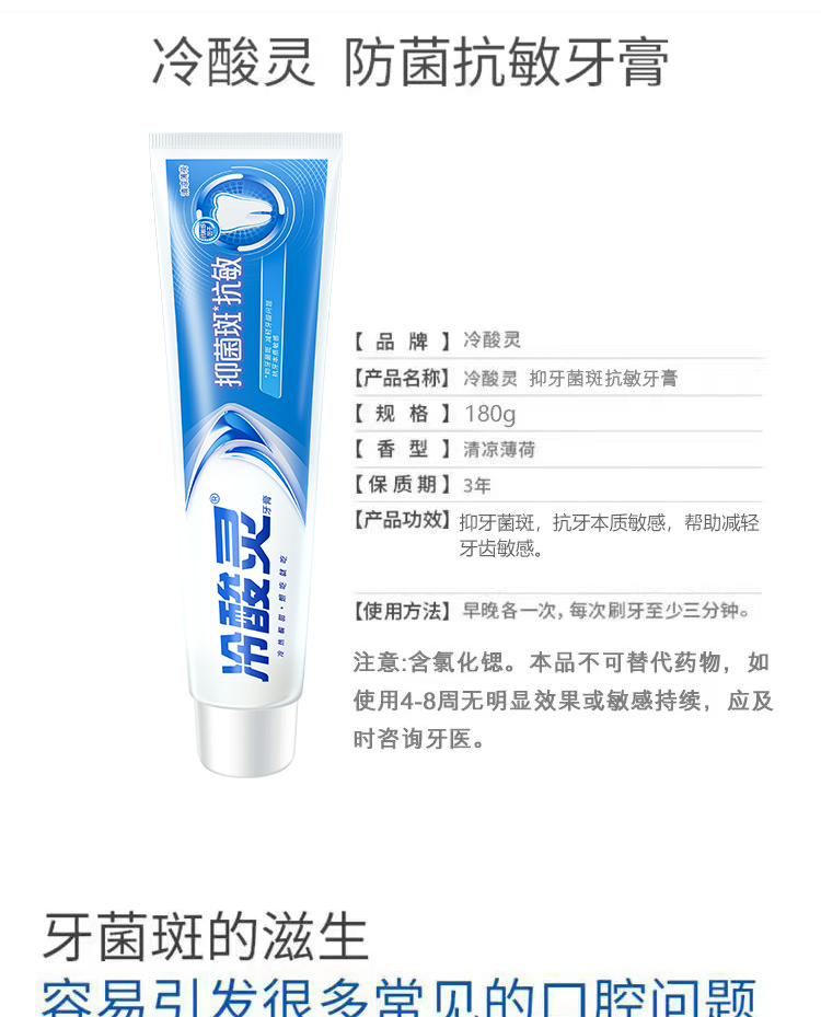 冷酸灵防菌抗敏清凉薄荷牙膏(180g)【20059637】