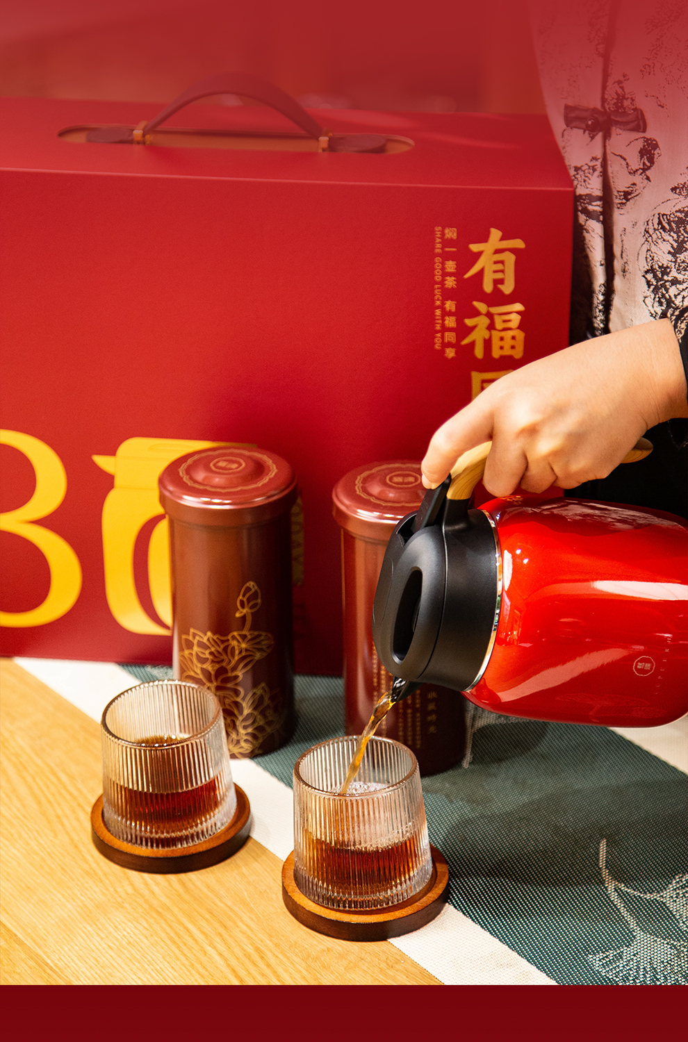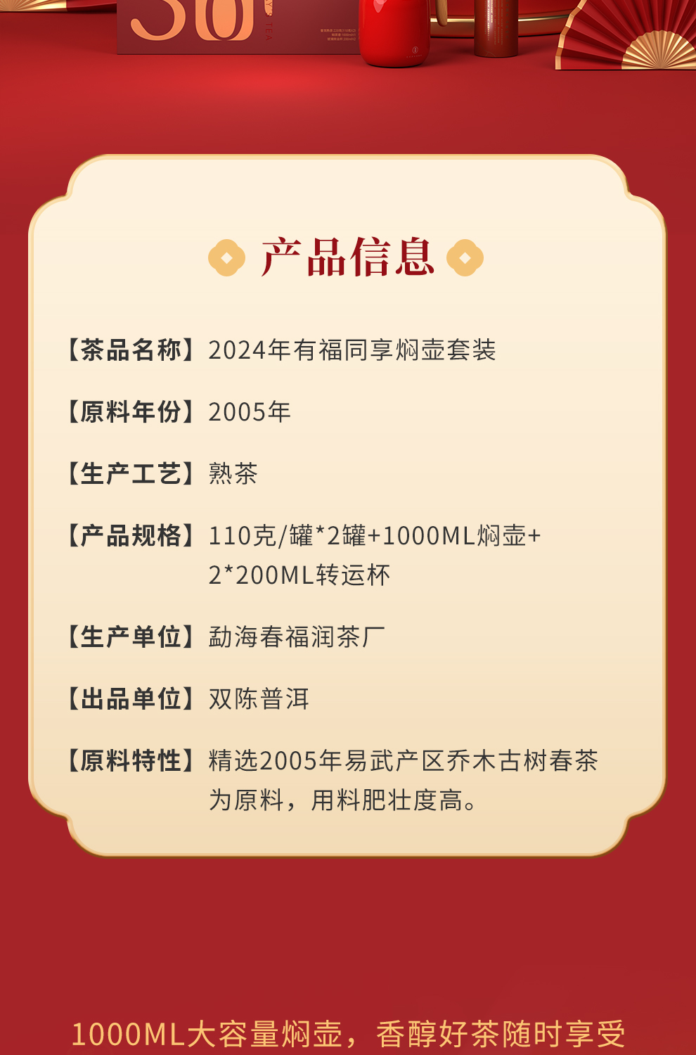 2024年有福同享焖壶套装熟茶2005年易武老树熟散+1000ml焖壶+2个转运杯