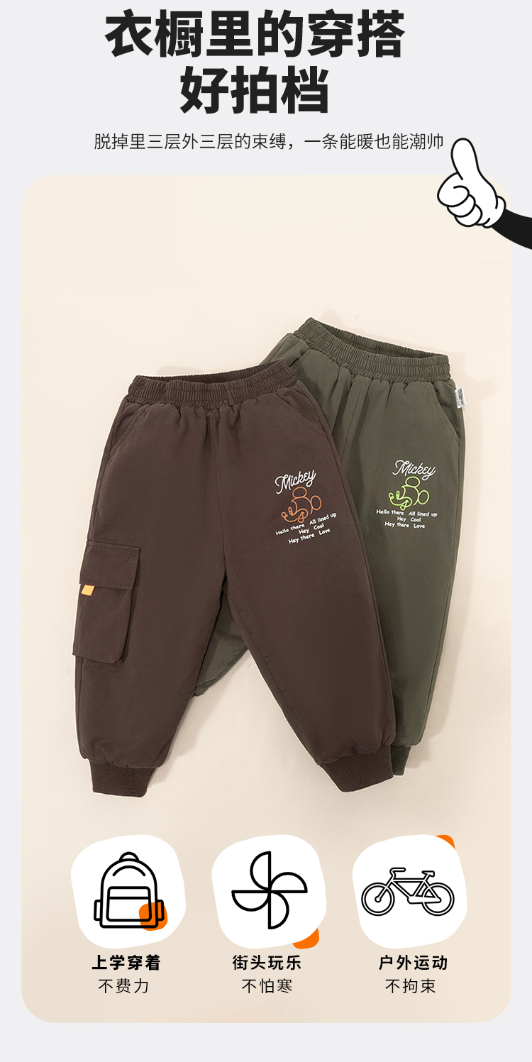 迪士尼男宝宝秋冬款夹棉保暖长裤ZD4DK018