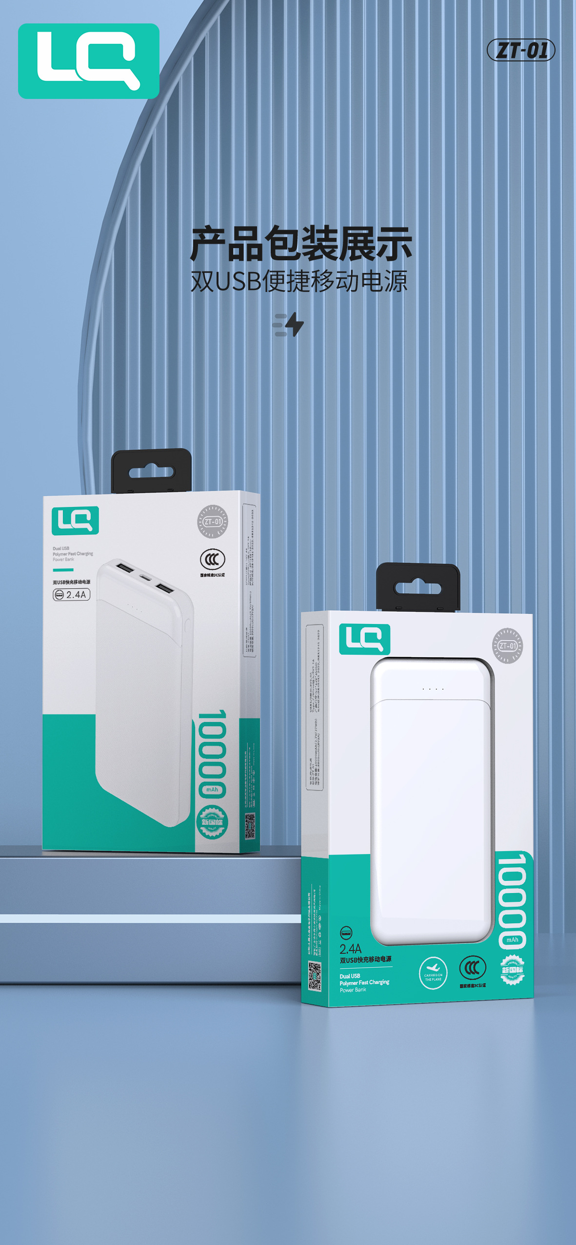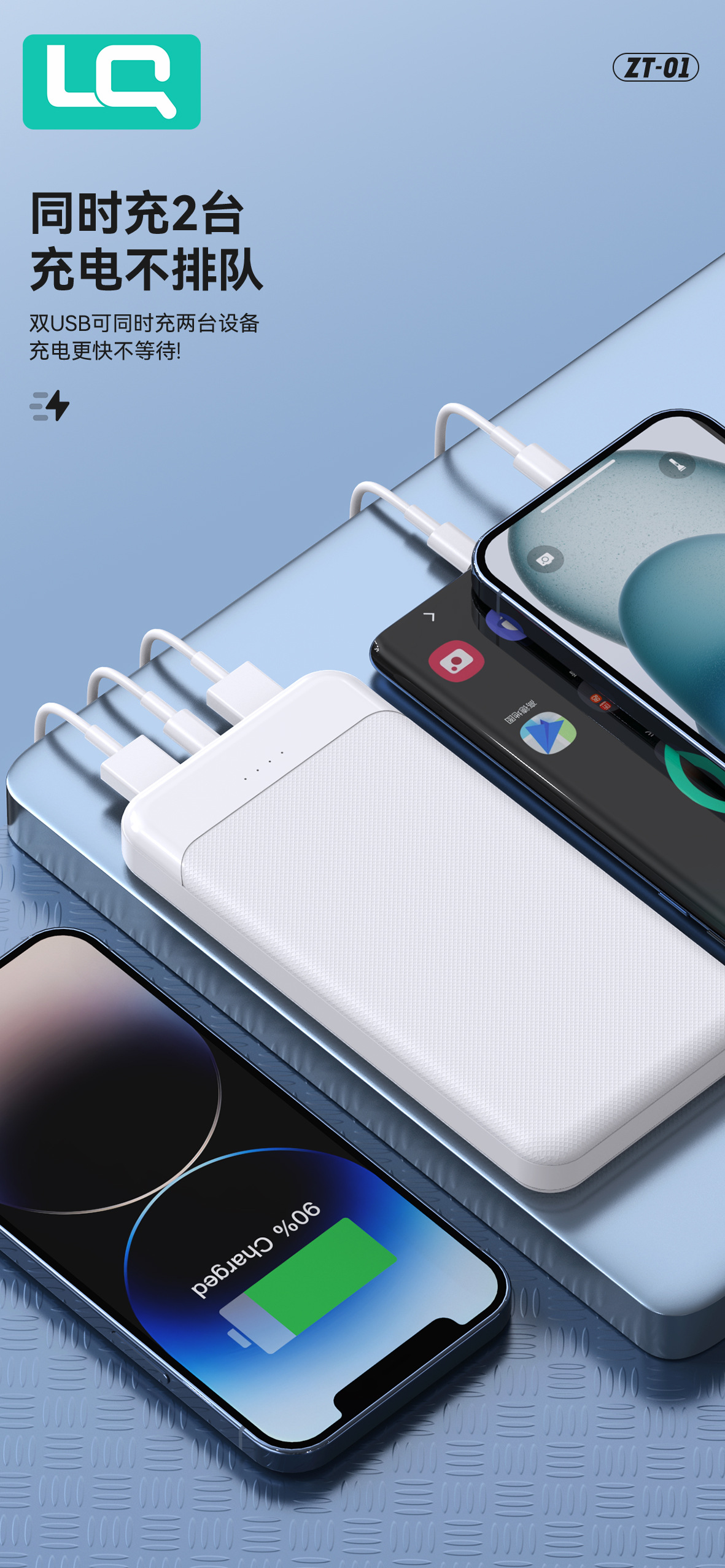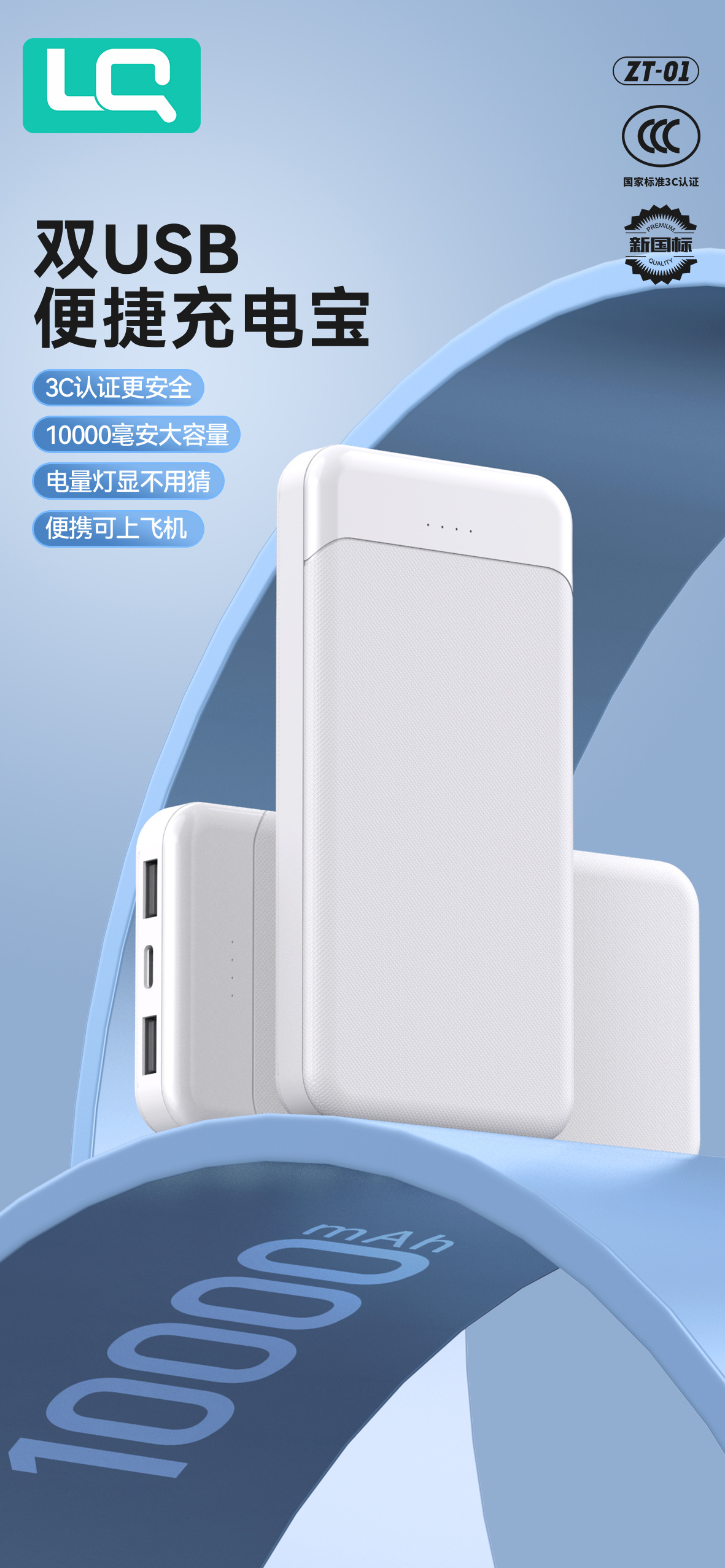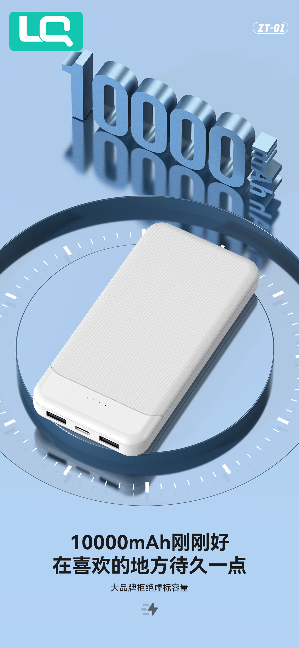 严选充电宝 轻薄便携双USB通用快充20000mAh移动电源