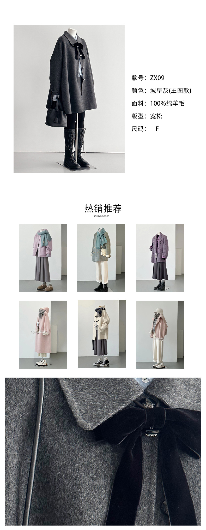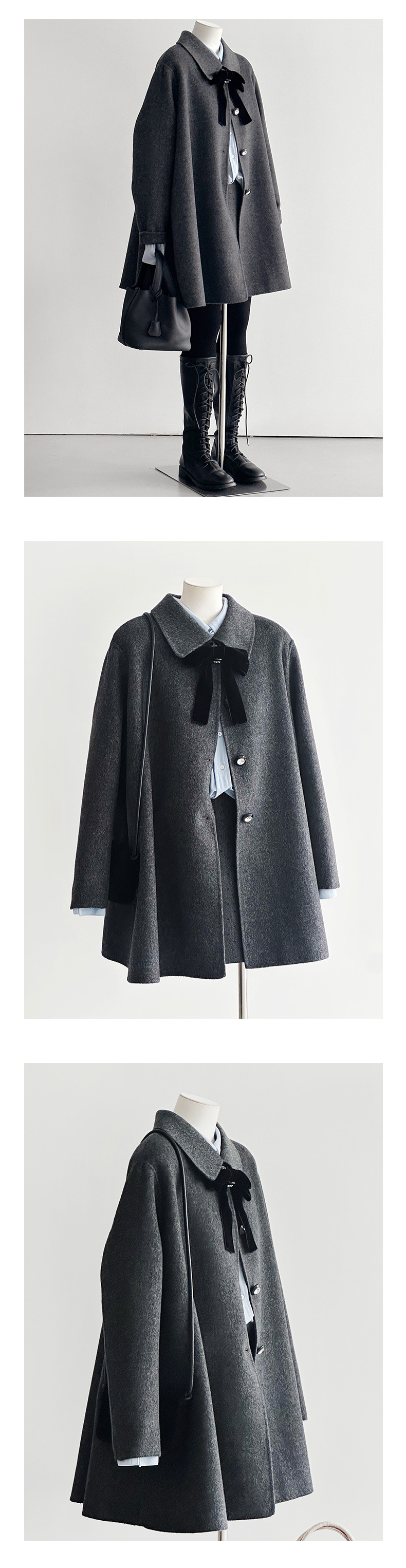 【千金大小姐】24新款小斗篷蝴蝶结气质时尚百搭贵气灰色大衣