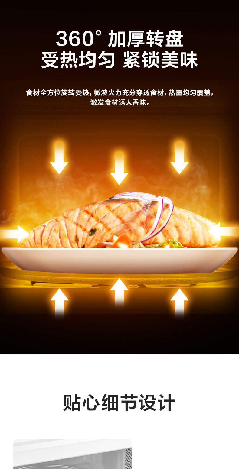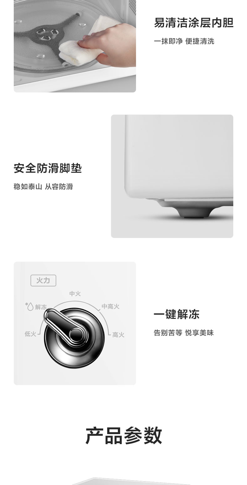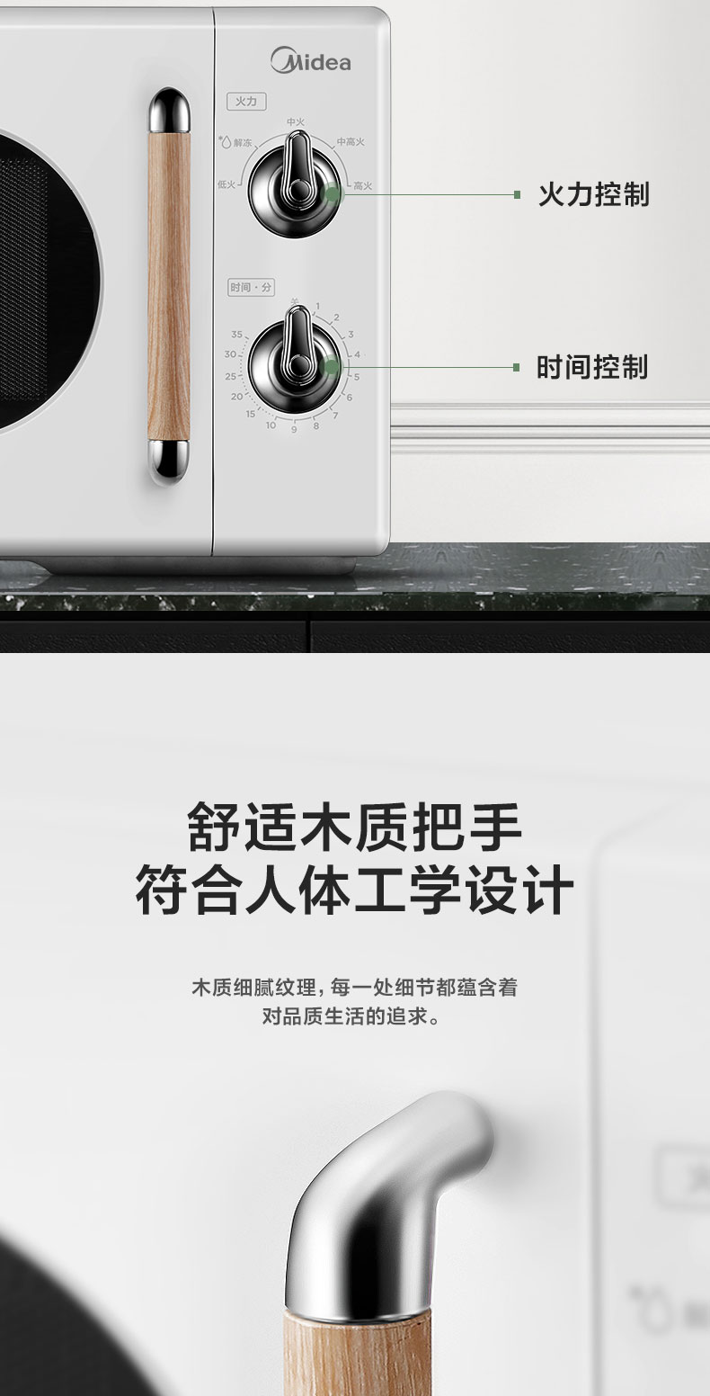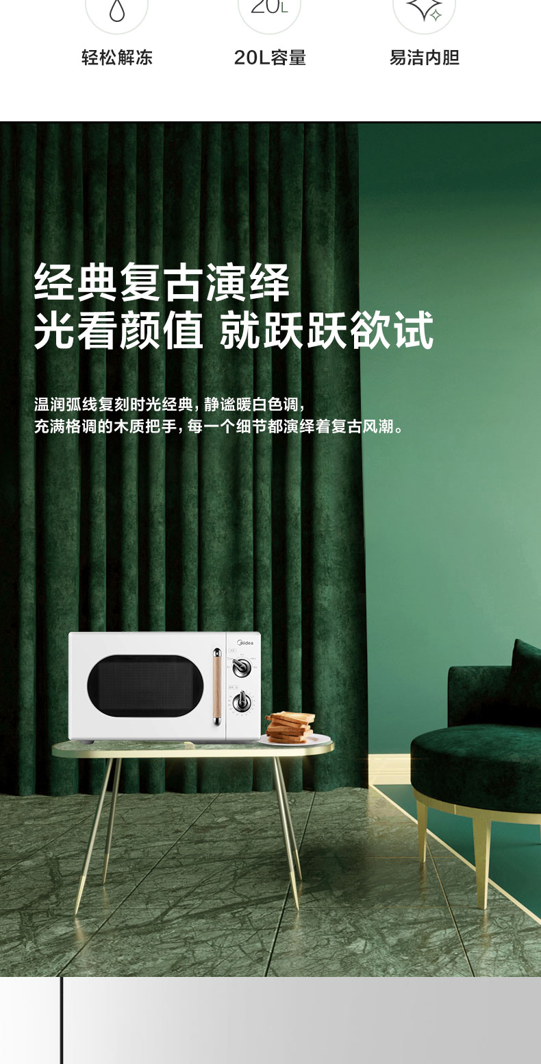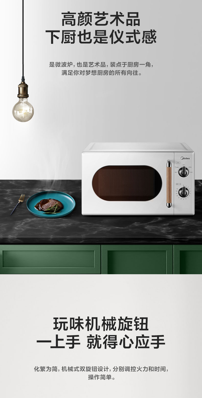 美的(Midea)复古旋钮微波炉360°转盘式加热20升PM2004白色