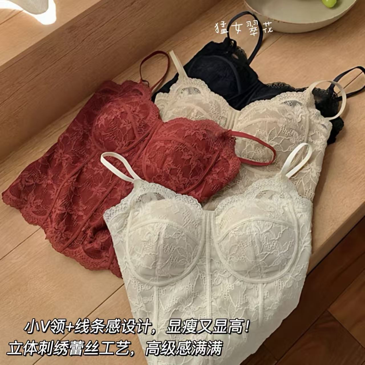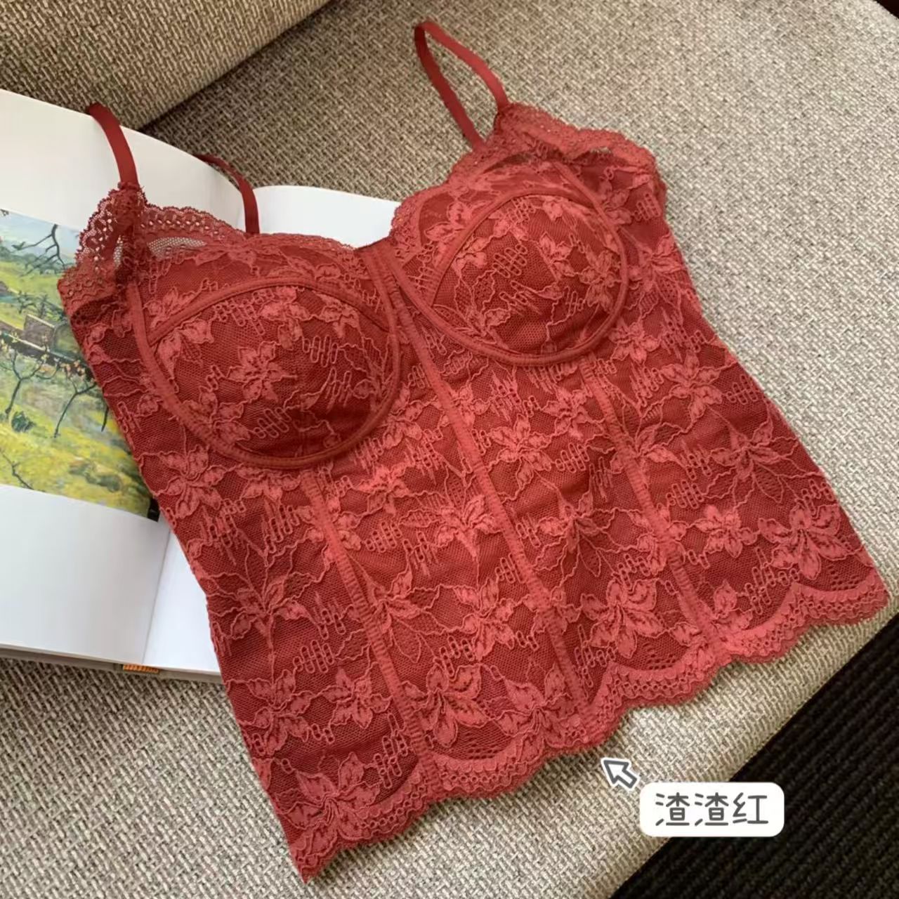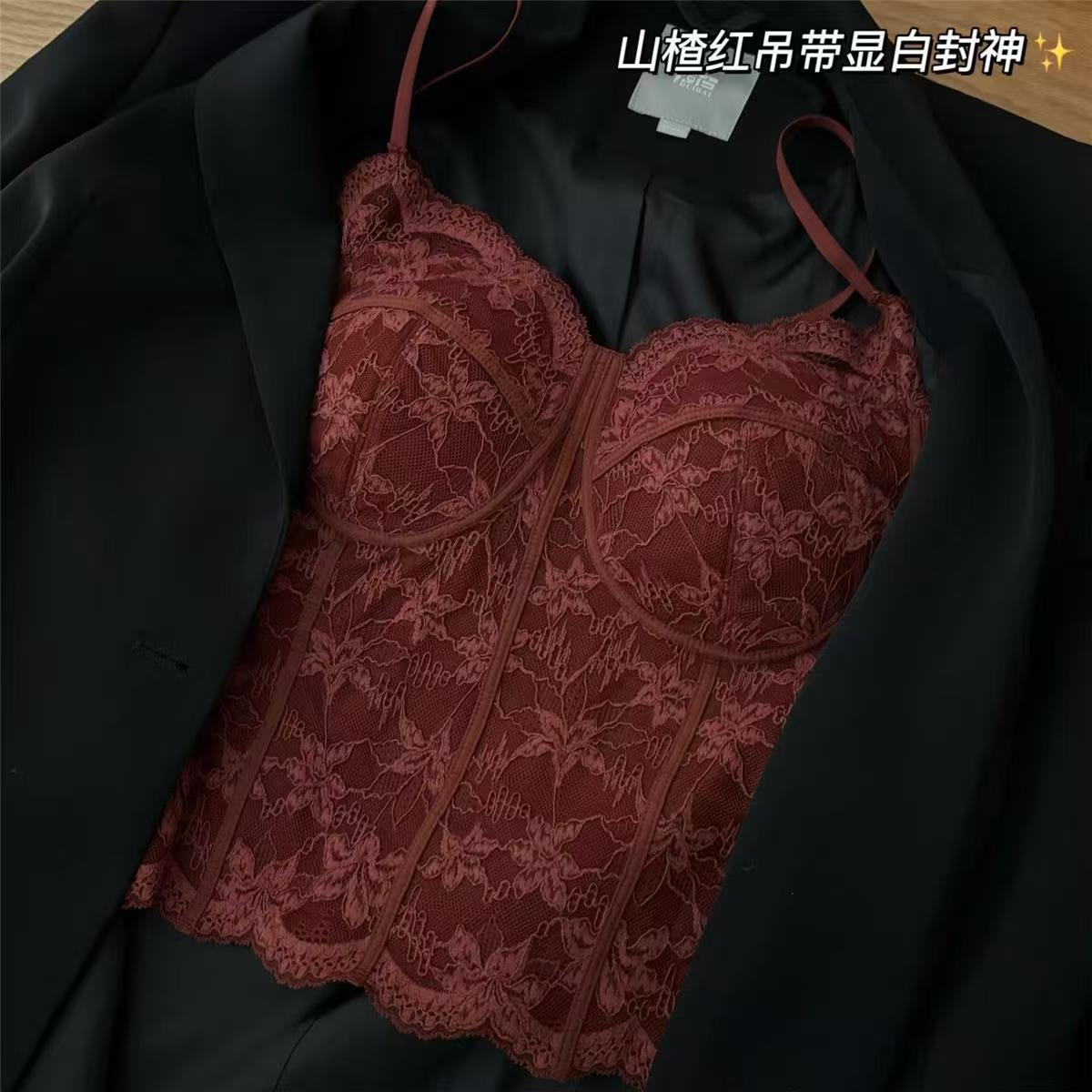 【显白封神❗️法式蕾丝背心】单穿叠穿都时髦,立体罩杯,小胸也能穿出圆润饱满,内搭可外文胸一体美背吊带内衣上衣修身QQ