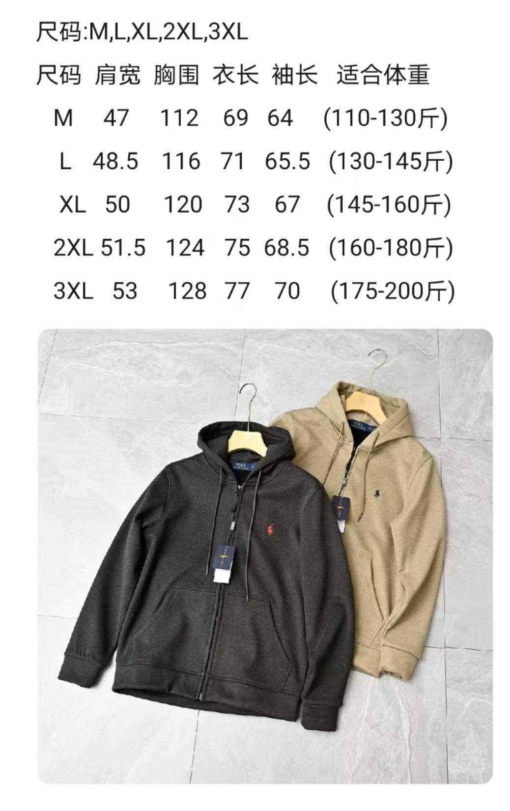 Ralph Lauren拉夫劳伦2024秋冬季新款连帽加绒加厚夹克外套拉链衫!