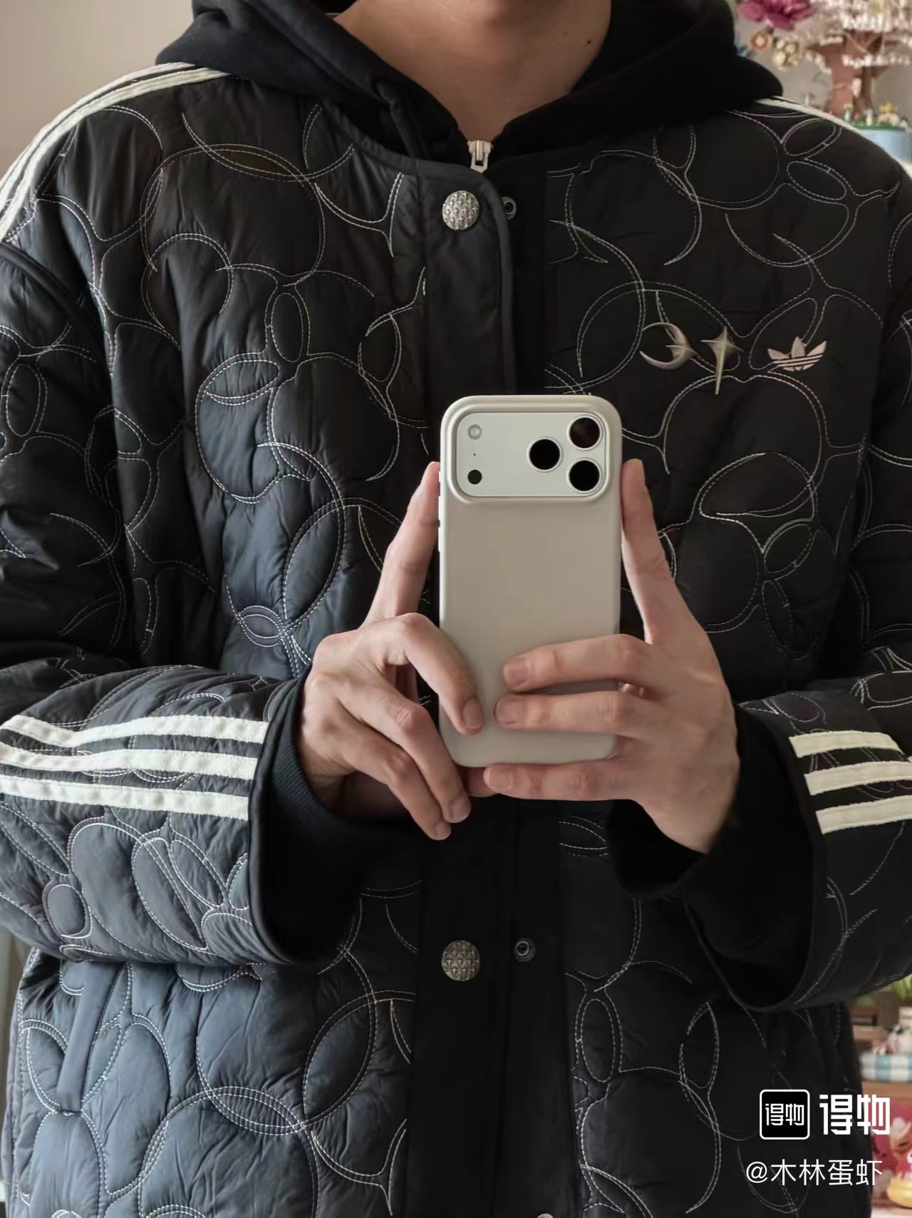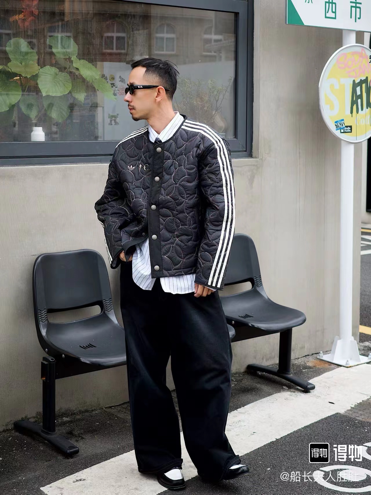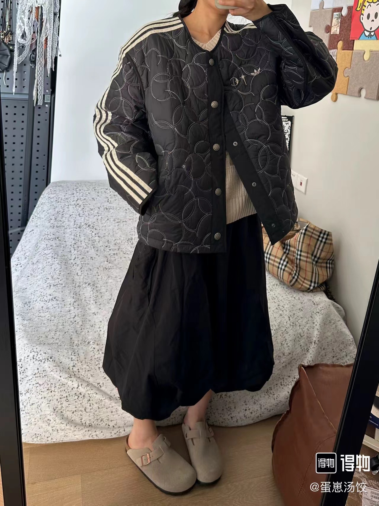 保暖运动条纹舒适棉服 男女同款叠穿单品!版型真的太喜欢啦!而且棉服就很适合现在穿啊!联名的这个金属标志好有质感!版型宽松但不会显臃肿。内衬是加绒的,秋天单穿一件完全足够。袖口的条纹和背后的logo是灵魂,这个配色日常随便搭条卫裤就很好看。保暖度在线又不像羽绒服那么厚重,最近出门遛弯总穿它。质感比想象中扎实,拉链顺滑,细节真的可以。算是近期很满意的外套拉~这次联名每件都很顶 个人感觉具实穿性和设计感的 我觉得还是这件绗缝棉服 全金属Logo和扣子很有质感