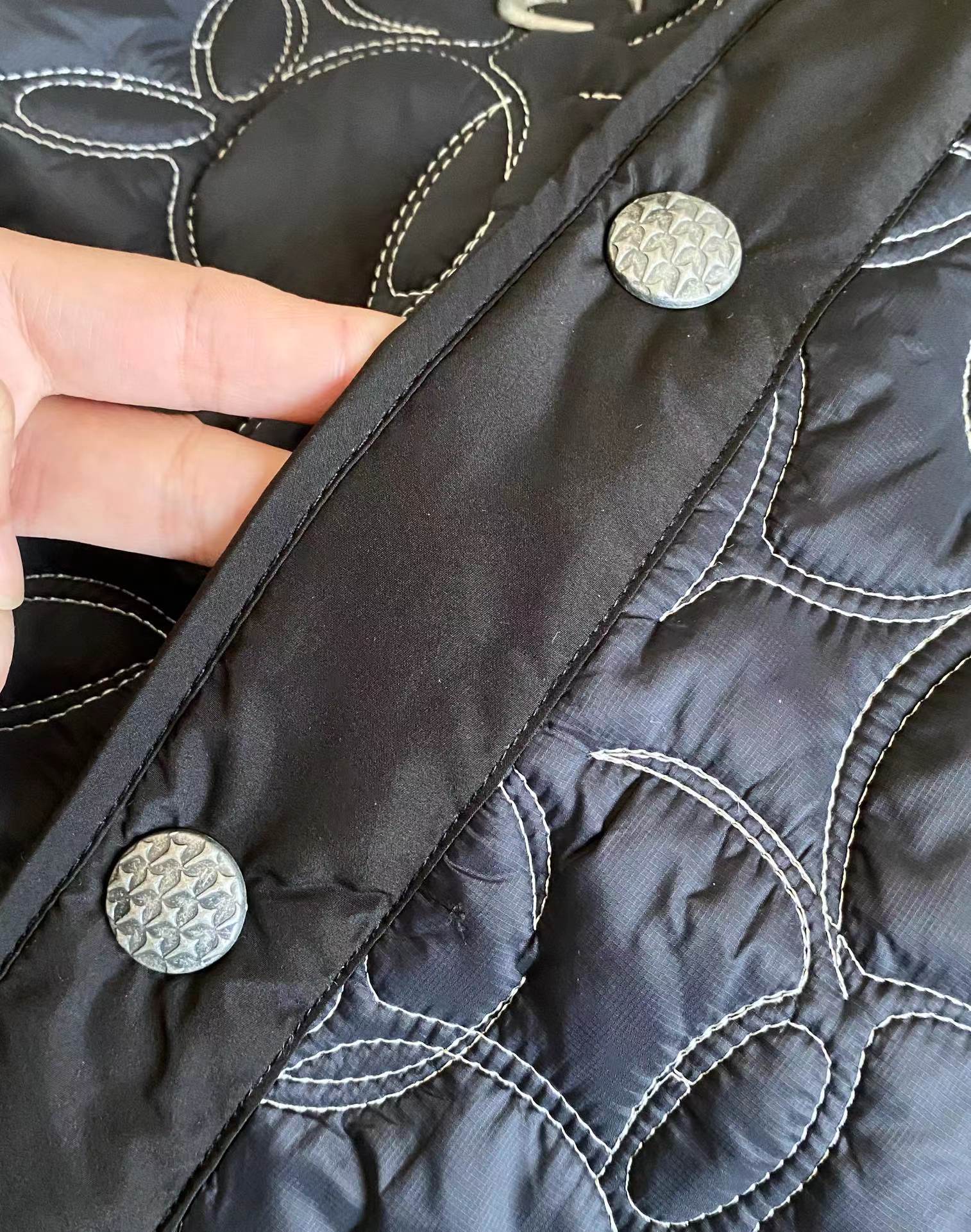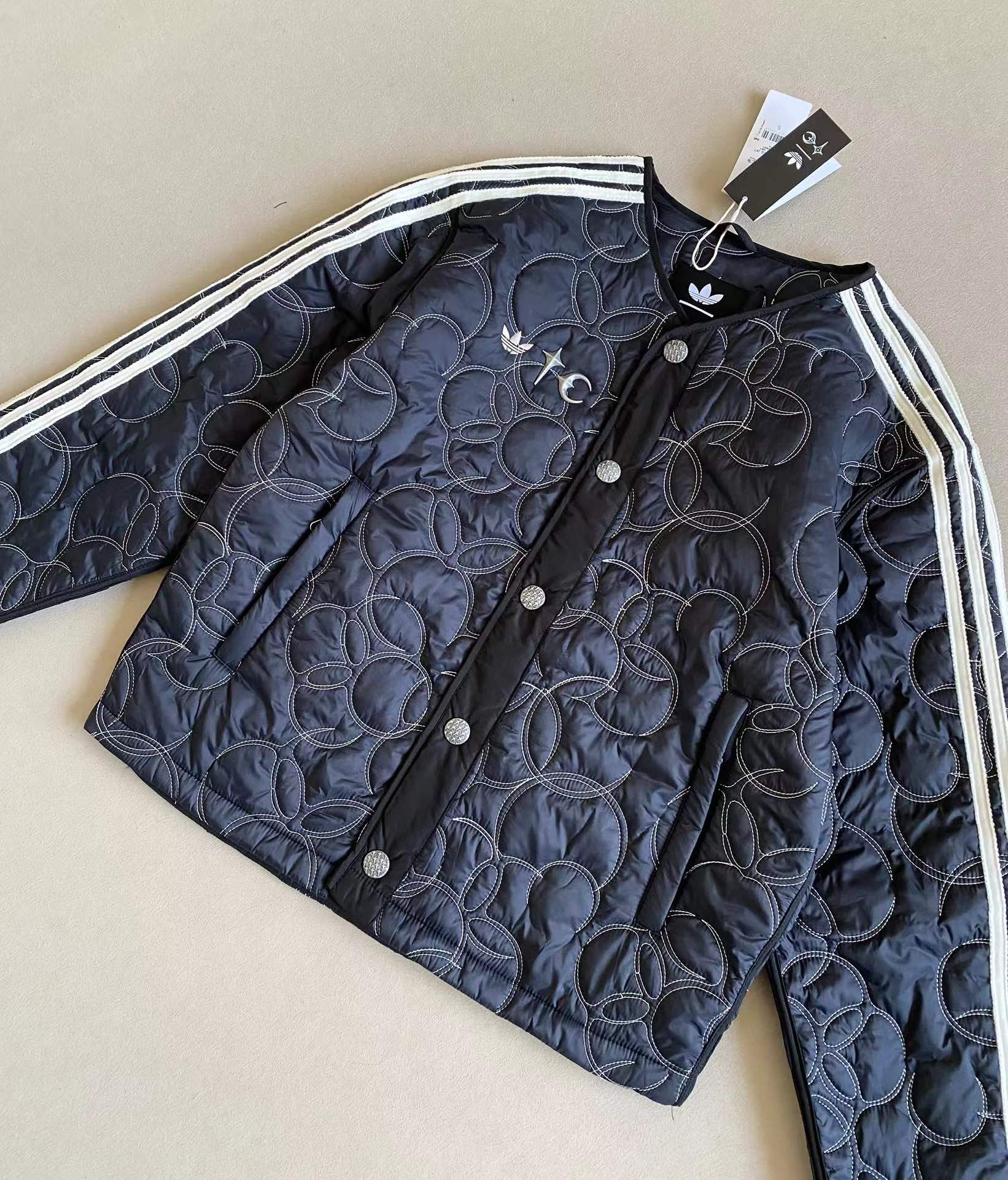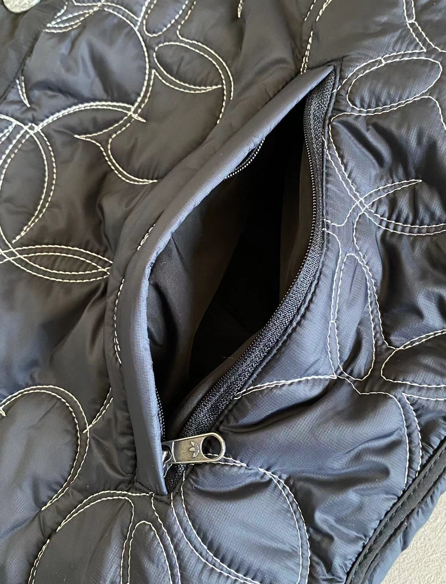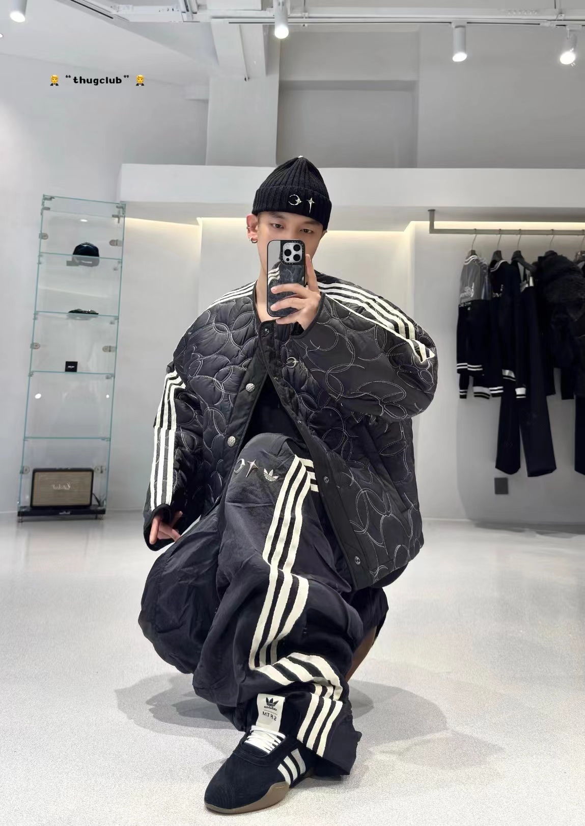 保暖运动条纹舒适棉服 男女同款叠穿单品!版型真的太喜欢啦!而且棉服就很适合现在穿啊!联名的这个金属标志好有质感!版型宽松但不会显臃肿。内衬是加绒的,秋天单穿一件完全足够。袖口的条纹和背后的logo是灵魂,这个配色日常随便搭条卫裤就很好看。保暖度在线又不像羽绒服那么厚重,最近出门遛弯总穿它。质感比想象中扎实,拉链顺滑,细节真的可以。算是近期很满意的外套拉~这次联名每件都很顶 个人感觉具实穿性和设计感的 我觉得还是这件绗缝棉服 全金属Logo和扣子很有质感