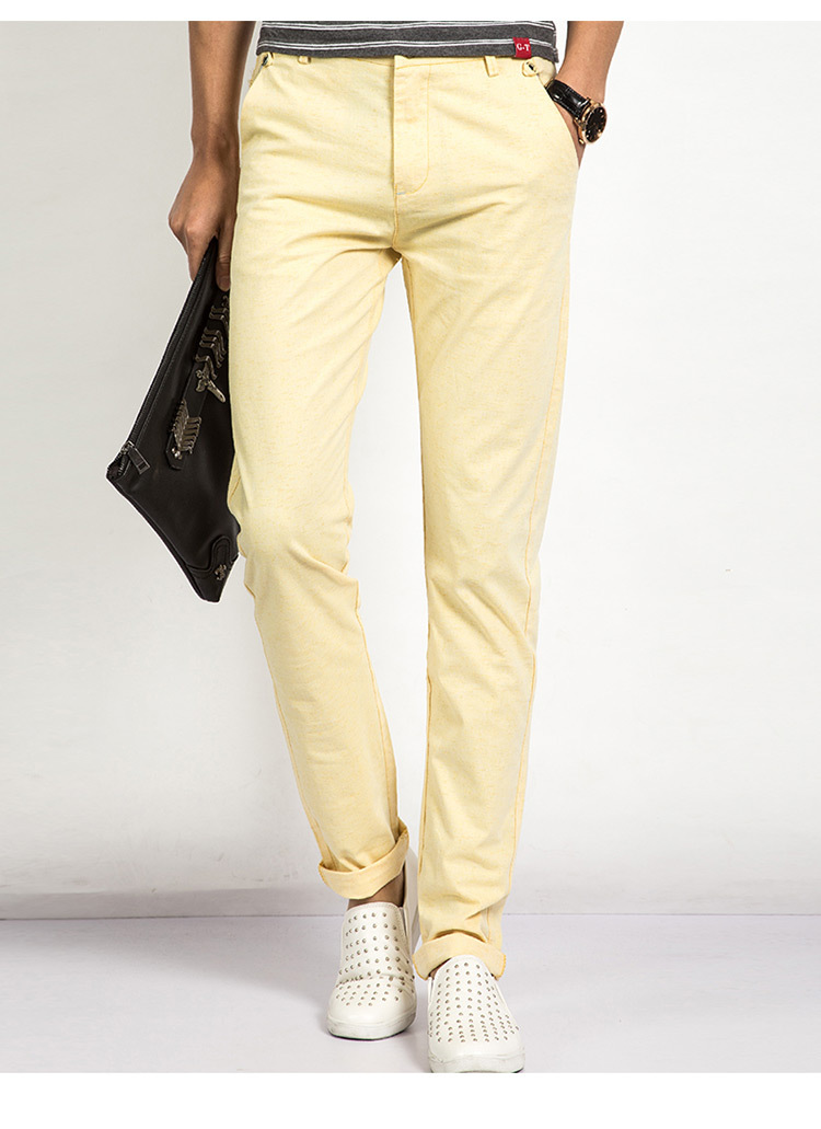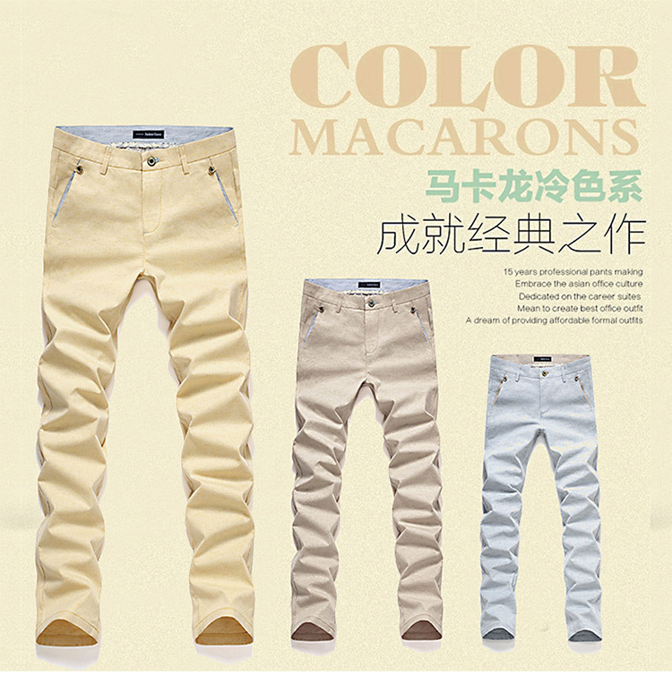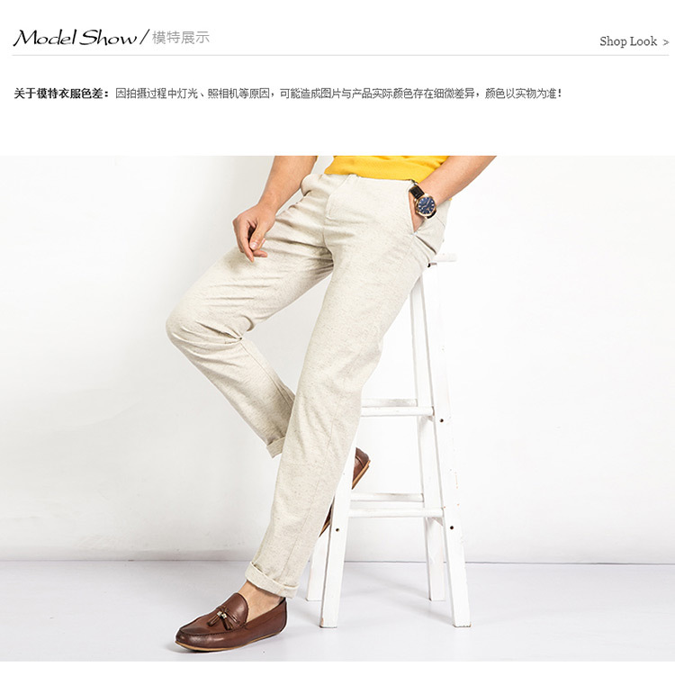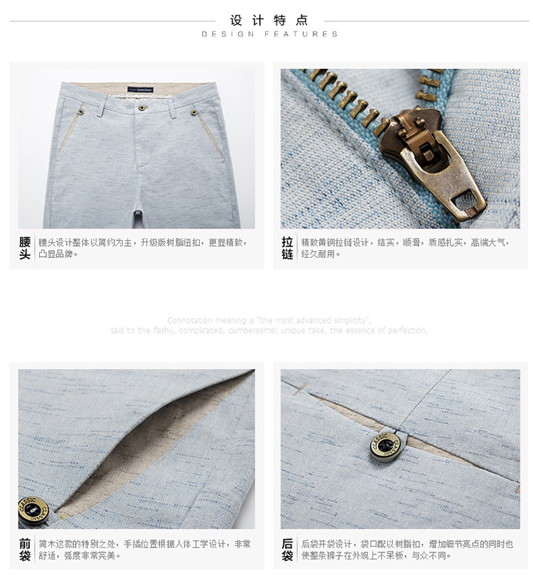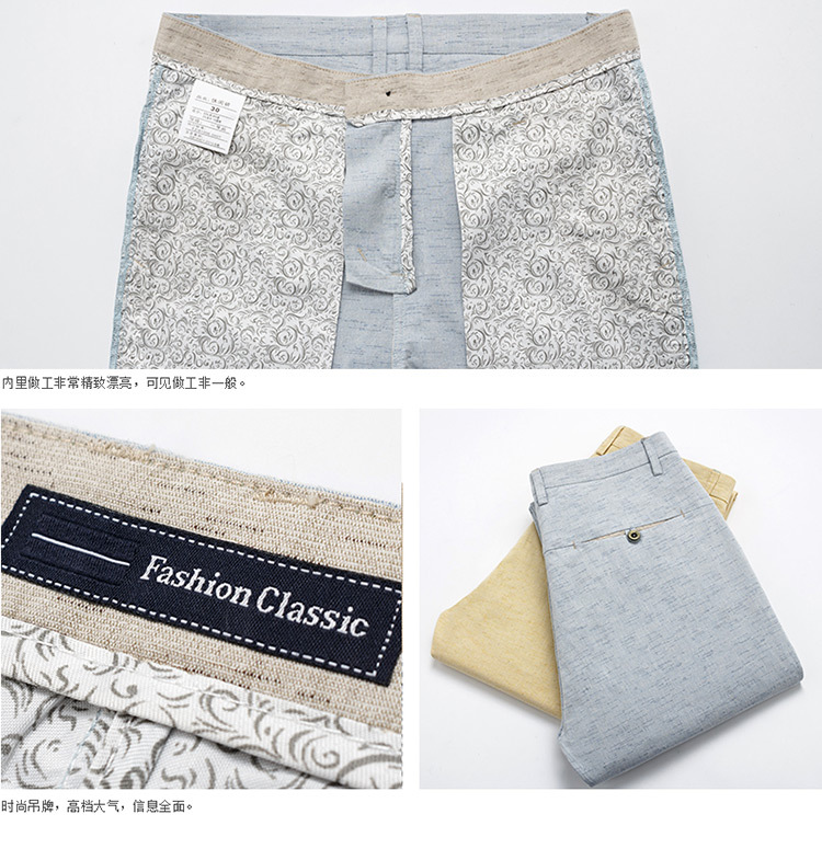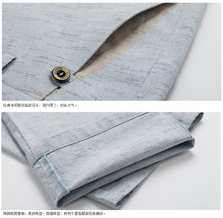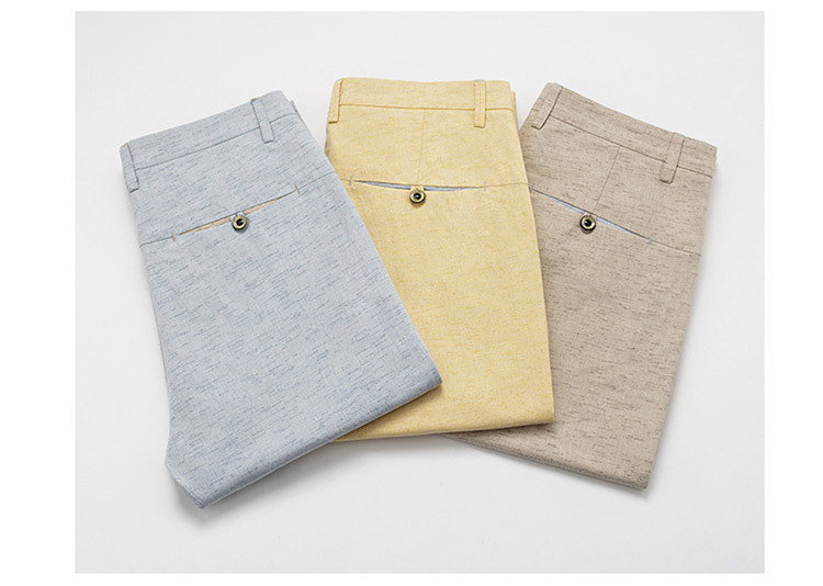 【男士休闲裤】春夏薄款商务休闲裤男士大码弹力修身中腰直筒亚麻裤青年麻棉长裤