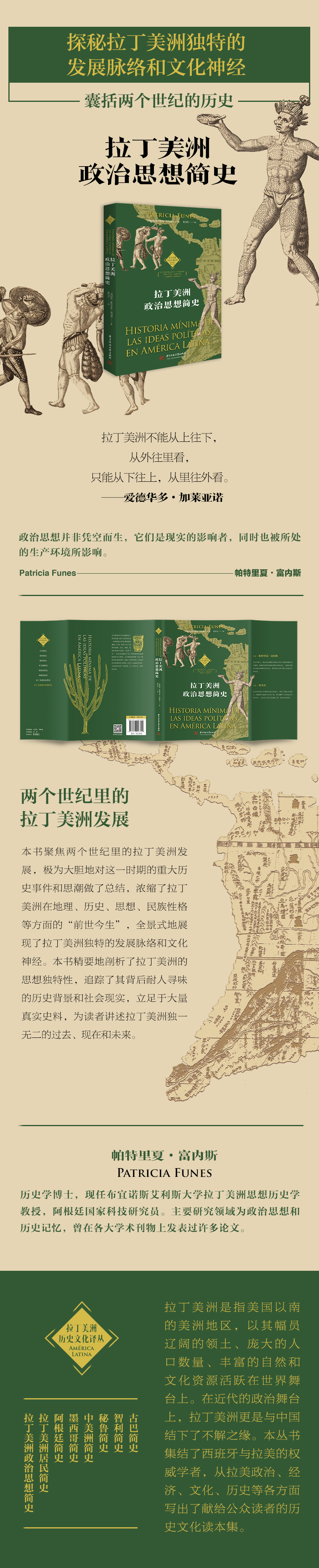 帕特里夏·富内斯,历史学博士,现任布宜诺斯艾利斯大学拉丁美洲思想历史学教授,阿根廷国家科技研究委员会研究员。主要研究领域为政治思想和历史记忆,曾在各大学术刊物上发表过许多论文。