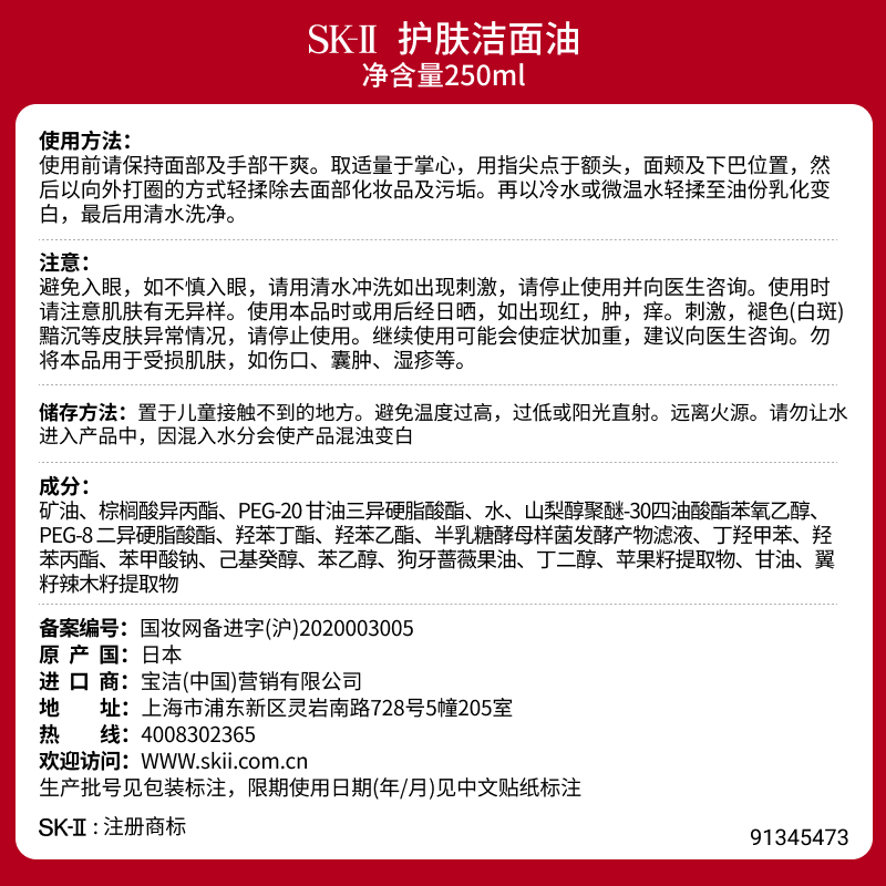【1F】SK-II护肤洁面油250ml