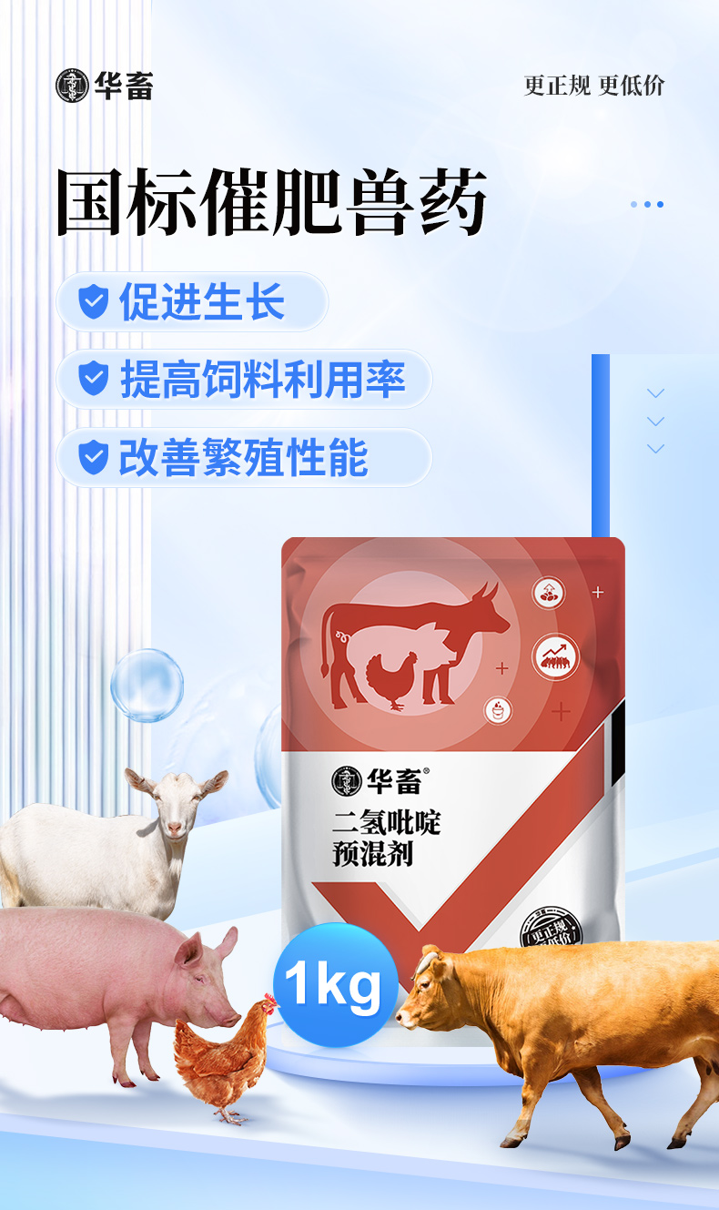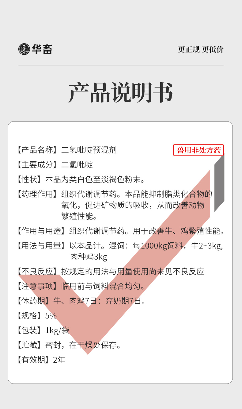 【社群专享】国标兽药5%二氢吡啶预混剂1kg促生长提高饲料利用率