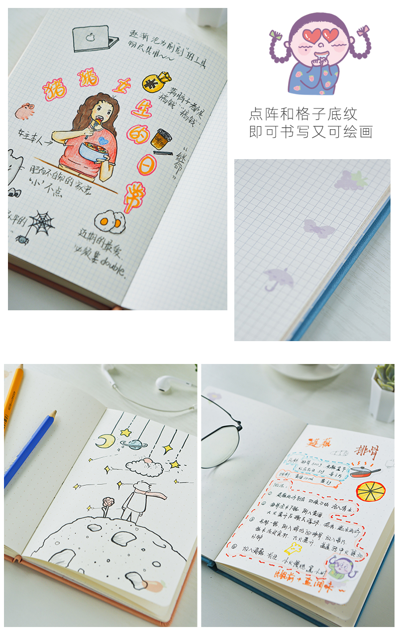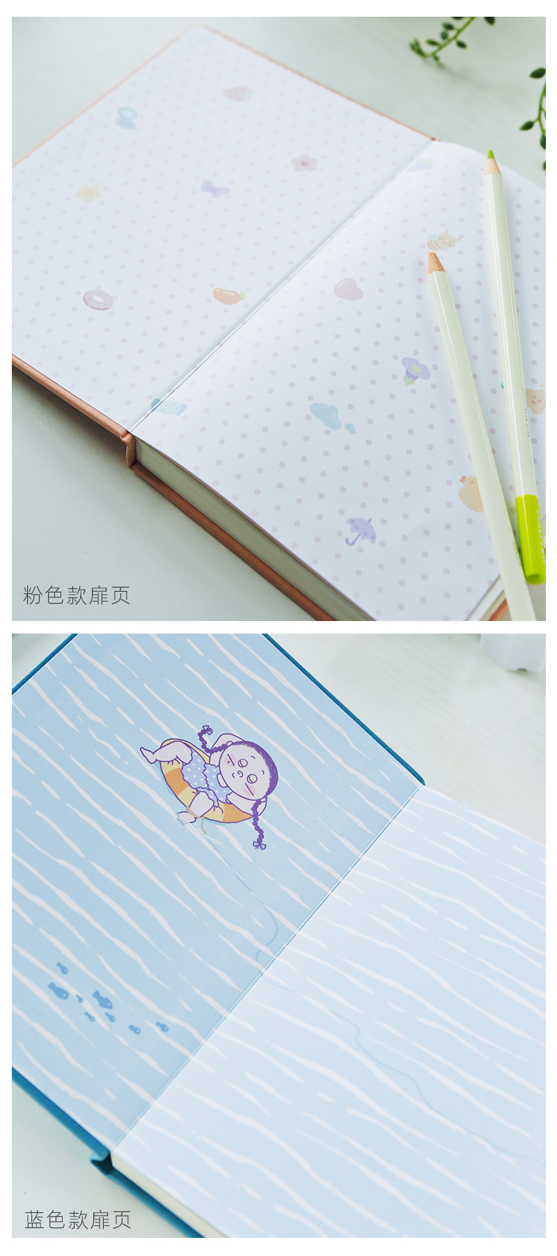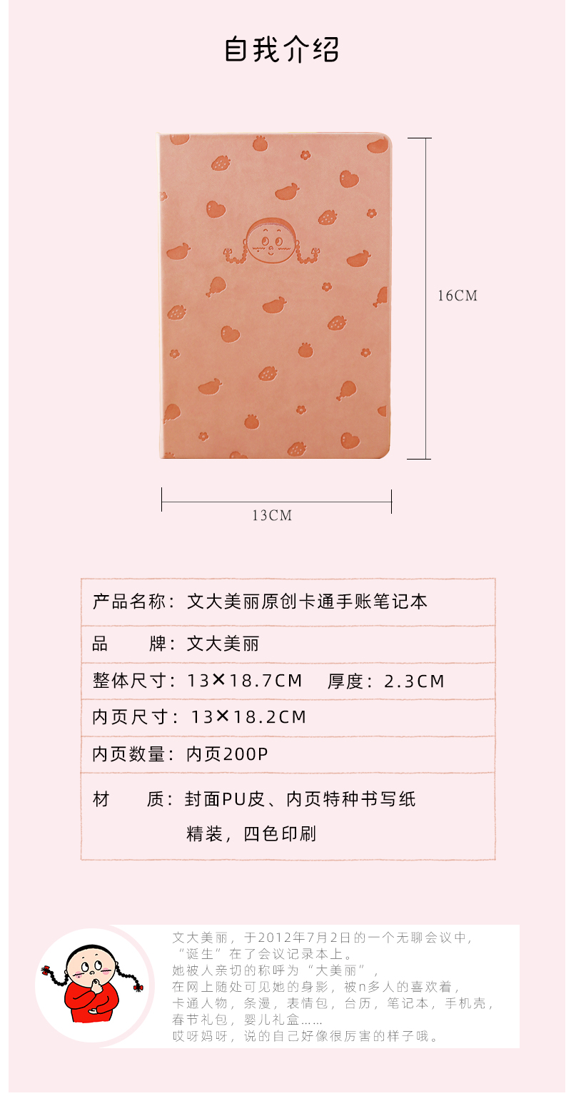 【文大美丽】文大美丽原创卡通手账笔记本 卡通童趣 仿皮封面 触感柔软 防水耐脏 粉色 蓝色