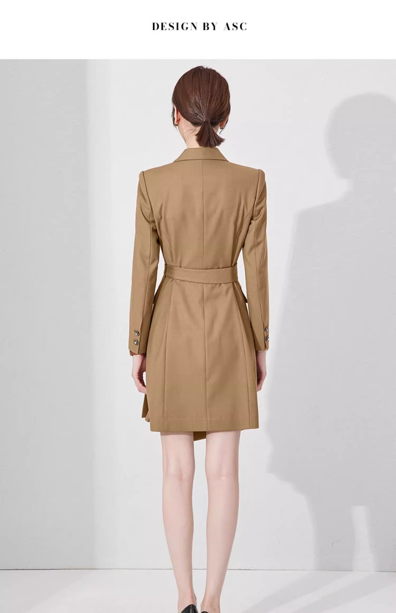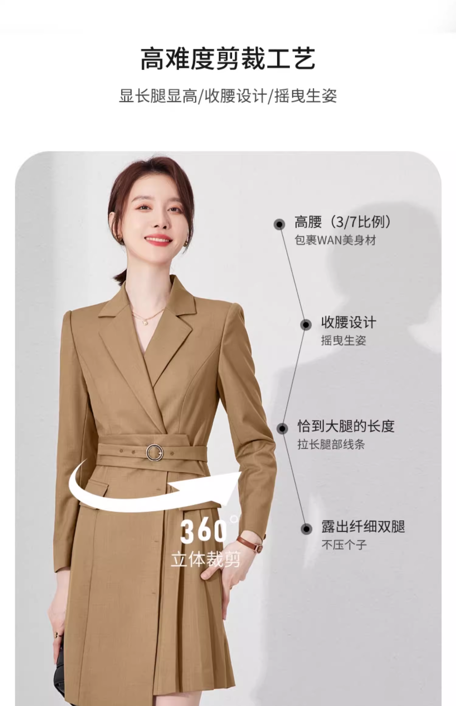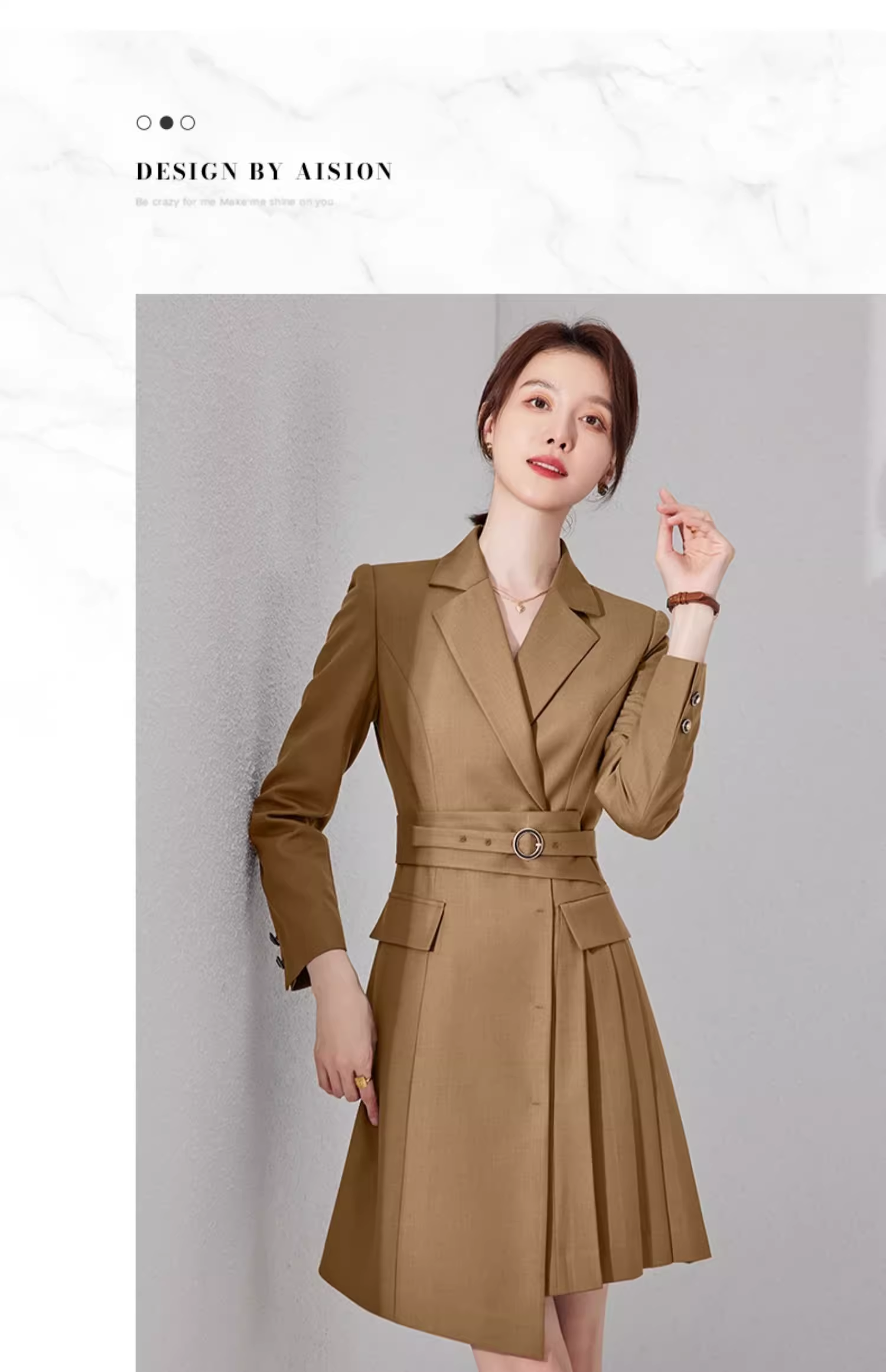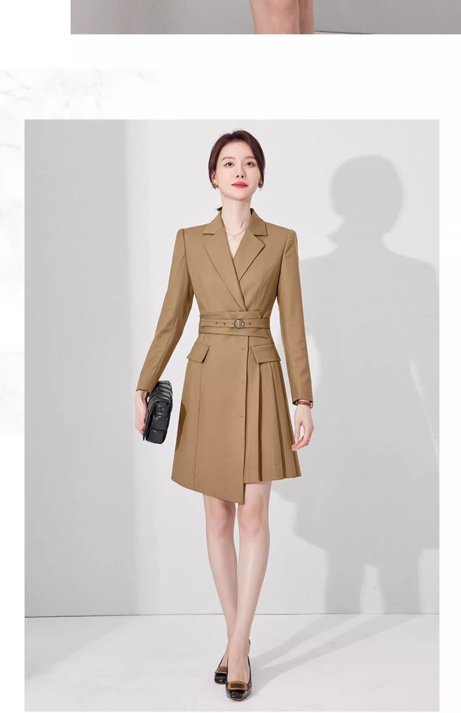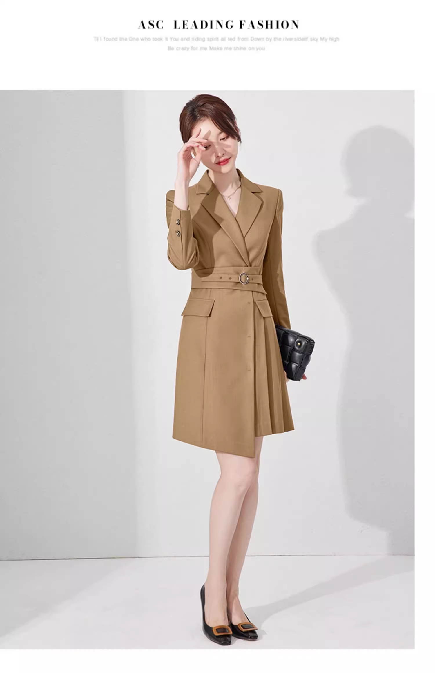 艾尚臣卡其色秋季长袖西装连衣裙时尚收腰女装高级感职场工作裙子