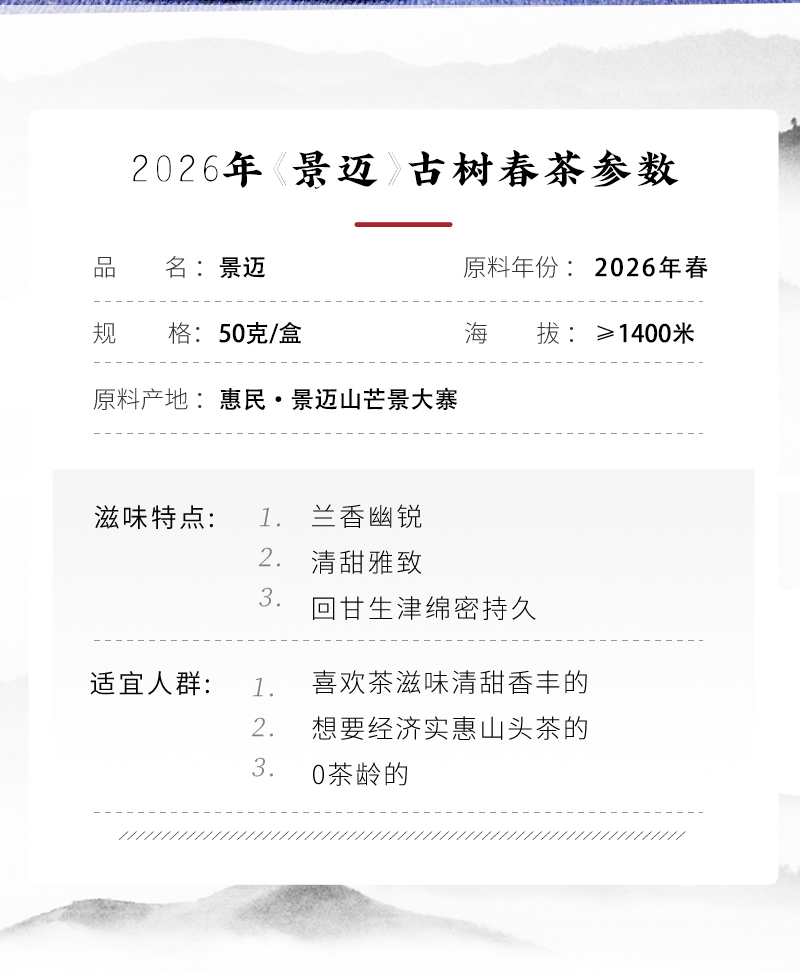 【8折】2026《景迈》古树春茶 生茶散茶 50克*1盒