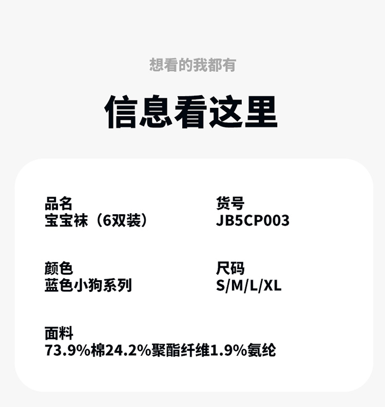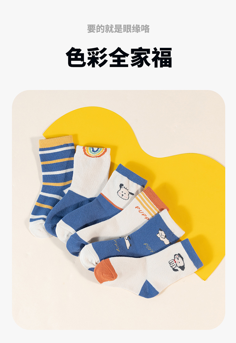 贝贝怡童袜儿童卡通宝宝袜男童四季款软糯舒弹棉袜(6双装)JB5CP003