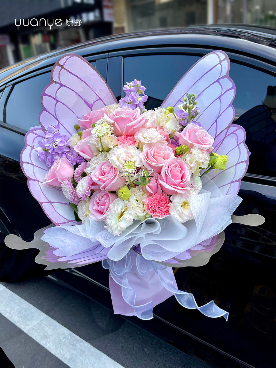 【创意蝴蝶精灵】粉玫瑰混搭网红花束