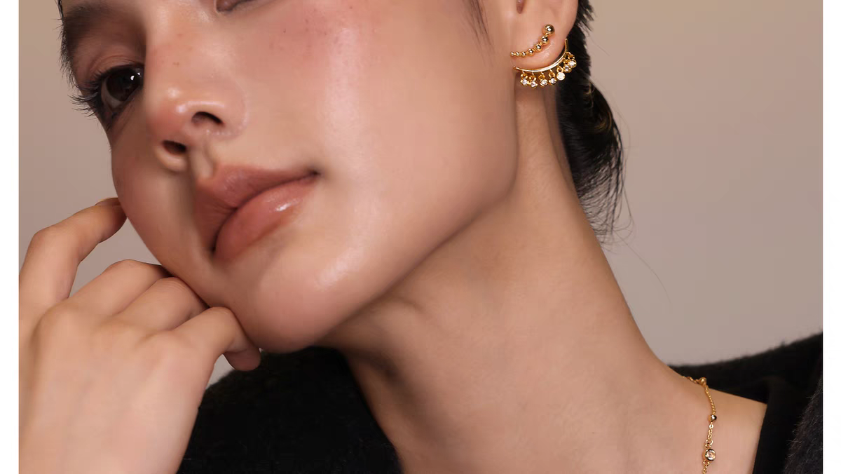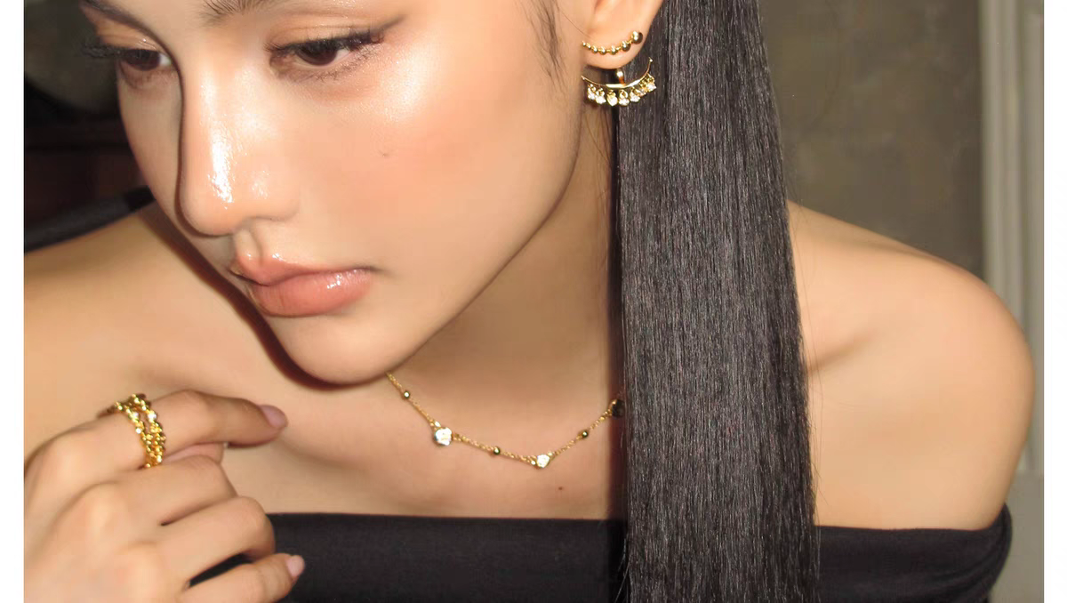 镀金工艺固色不掉色,耳针部分脱敏抗炎。多种戴法。