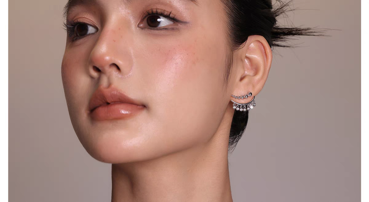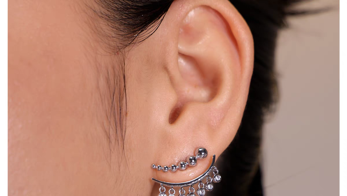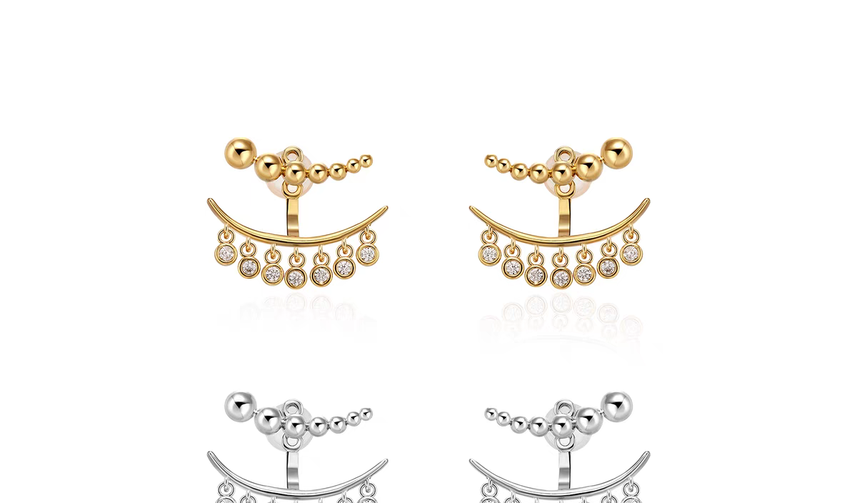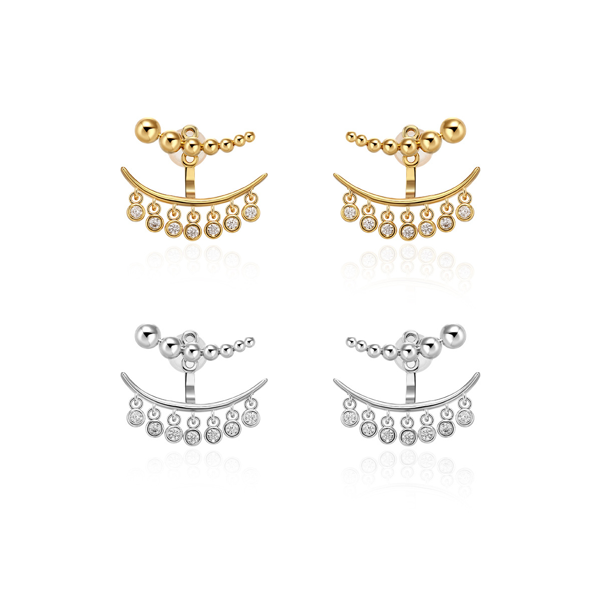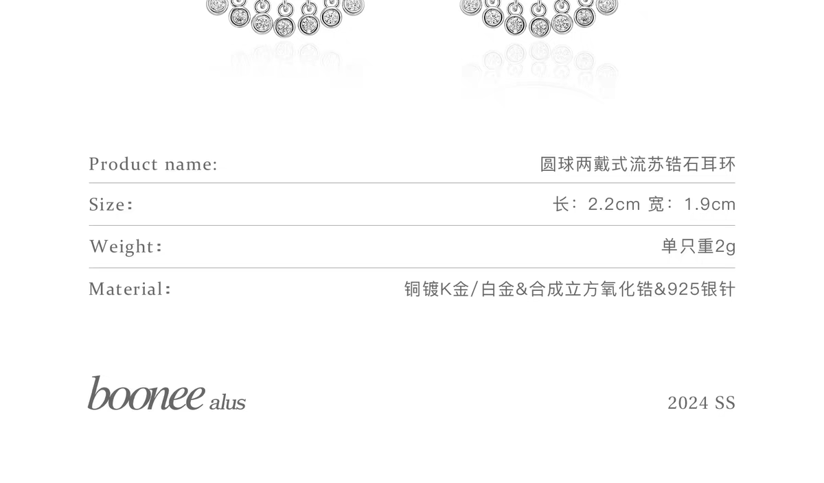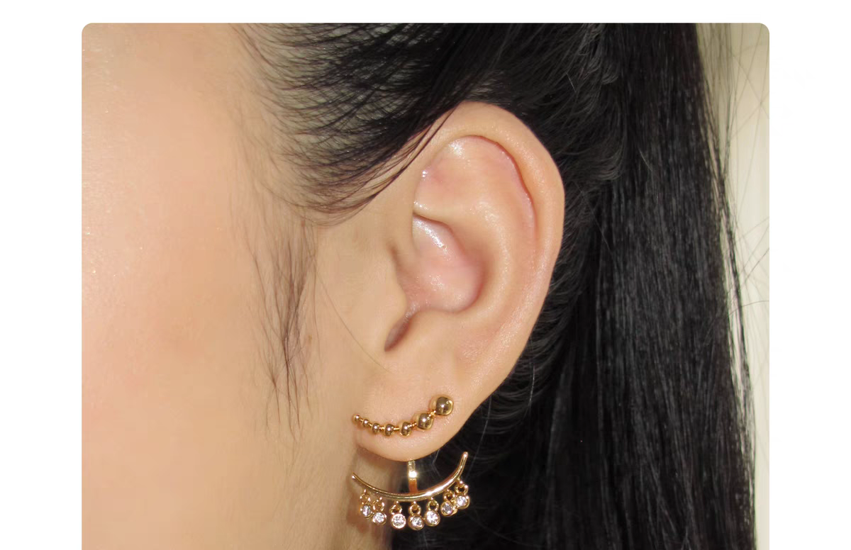 小众原单渐变金球金属拼接两戴式流苏锆石耳环