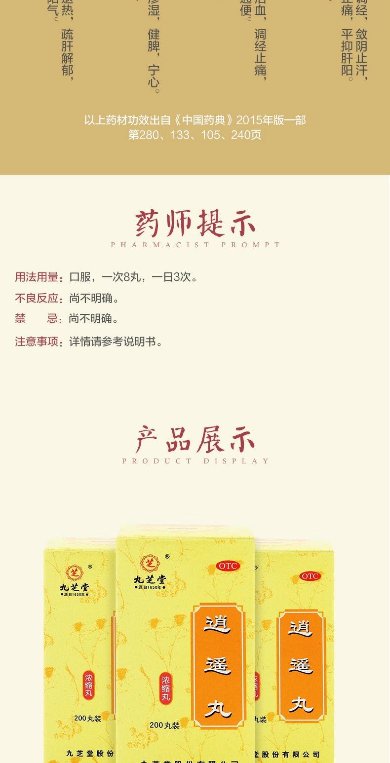 九芝堂逍遥丸200丸浓缩丸疏肝养血月经不调胸胁胀痛调经痛经药