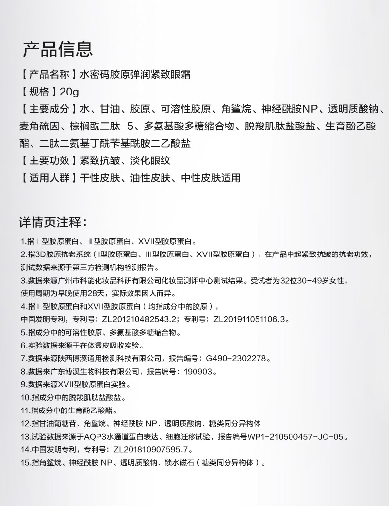 【内购秒杀】胶原弹润-20g水密码胶原弹润紧致眼霜