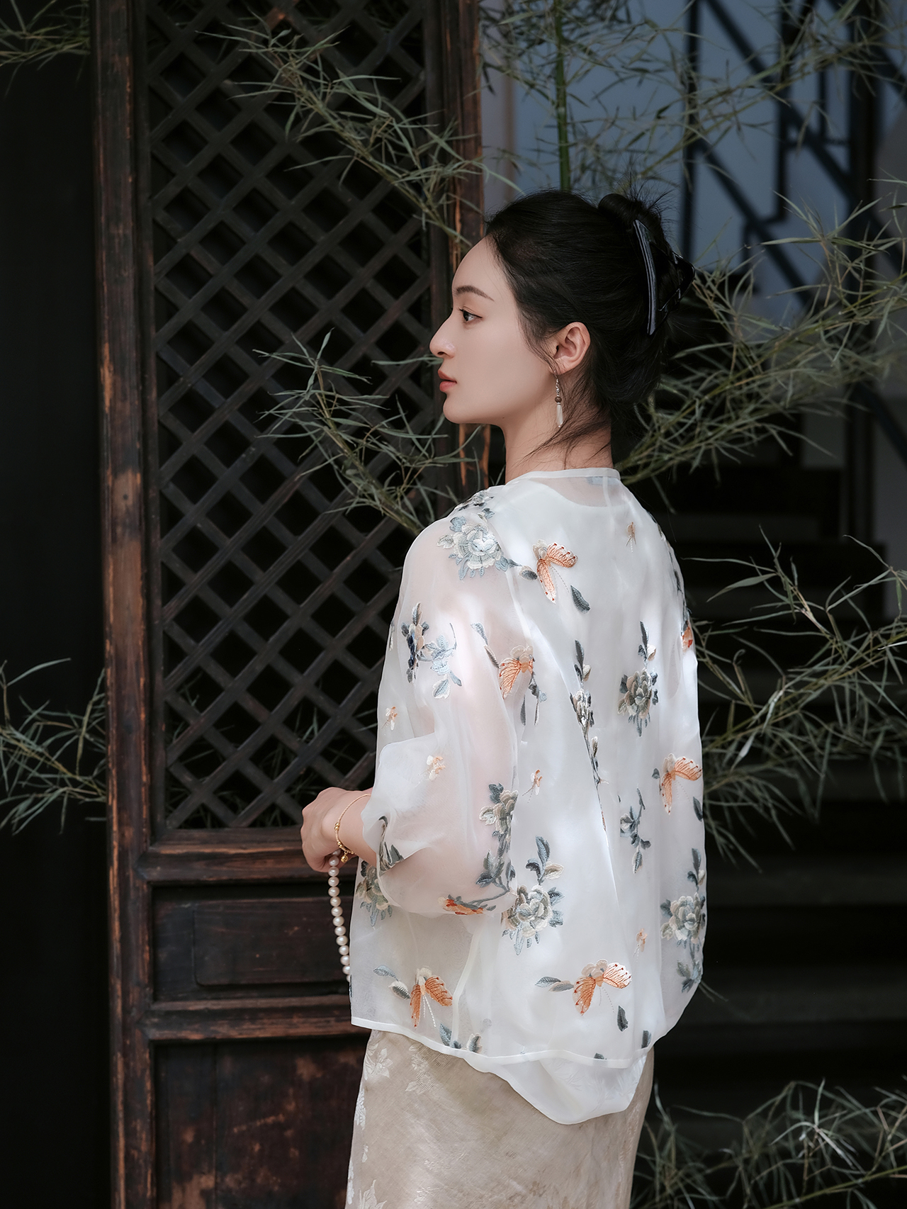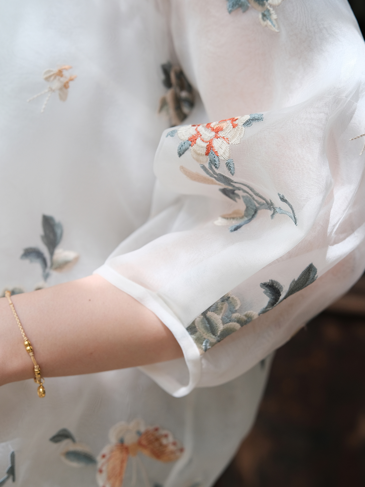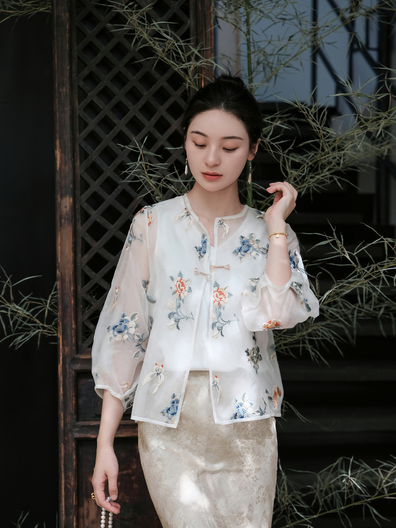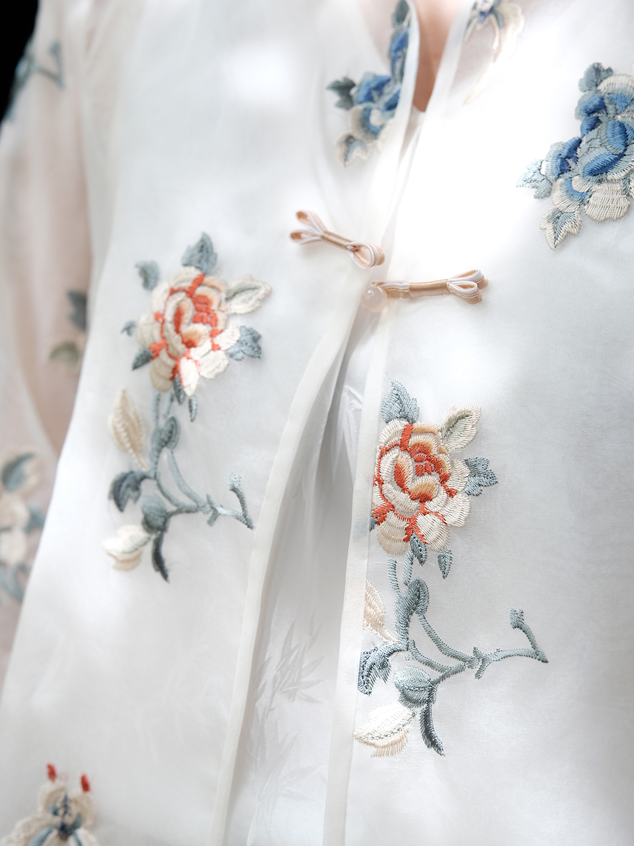 盛唐牡丹 |欧根缎手推绣一字扣外套
