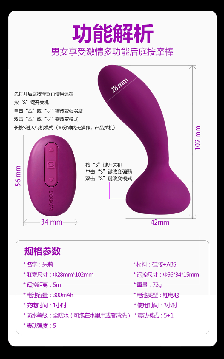svakom司沃康 前列腺后庭按摩器男女用品肛门塞GAY性自慰抠震无射高潮神器
