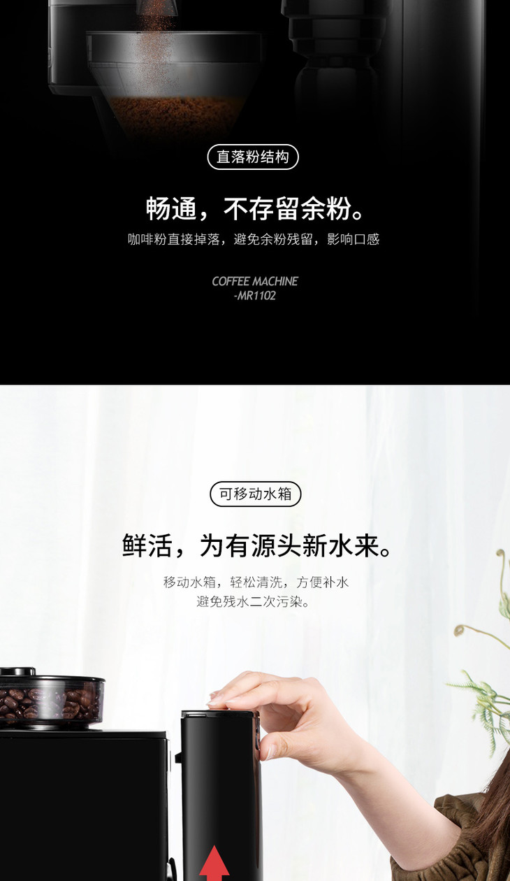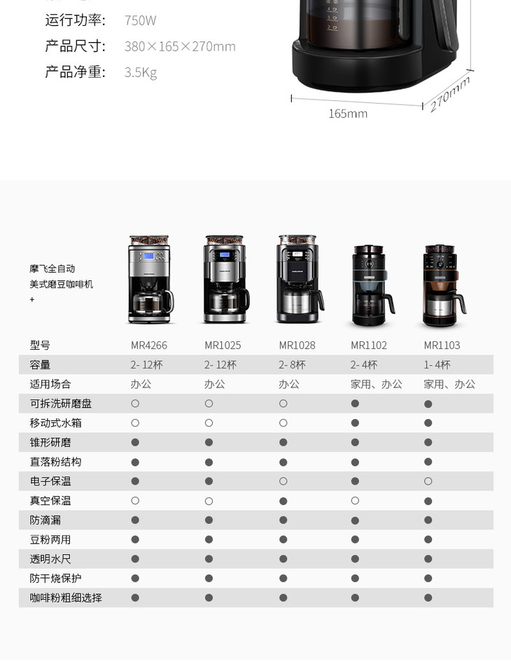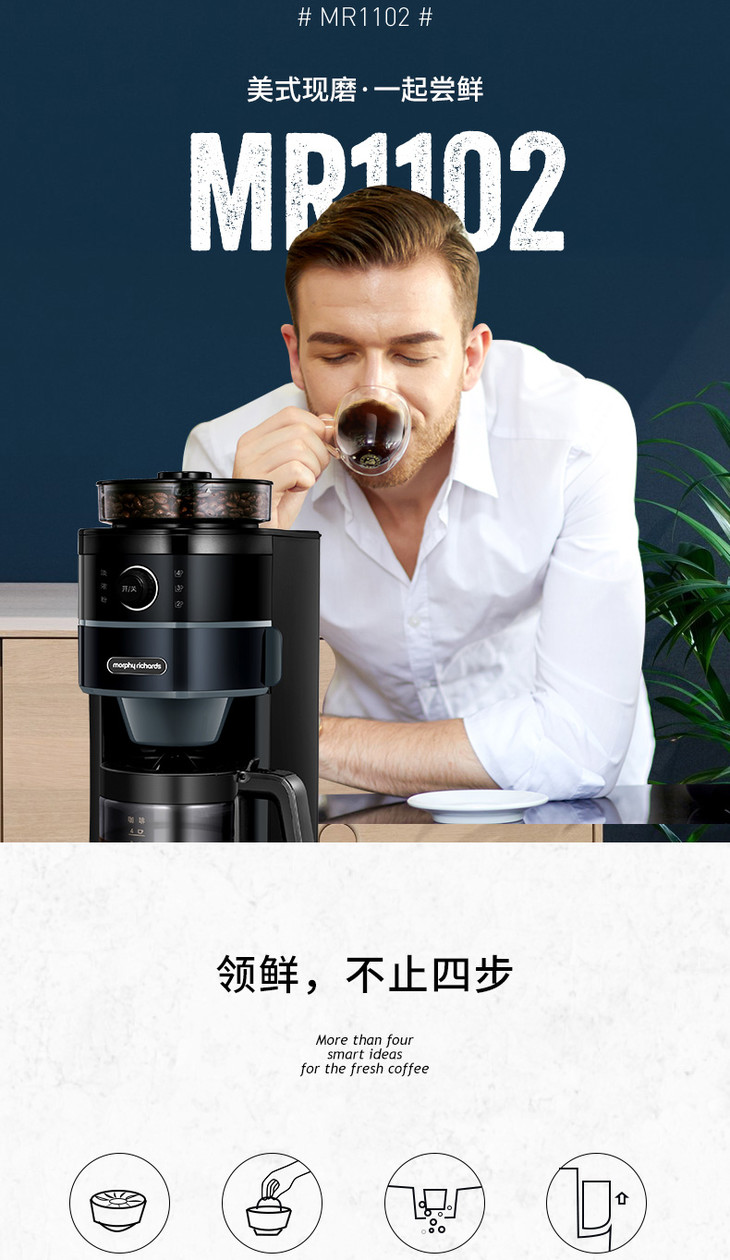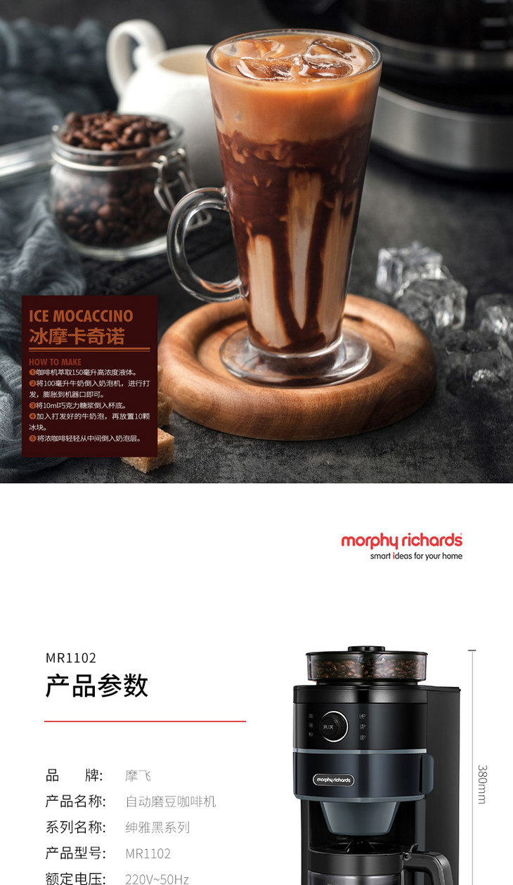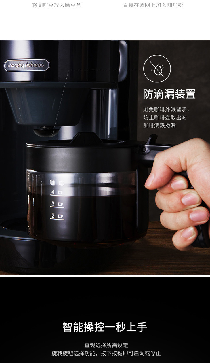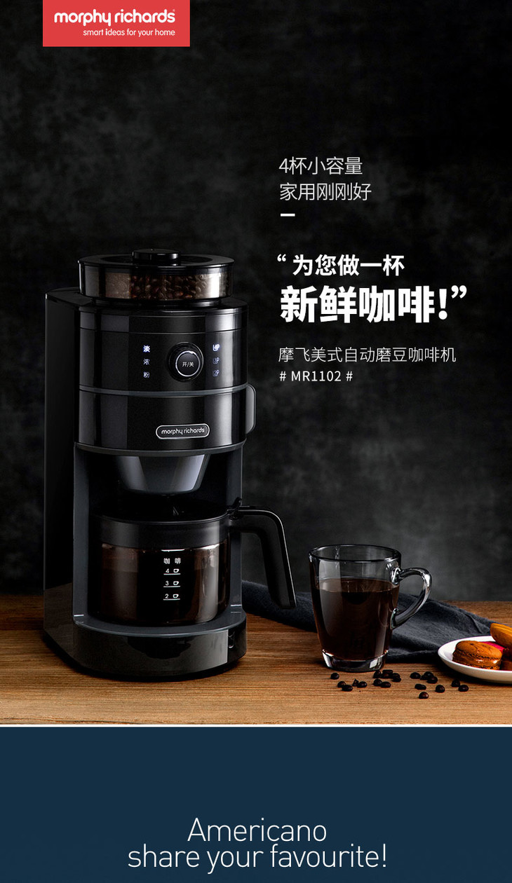 *英国摩飞 MR1102摩飞咖啡机家用全自动磨豆现磨现煮美式煮咖啡壶