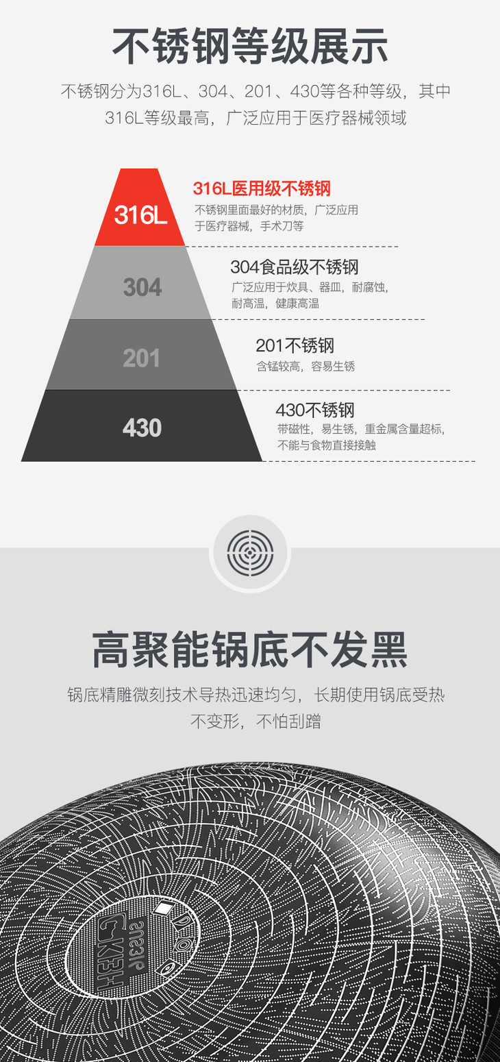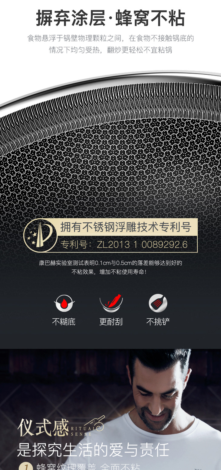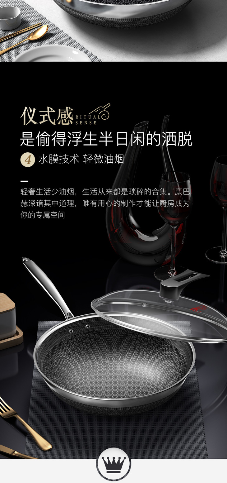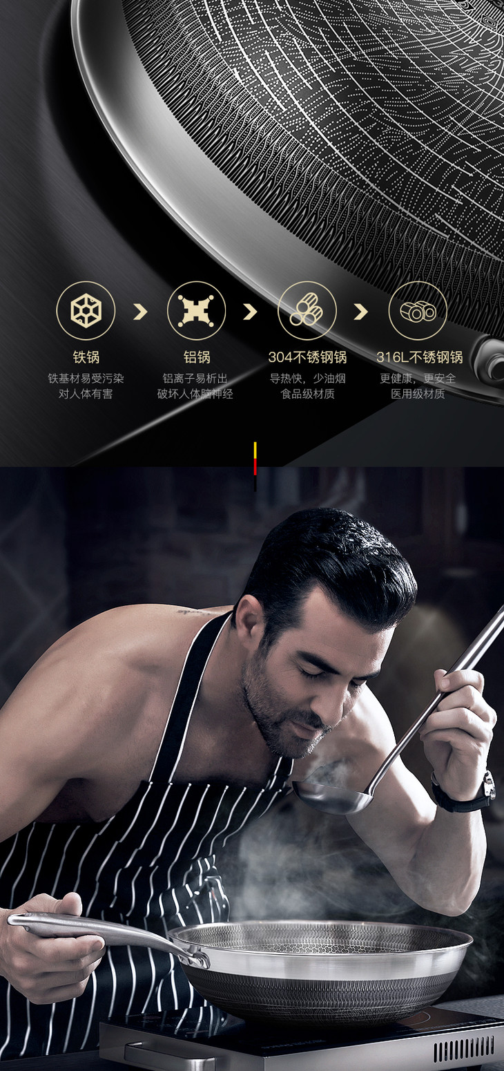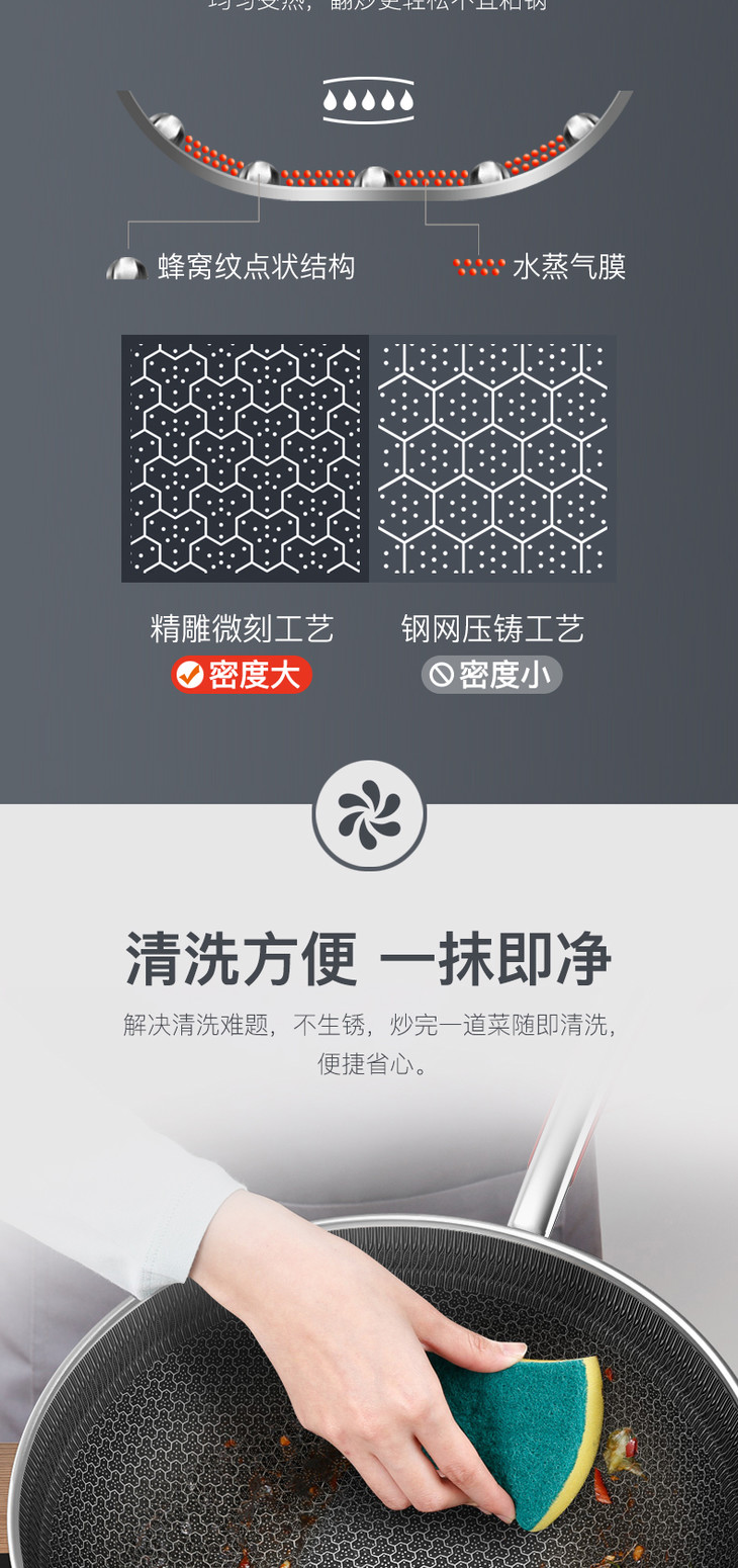 【包邮直发】康巴赫 CHC32A3第三代炒锅316L不锈钢炒锅少油烟不粘锅家用电磁炉燃气灶通用32cm