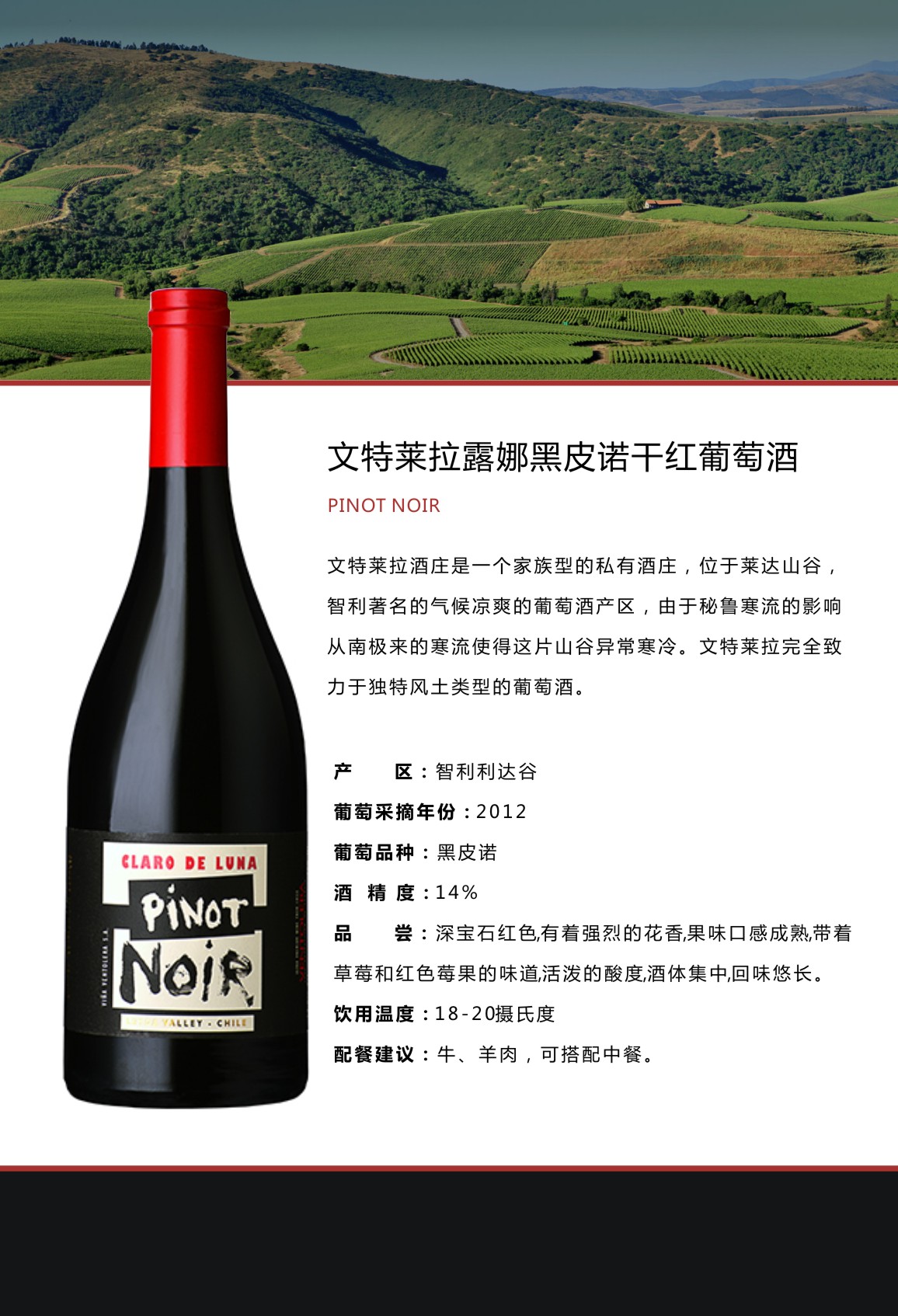 文特莱拉露娜黑皮诺干红葡萄酒