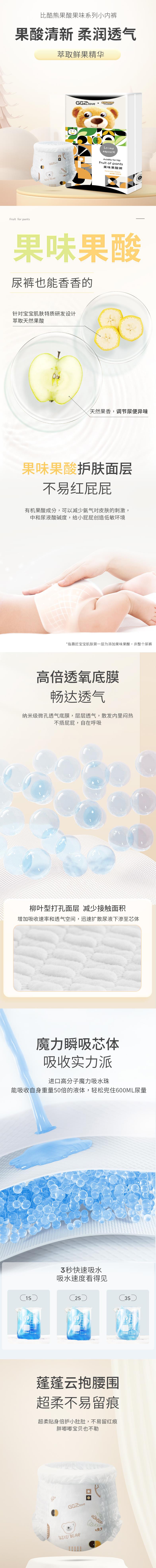 (直播)比酷熊果味果酸裤型婴儿纸尿裤新品拉拉裤清香透气2包+1元再送1包