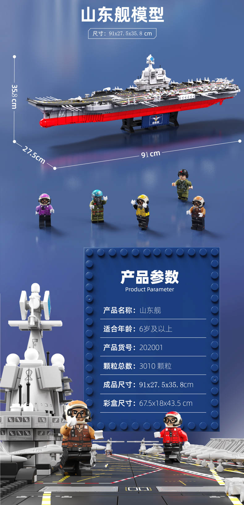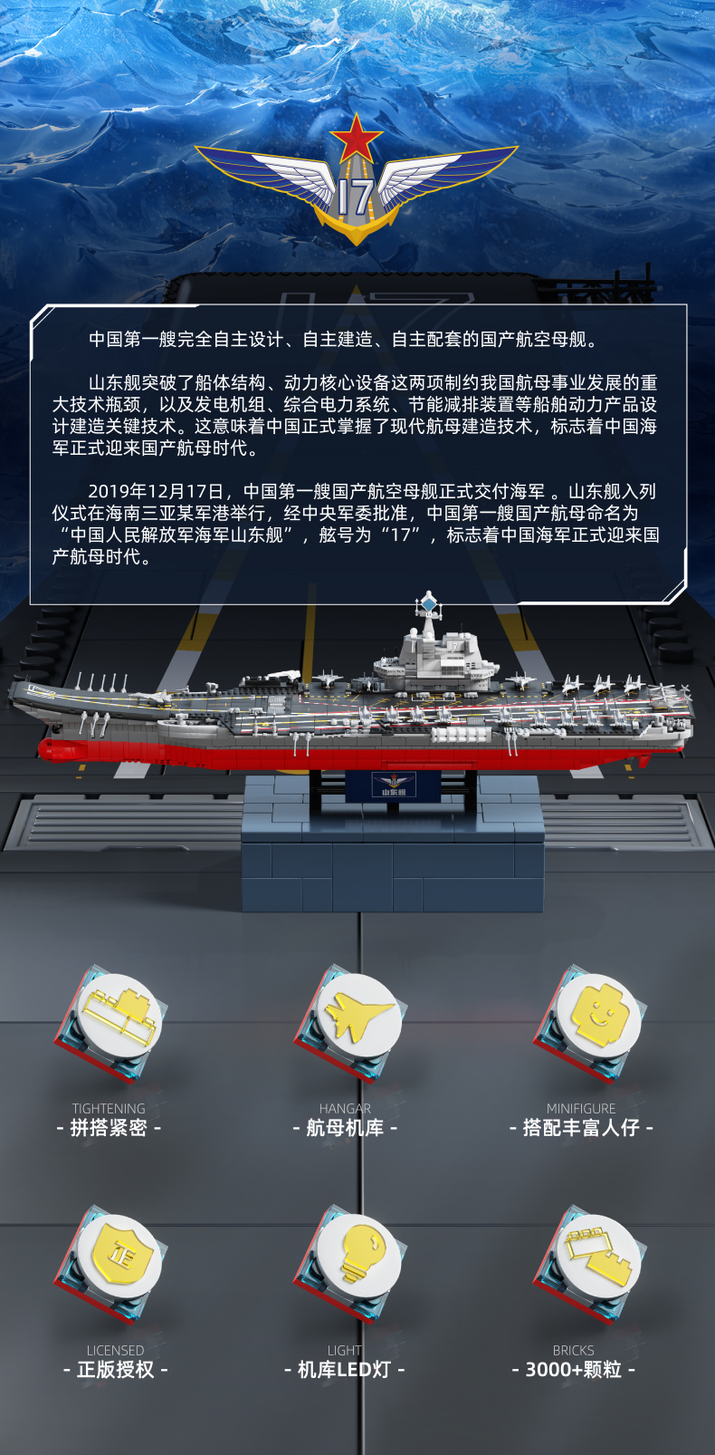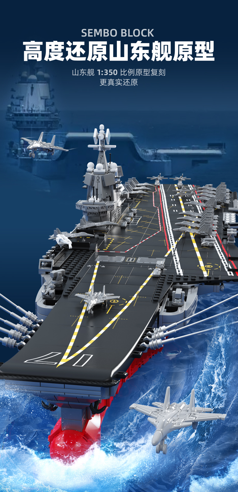 森宝积木山东舰正版授权航母军舰男孩拼装玩具积木模型航空母舰