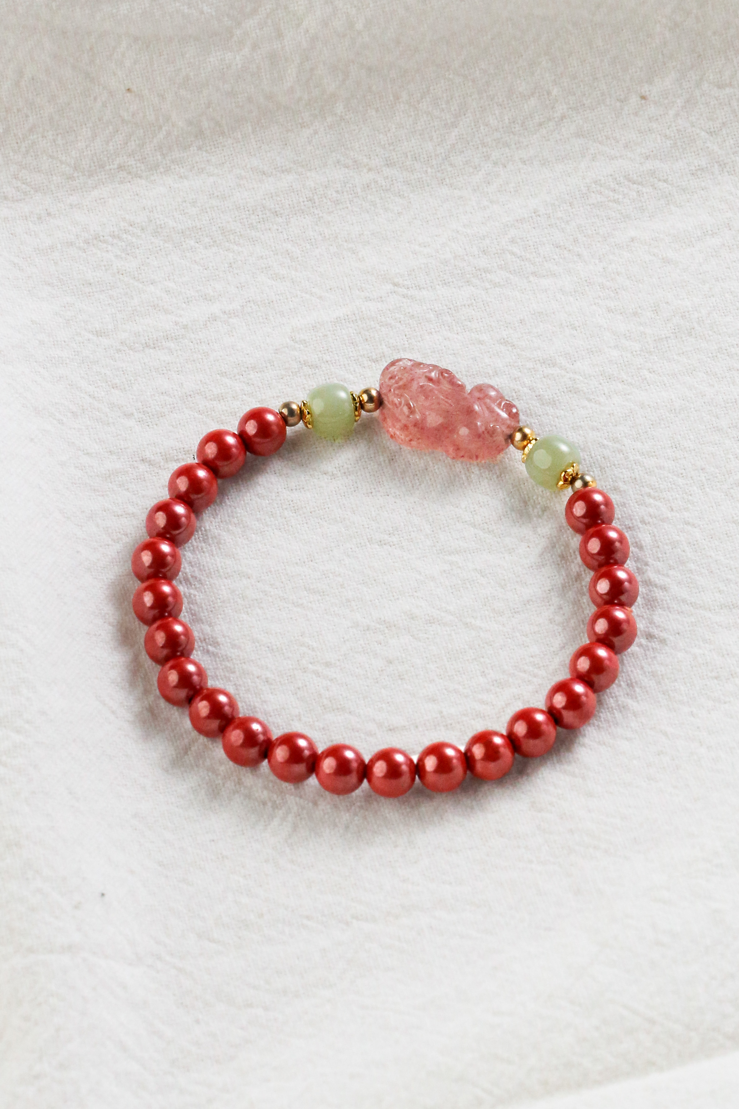 名称:“招财守福”帝王红朱砂配草莓晶貔貅和田玉手链