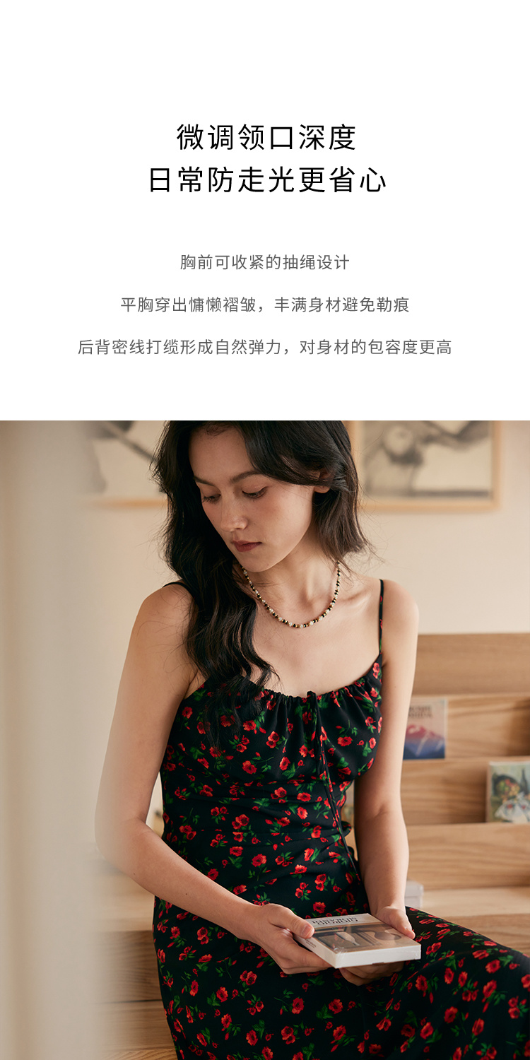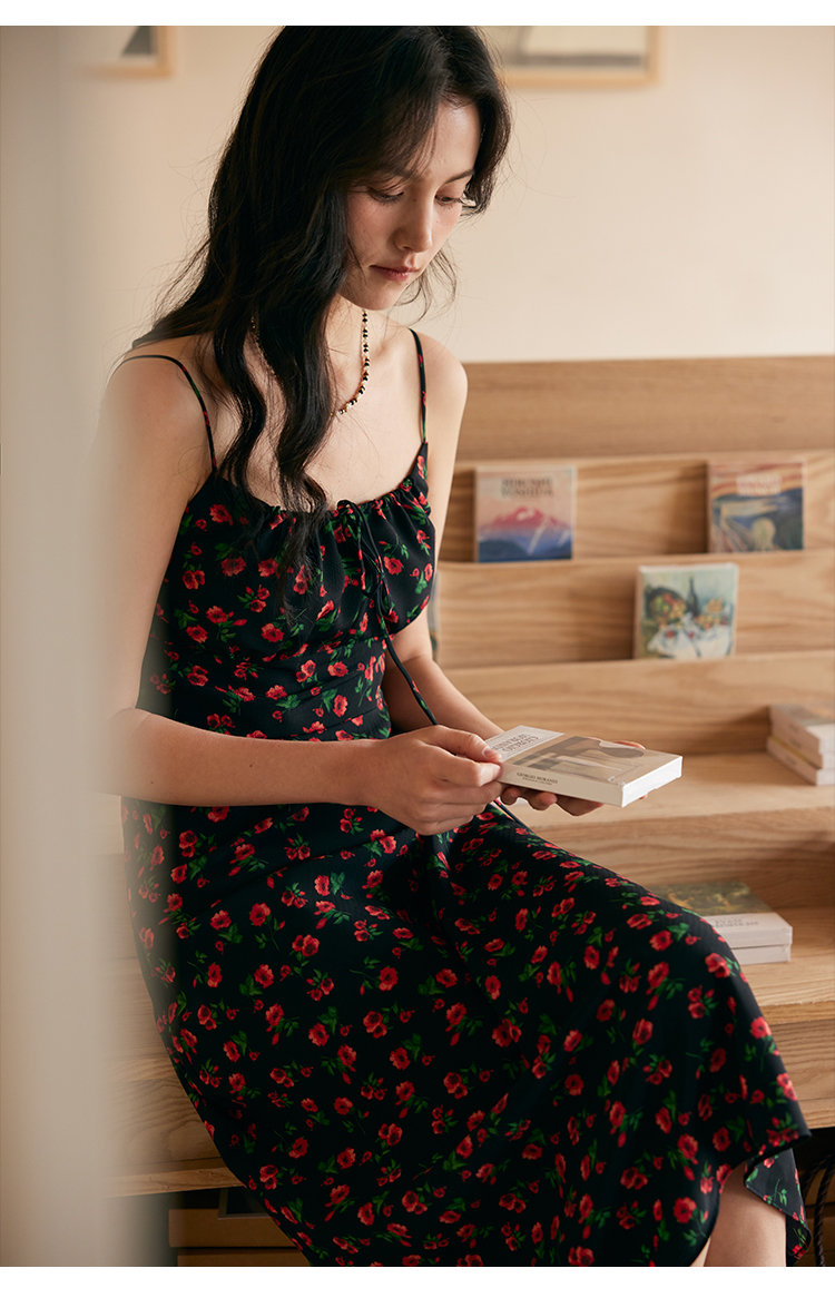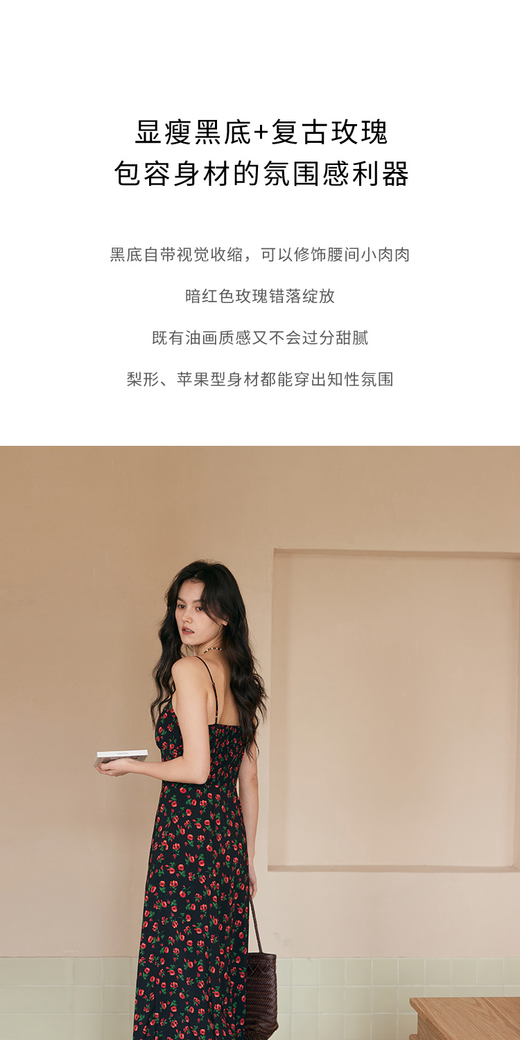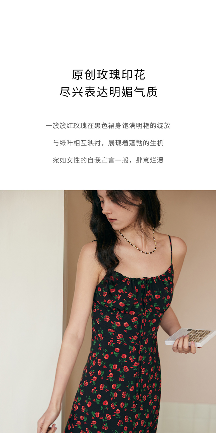 HeyDress原创玫瑰吊带连衣裙女夏季法式收腰浪漫海边度假印花裙子